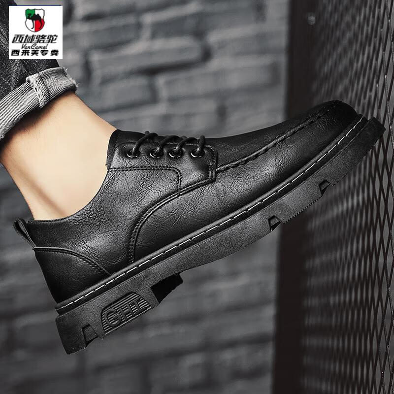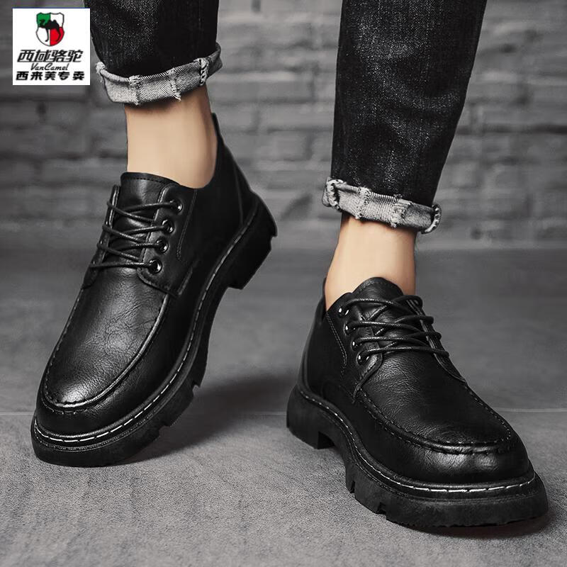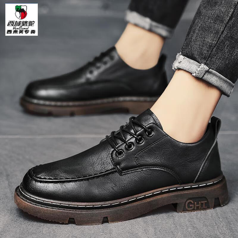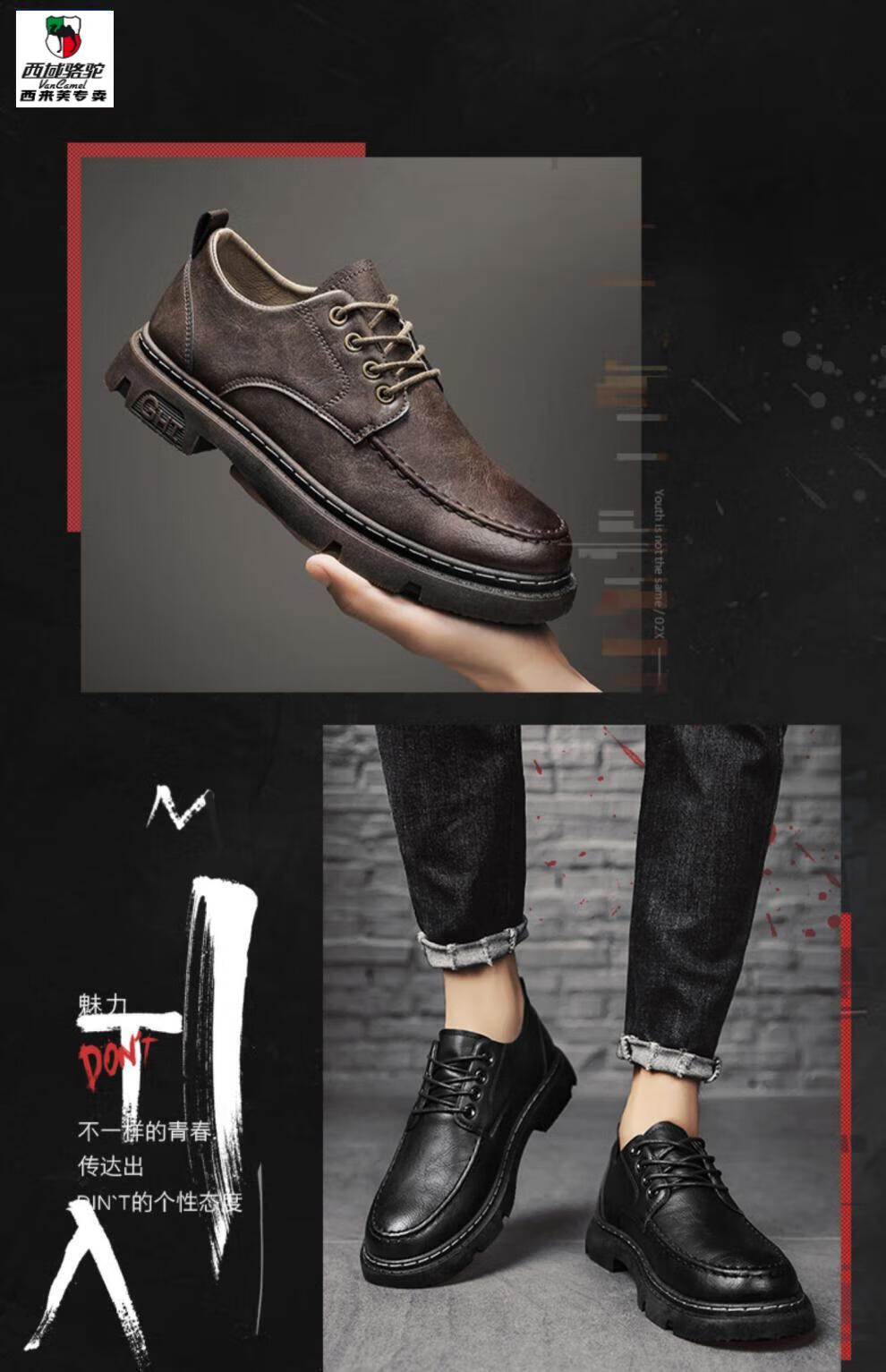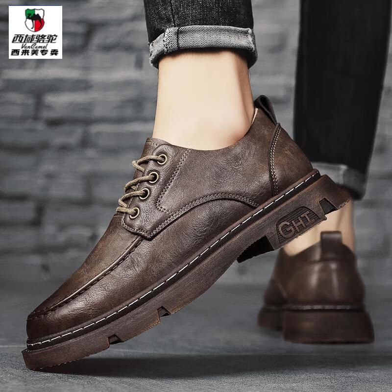Western Camel Leather Men's Leather Shoes Men's Autumn and Winter Casual Velvet British Style Black Business Formal Casual Workwear Leather Shoes for Men Brown 40