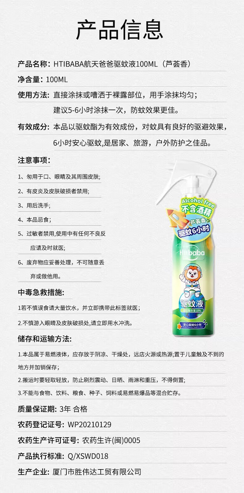 Aerospace Dad Anti-mosquito Repellent Spray Mosquito Repellent Liquid Water Children's Toilet Water Baby Anti-mosquito Repellent Bites Mosquitoes Do Not Bite Mosquitoes Aloe Vera Fragrance 100ml + Aloe Vera Fragrance 20ml
