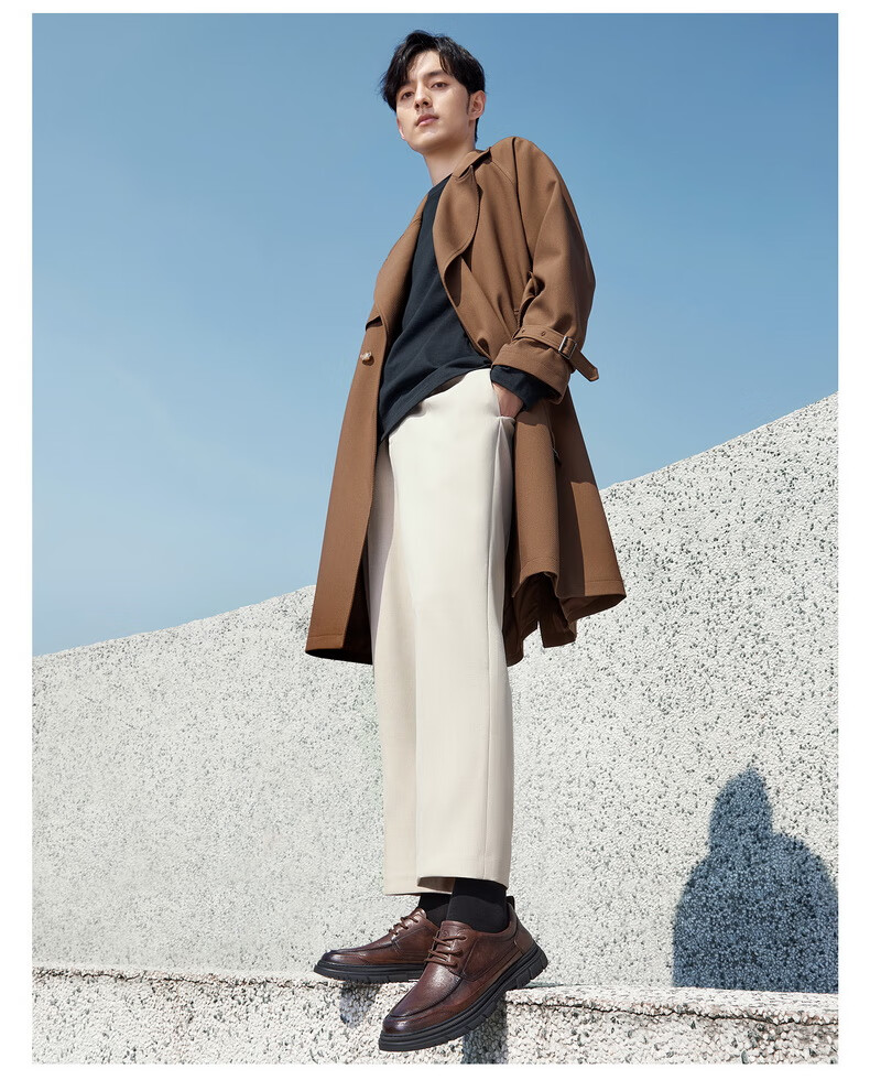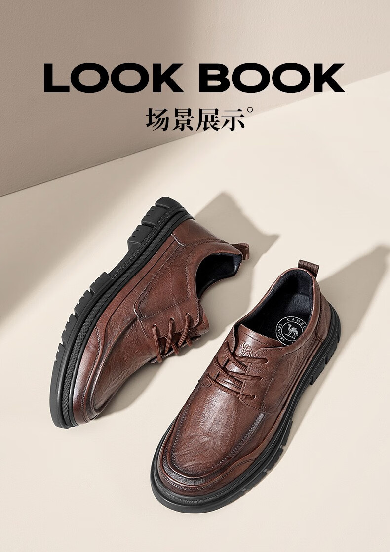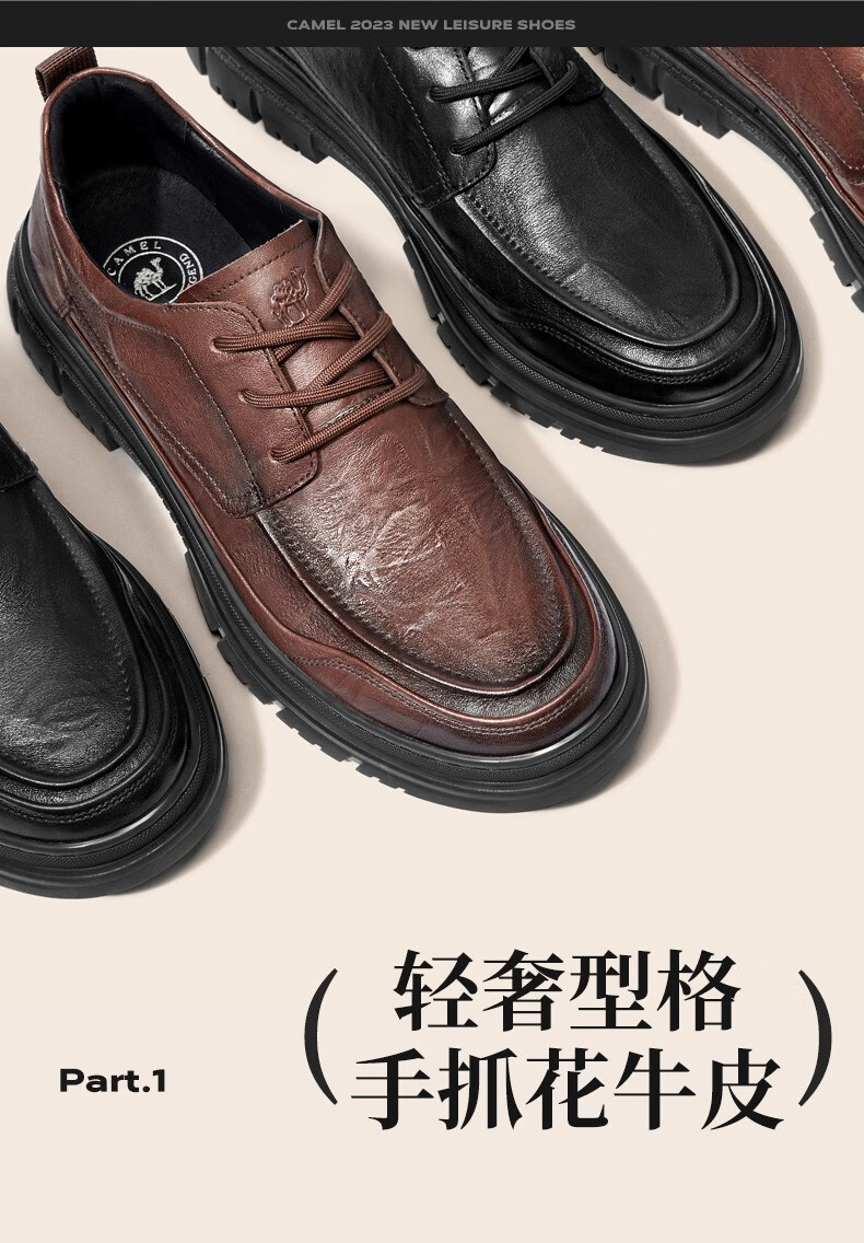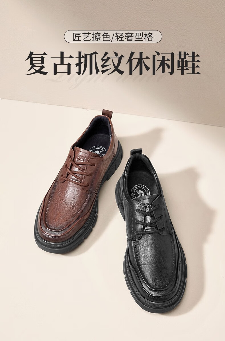 Camel (CAMEL) new genuine leather soft sole commuting British retro scratch pattern formal casual business leather shoes for men G13A155022 black 41
