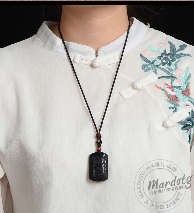 MARDOTG Black Crystal Surangama Mantra Heart Sutra Pendant Double-sided Carved Sanskrit Life Year Amulet Jewelry Necklace Pendant for Men and Women Surangama Mantra Heart Sutra Pendant