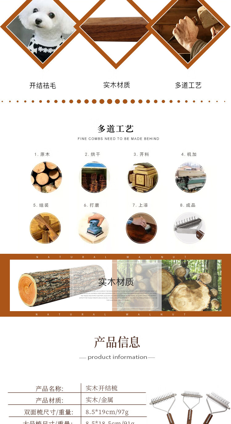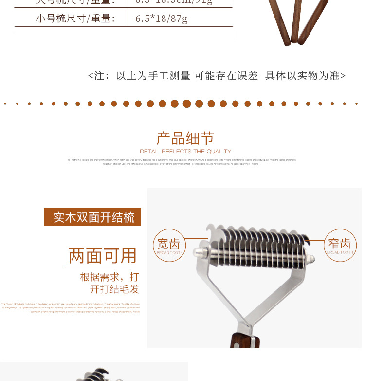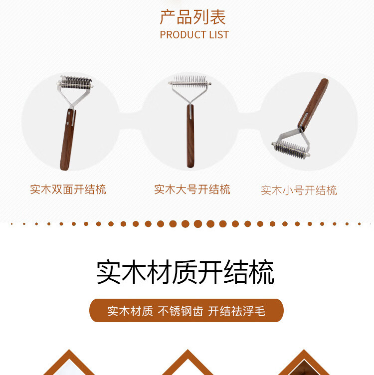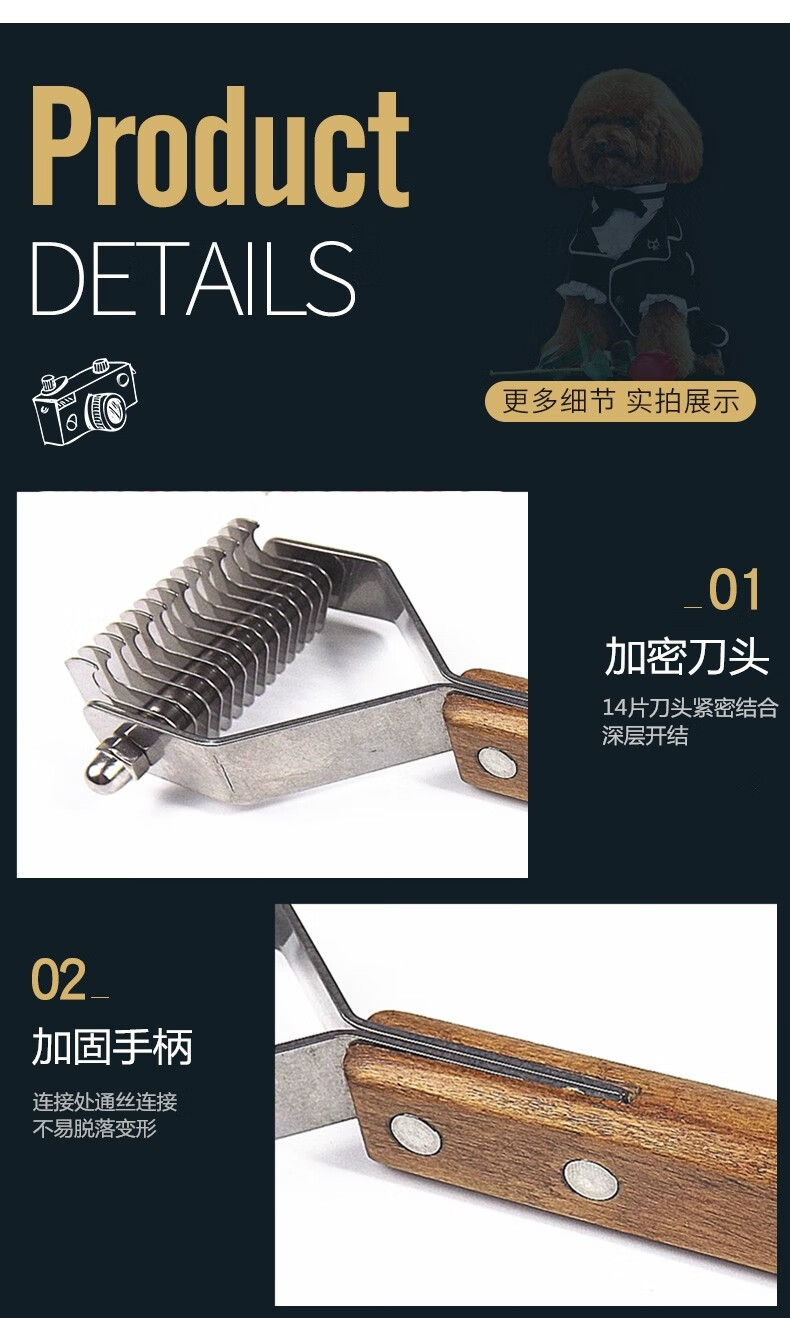 Pet comb for knotting and removing floating hair, universal for dogs and cats, 20 teeth, double-sided
