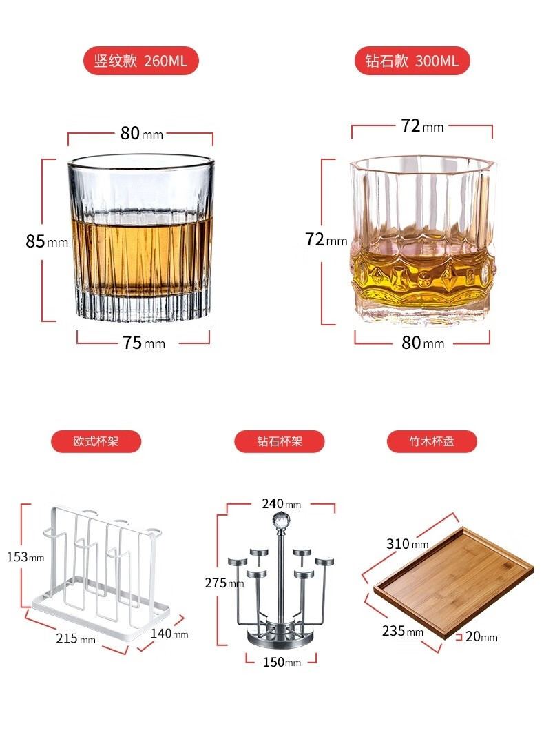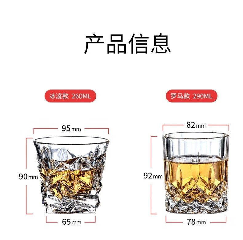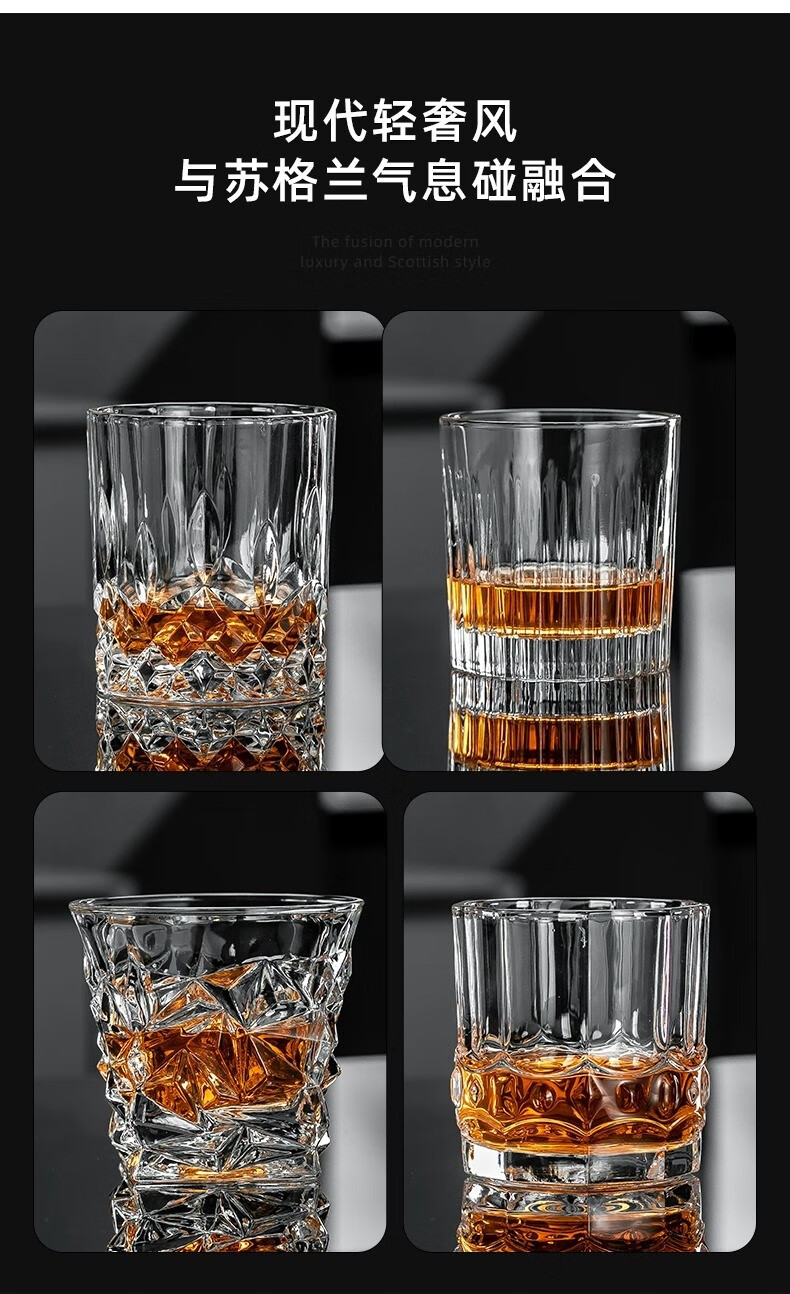 CRISTALGLASS Light luxury high-end whiskey glass household glass crystal wine cup set creative beer glass high-end wineware Roman style 290ml 6 pieces