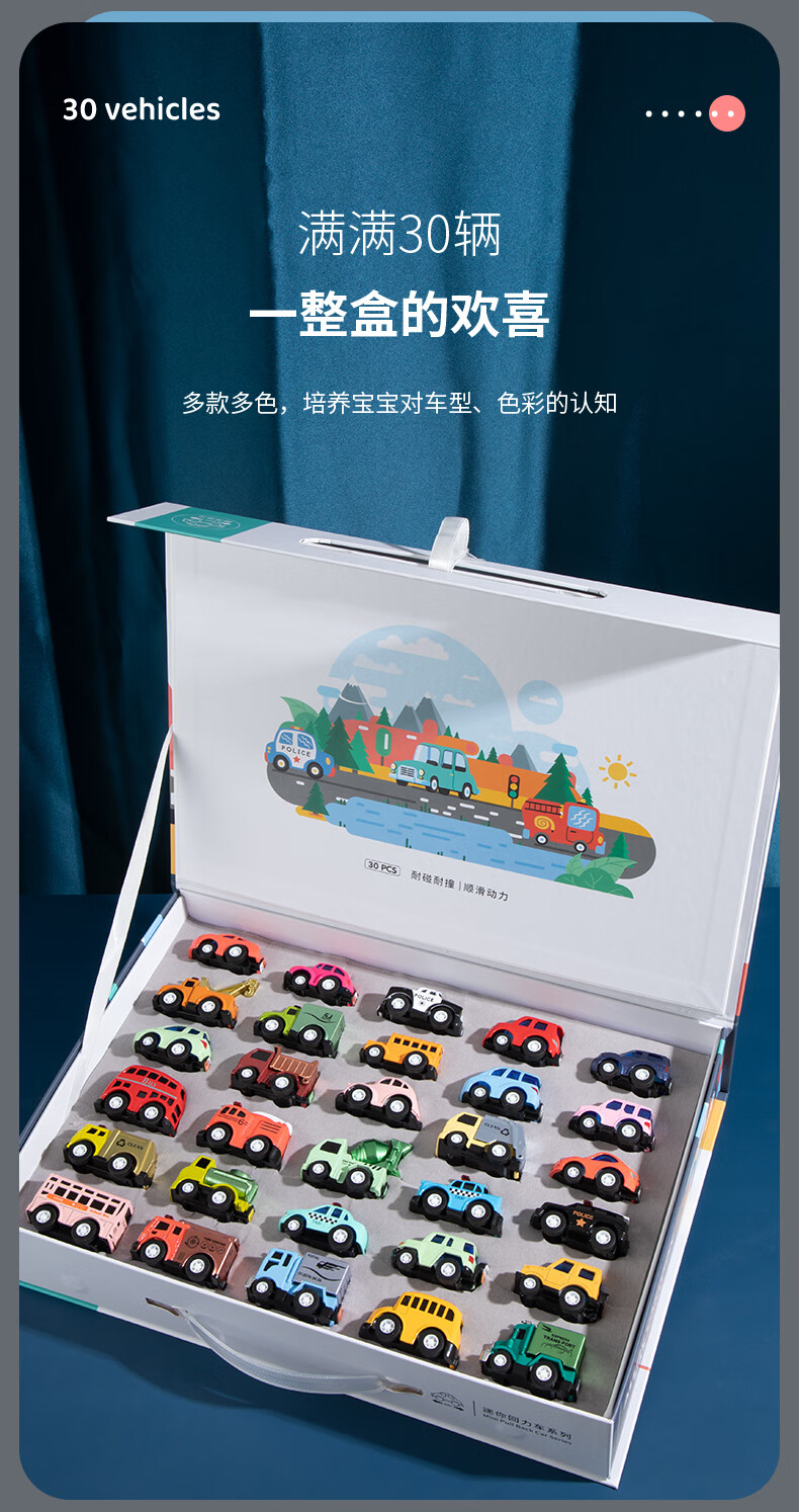 Moon Coast children's car toy 2-year-old boy toy car 1-3 years old mini alloy car gift box simulation car birthday gift 30 cars real alloy, car size 5-6cm