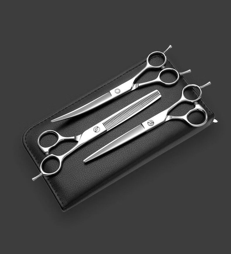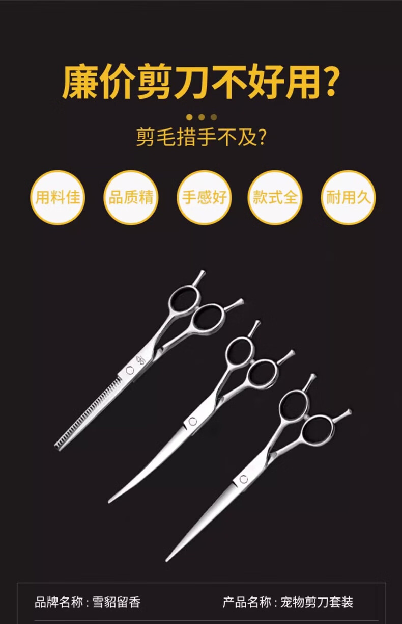 Ferret Fragrance Pet Grooming Scissors Cat and Dog Hair Trimming and Hairdressing Supplies Stainless Steel Comb Curved Scissors Straight Scissors Teeth Scissors Set Pet Scissors (Single Pair Straight Scissors)