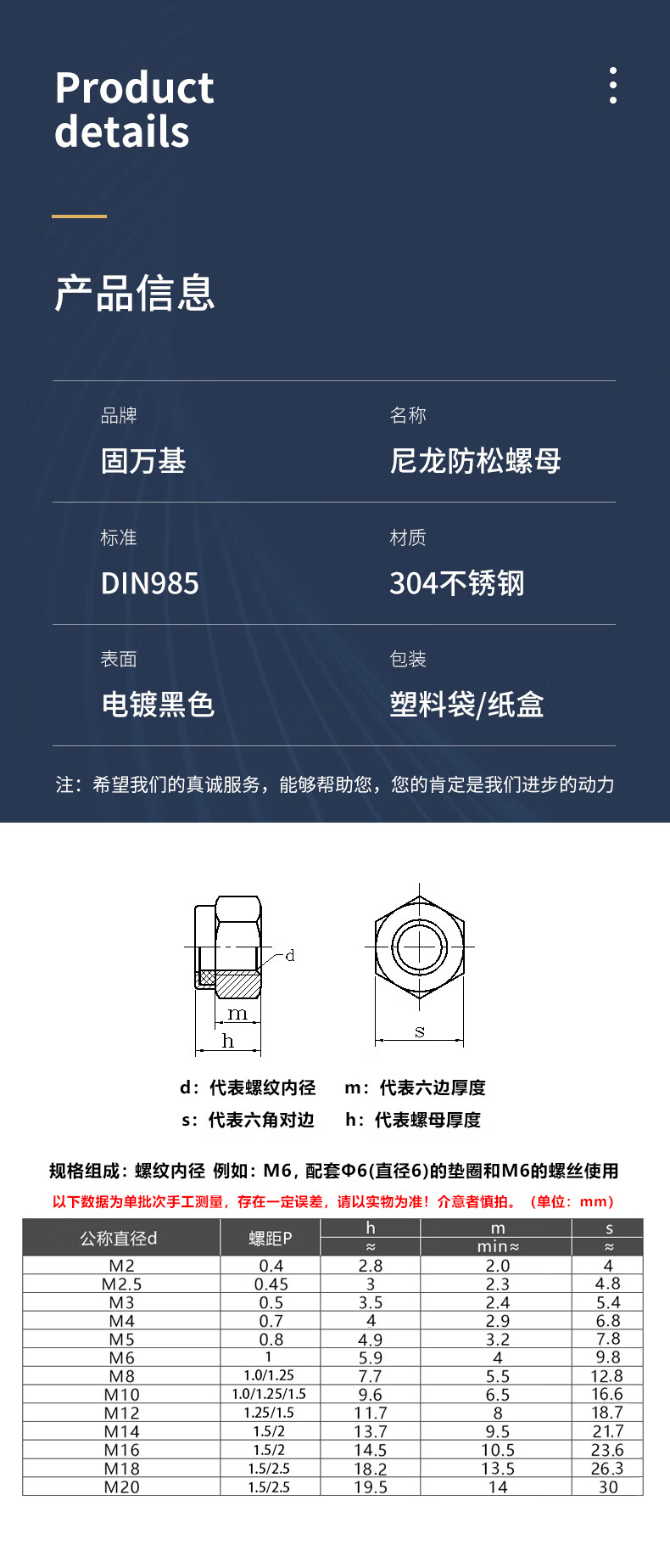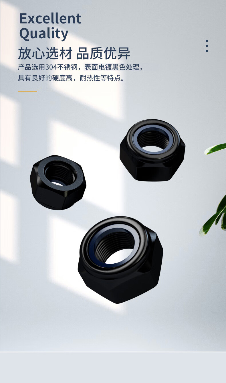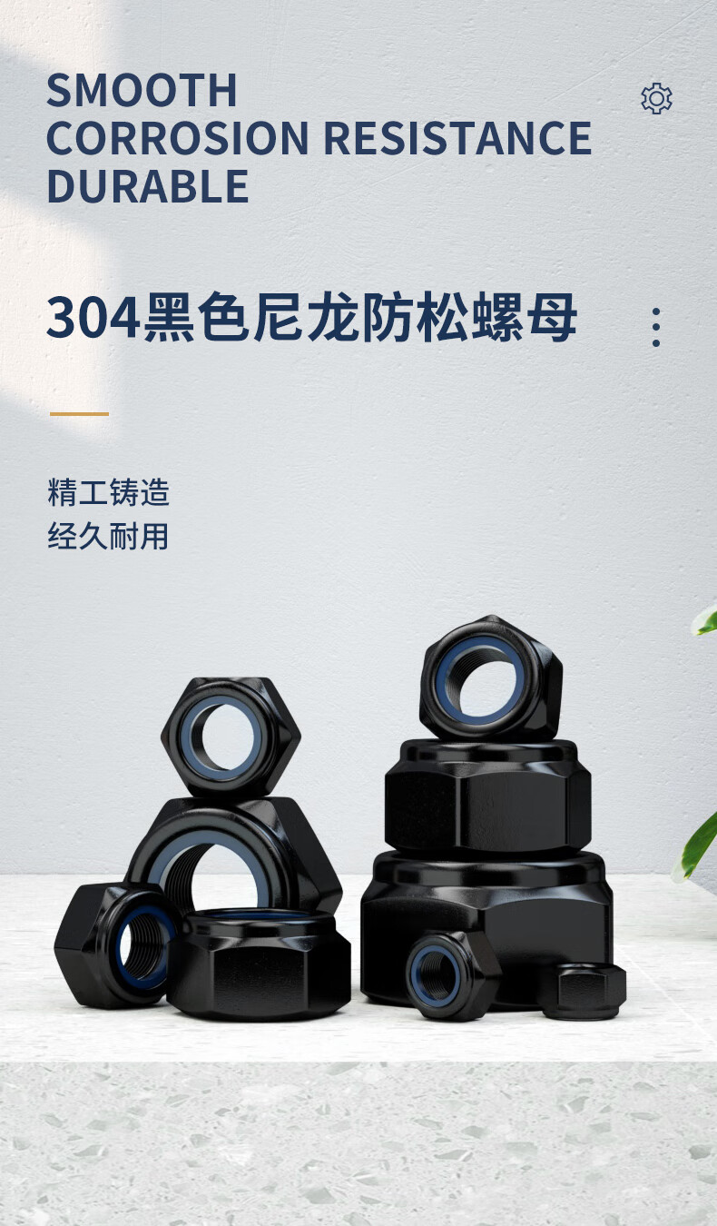 Guwanji anti-loosening self-locking nut black 304 stainless steel nylon anti-slip locking hexagonal nut national standard fastener 304 black M8 10 pieces