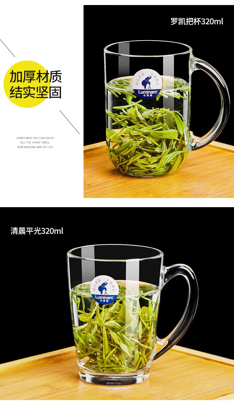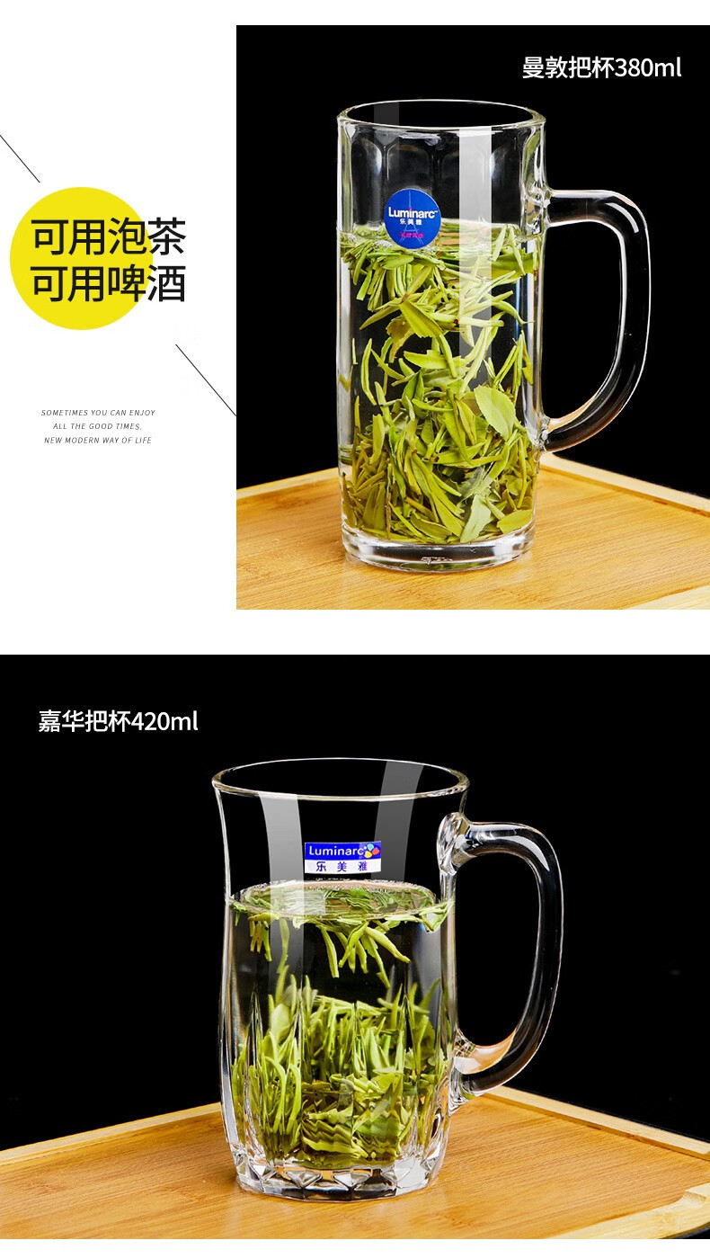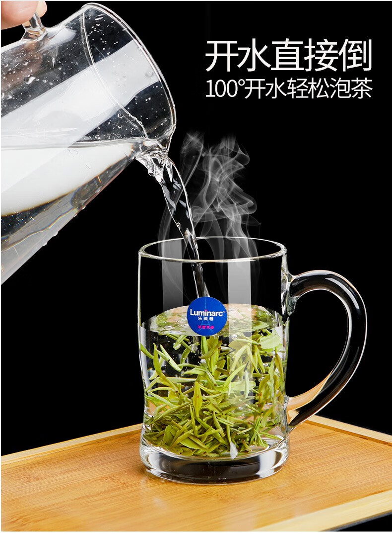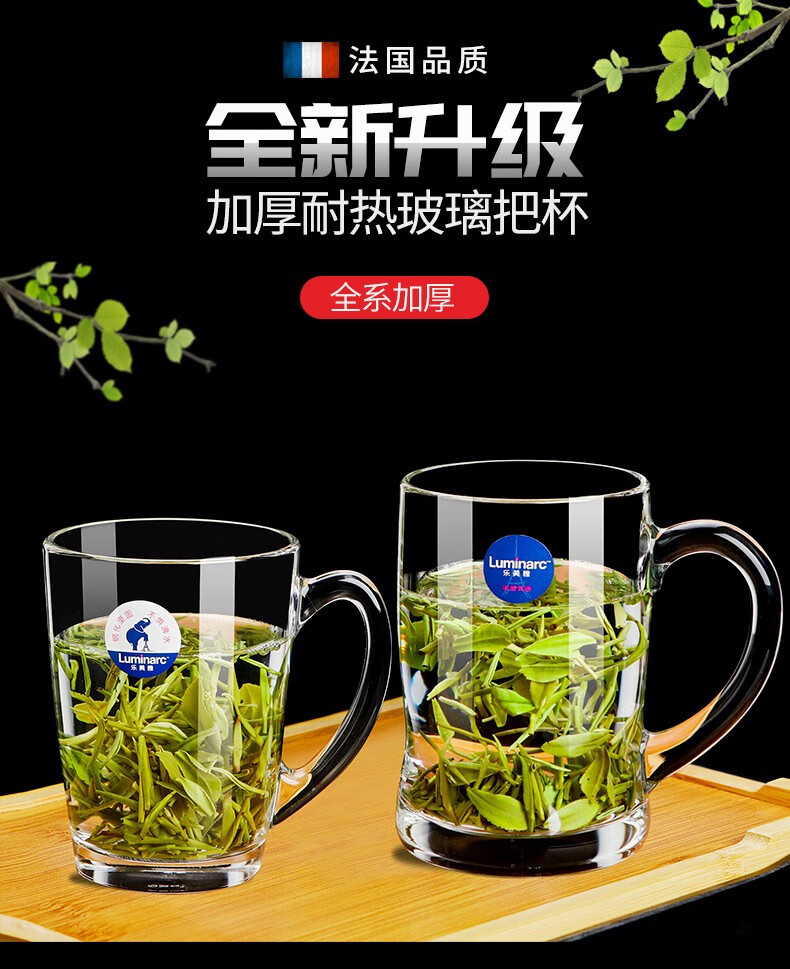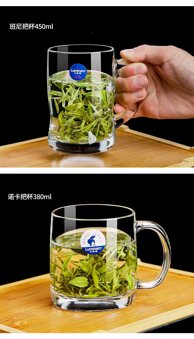 Luminarc thickened tempered glass cup household tea cup with handle large capacity tea cup green tea cup drinking cup with handle Benny 450ml two