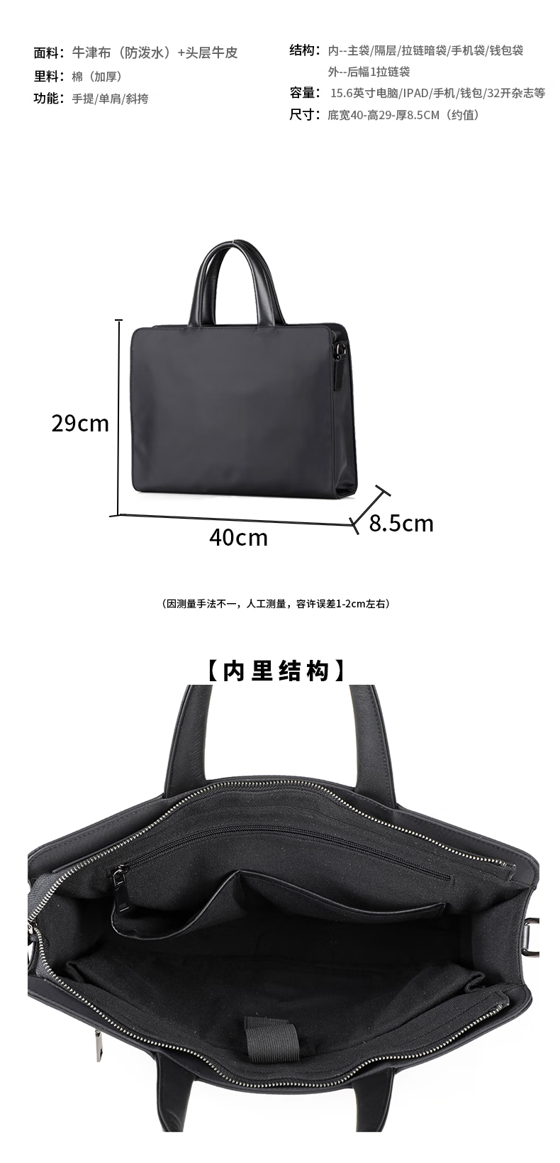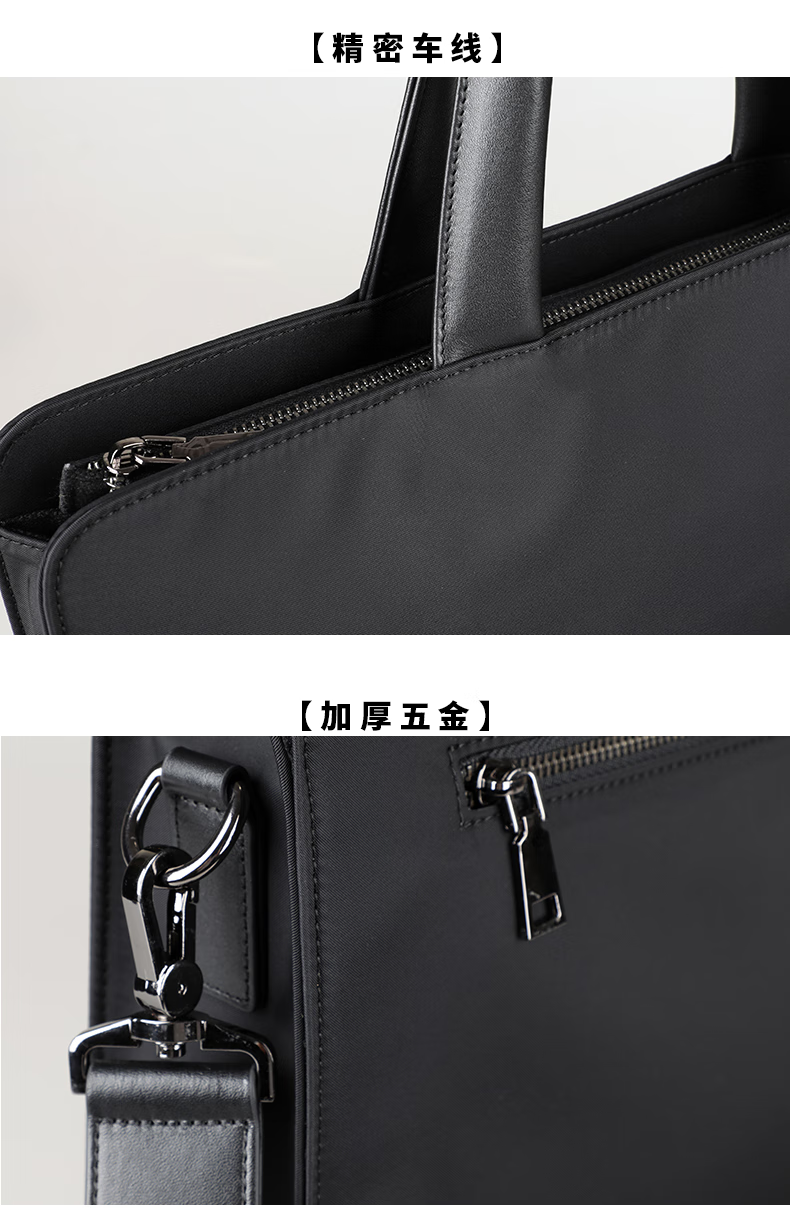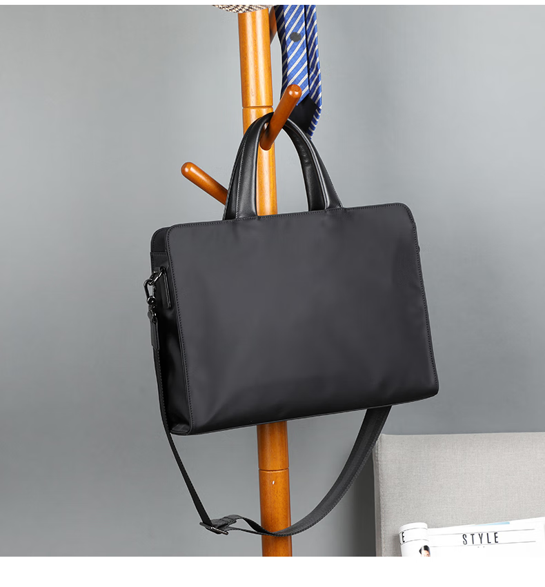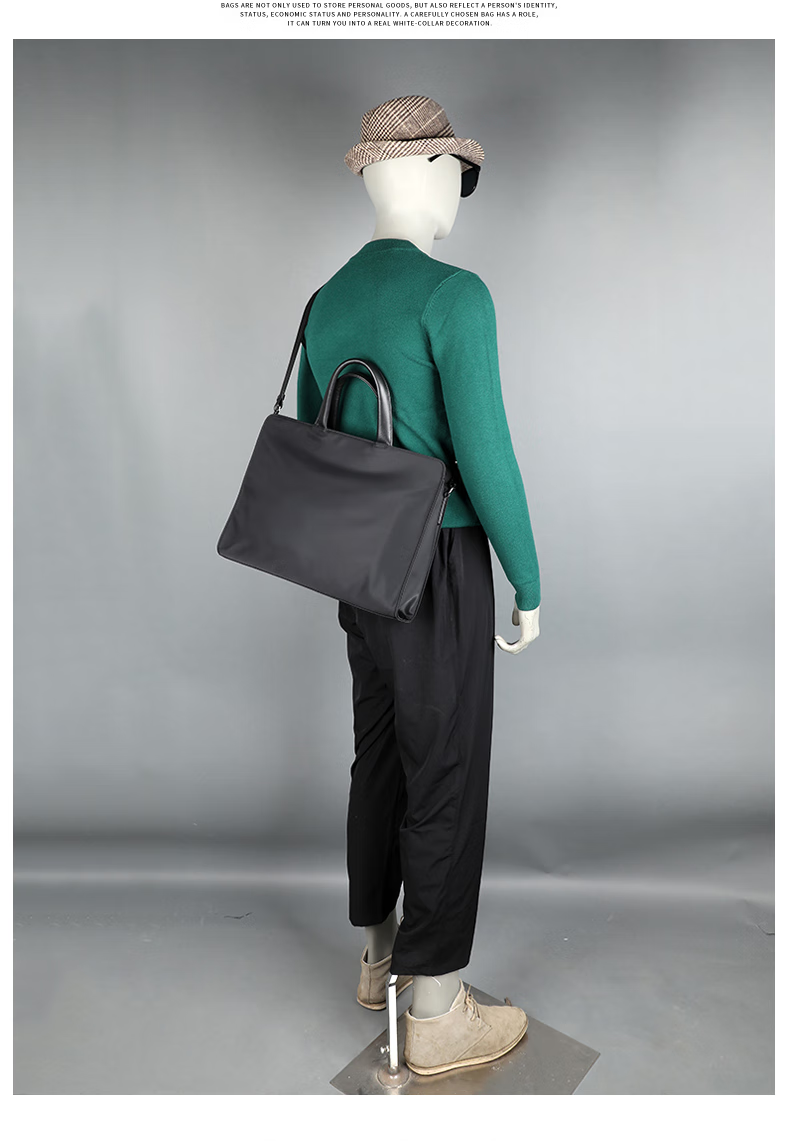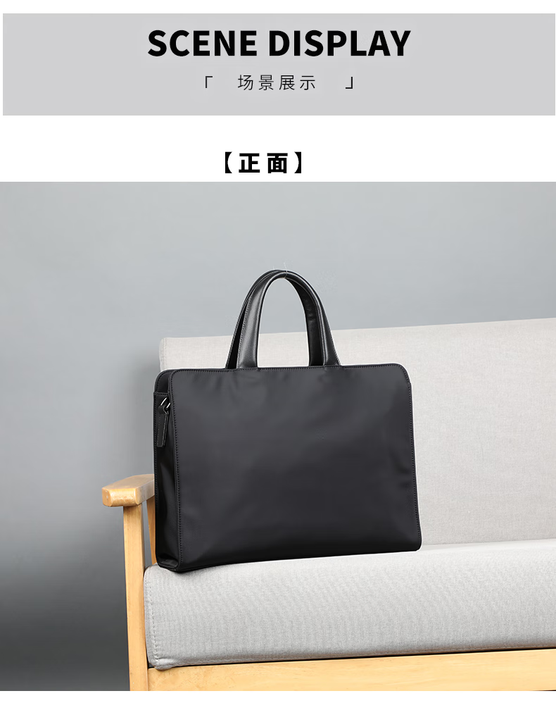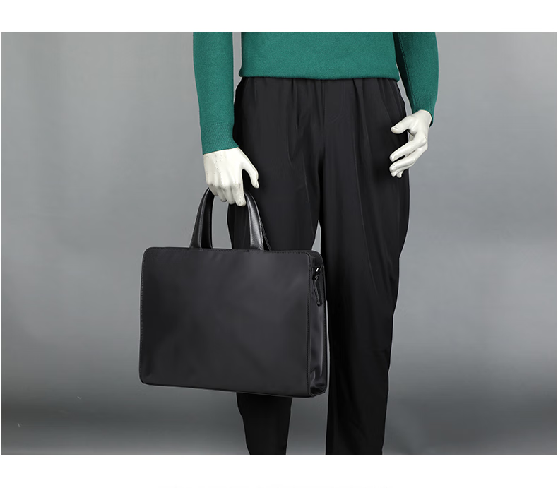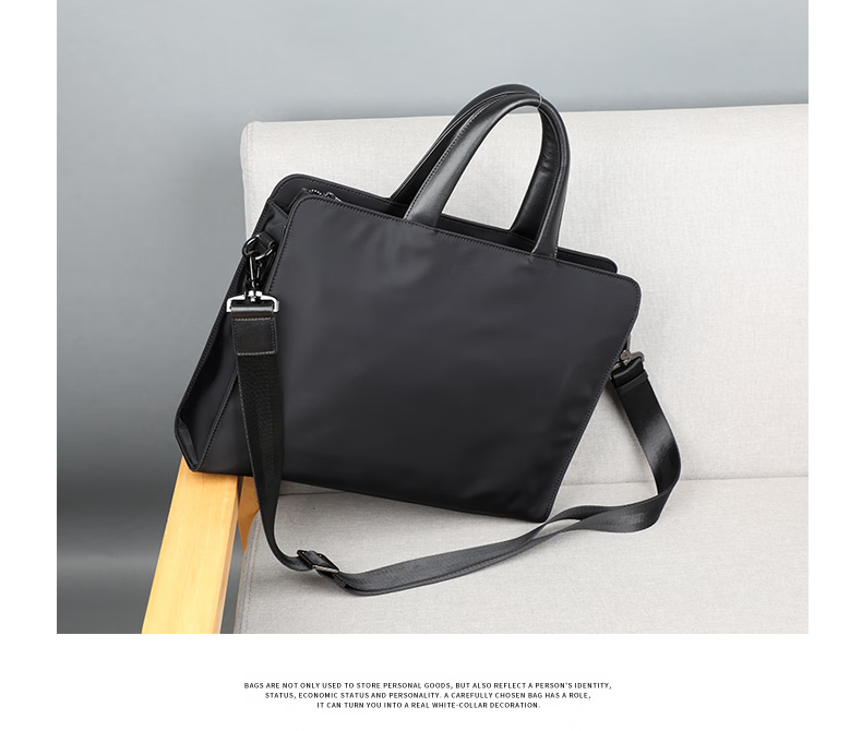 Cmlang Briefcase Men's Business Handbag Men's Canvas Casual Large Capacity Oxford Cloth Computer File Bag Handbag Black No Straps on the Back