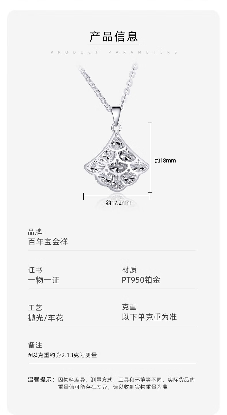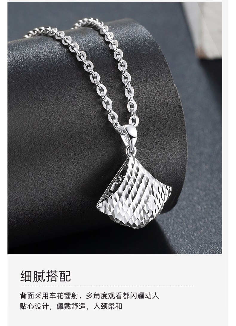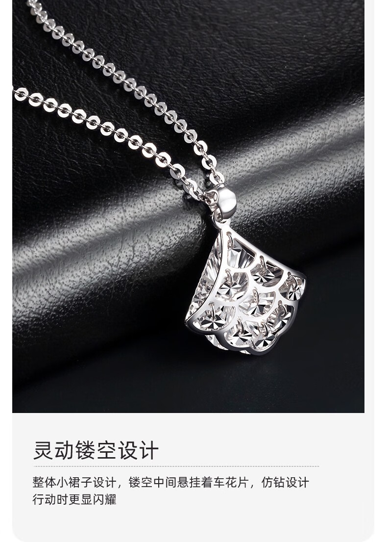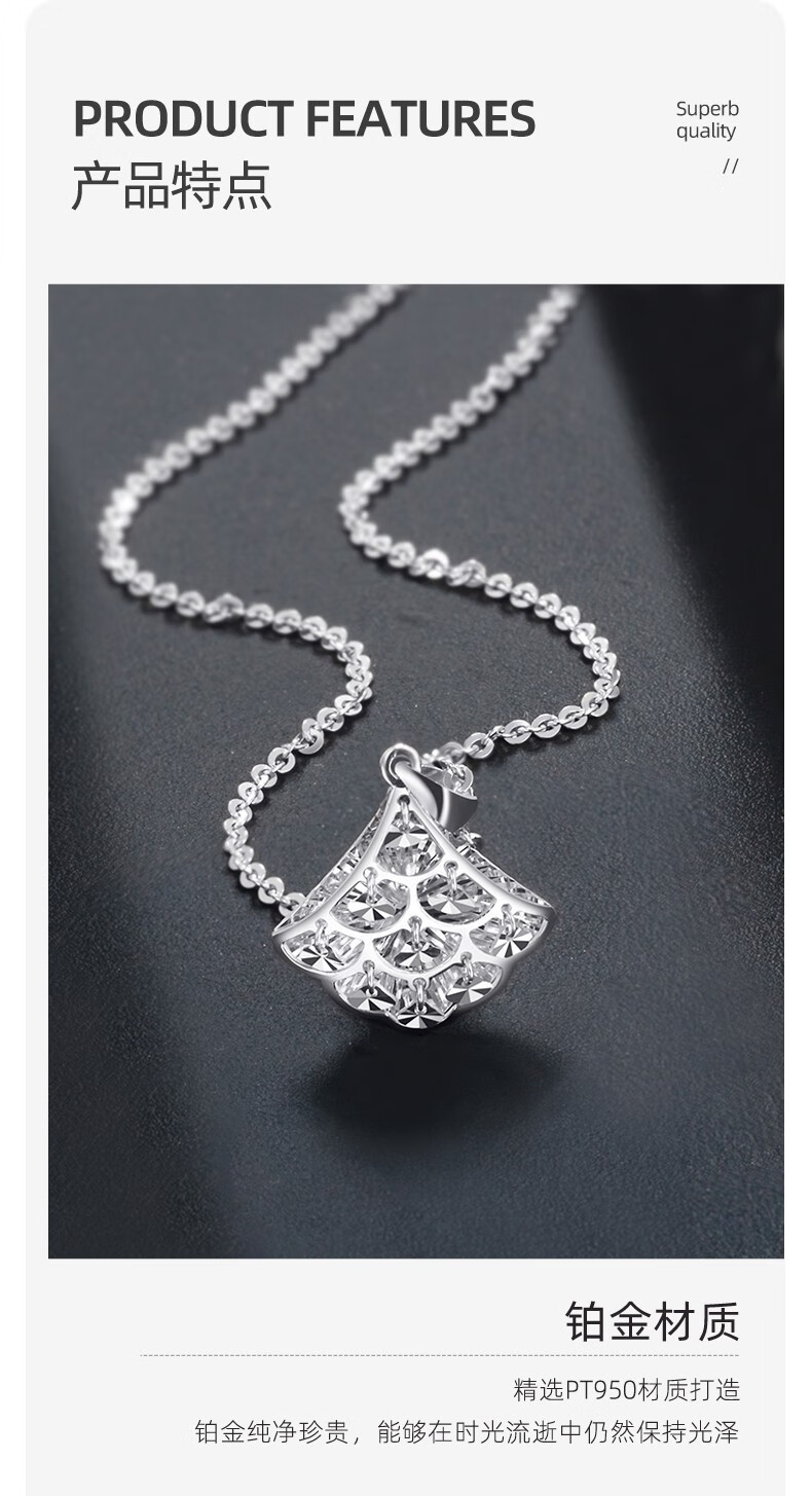 Centenary Baojinxiang platinum PT950 small fan pendant platinum fan-shaped small skirt clavicle chain women's imitation diamond pendant set chain gift small version small group pendant weighing about 1.55-1.75 grams