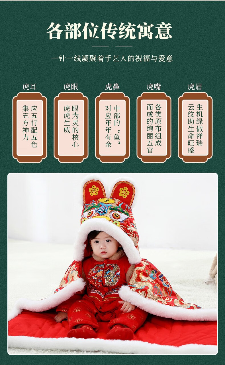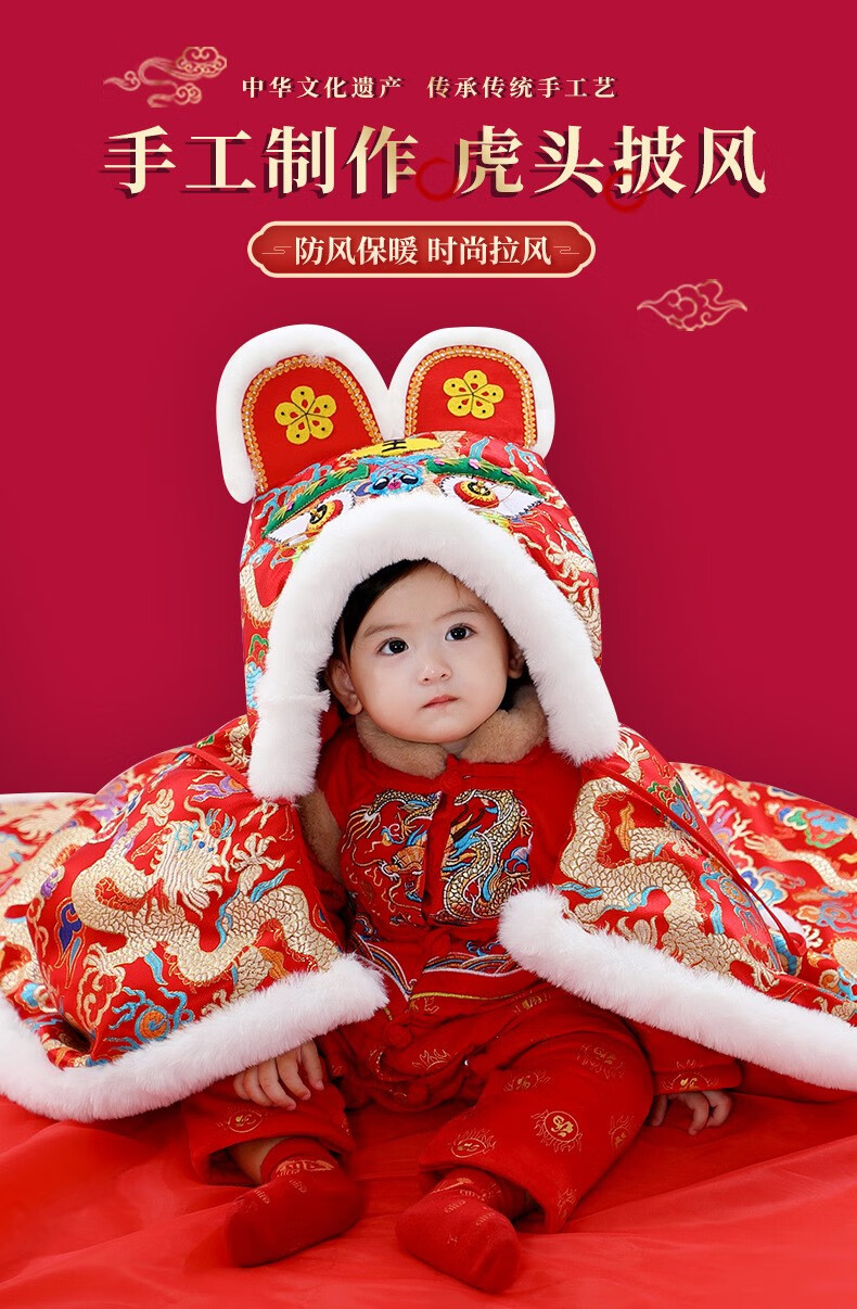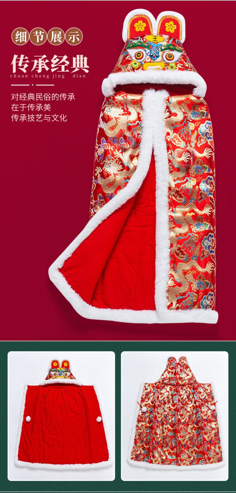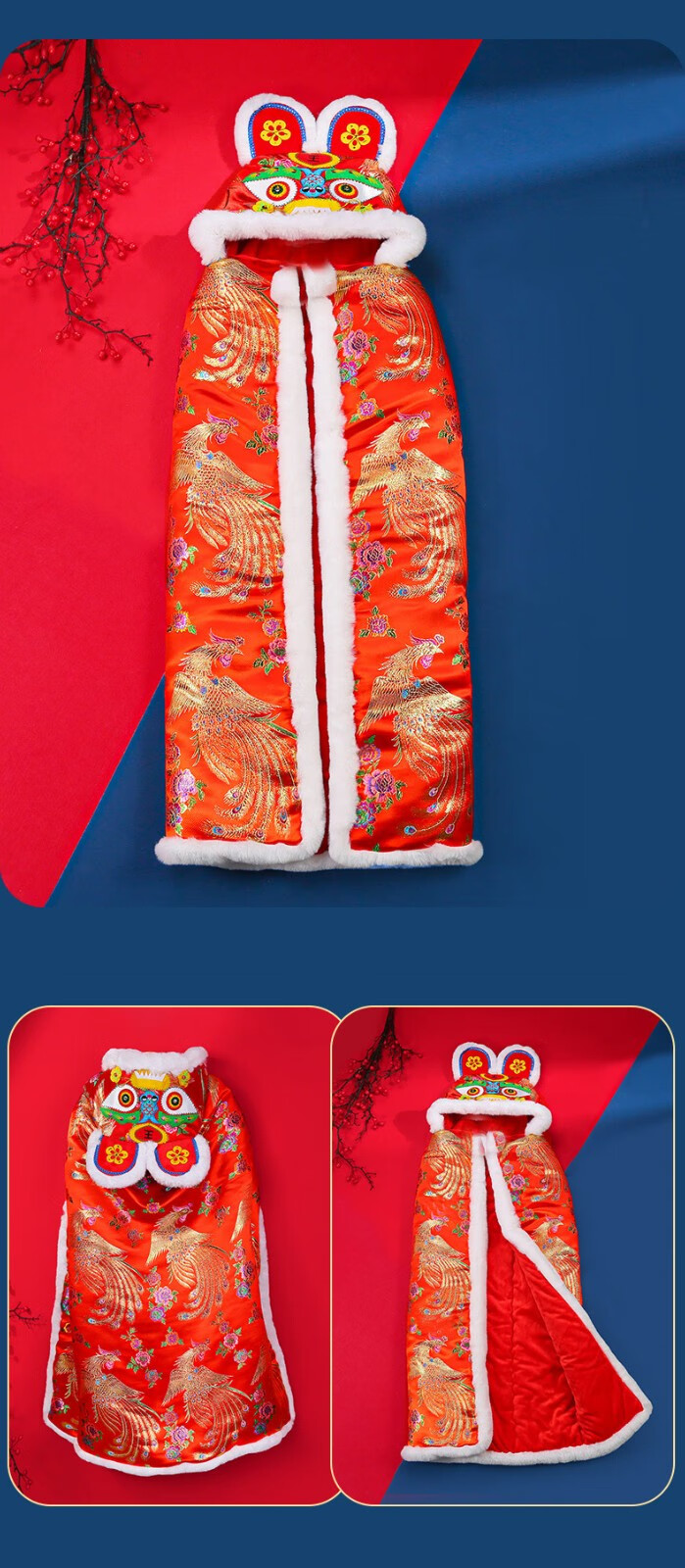 Bangshijieli folk custom tiger head male and female baby cloak dragon and phoenix newborn baby quilt children's cloak baby outing coat winter colorful dragon 120cm*100cm