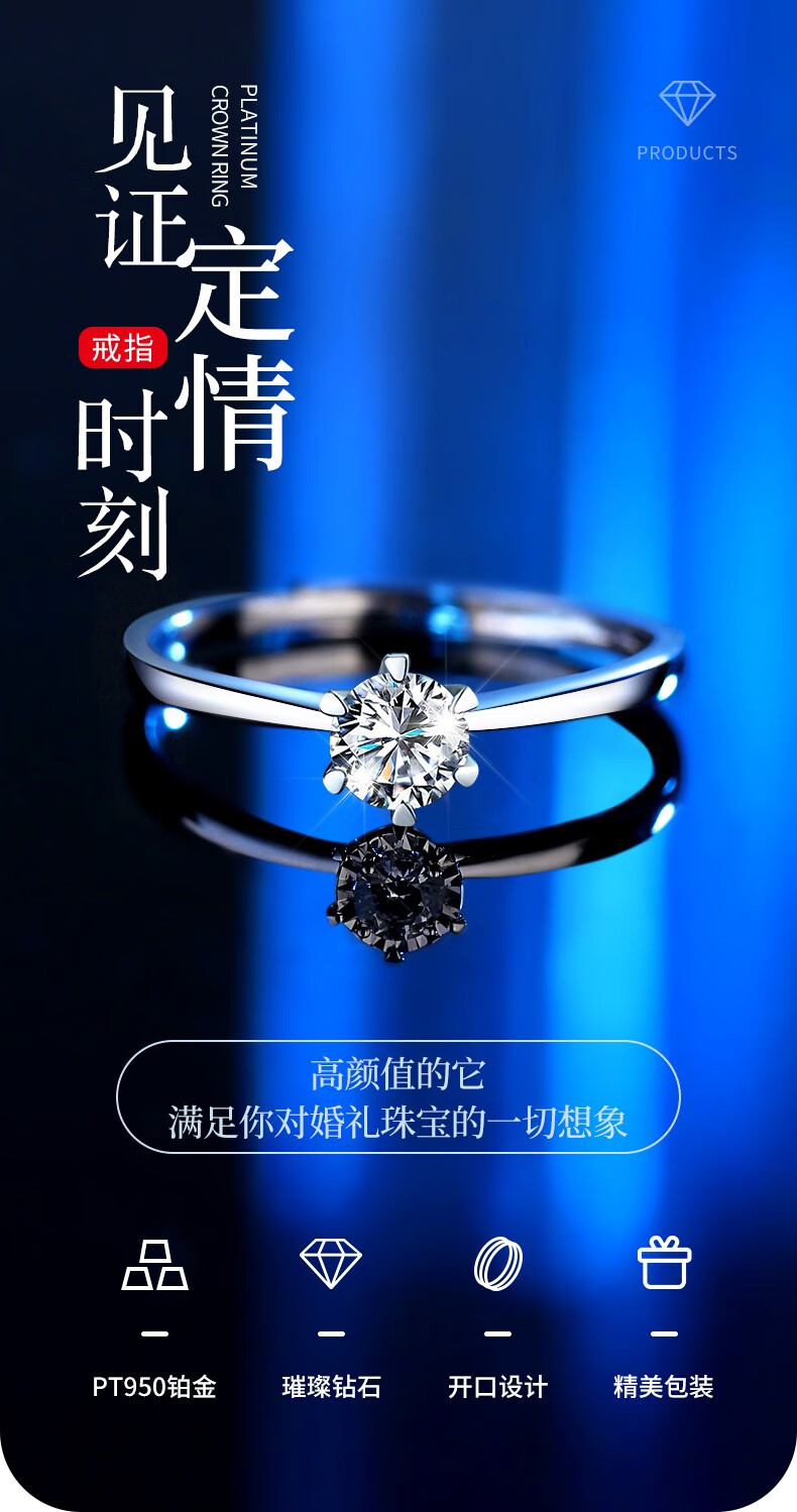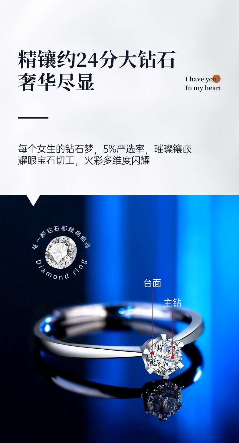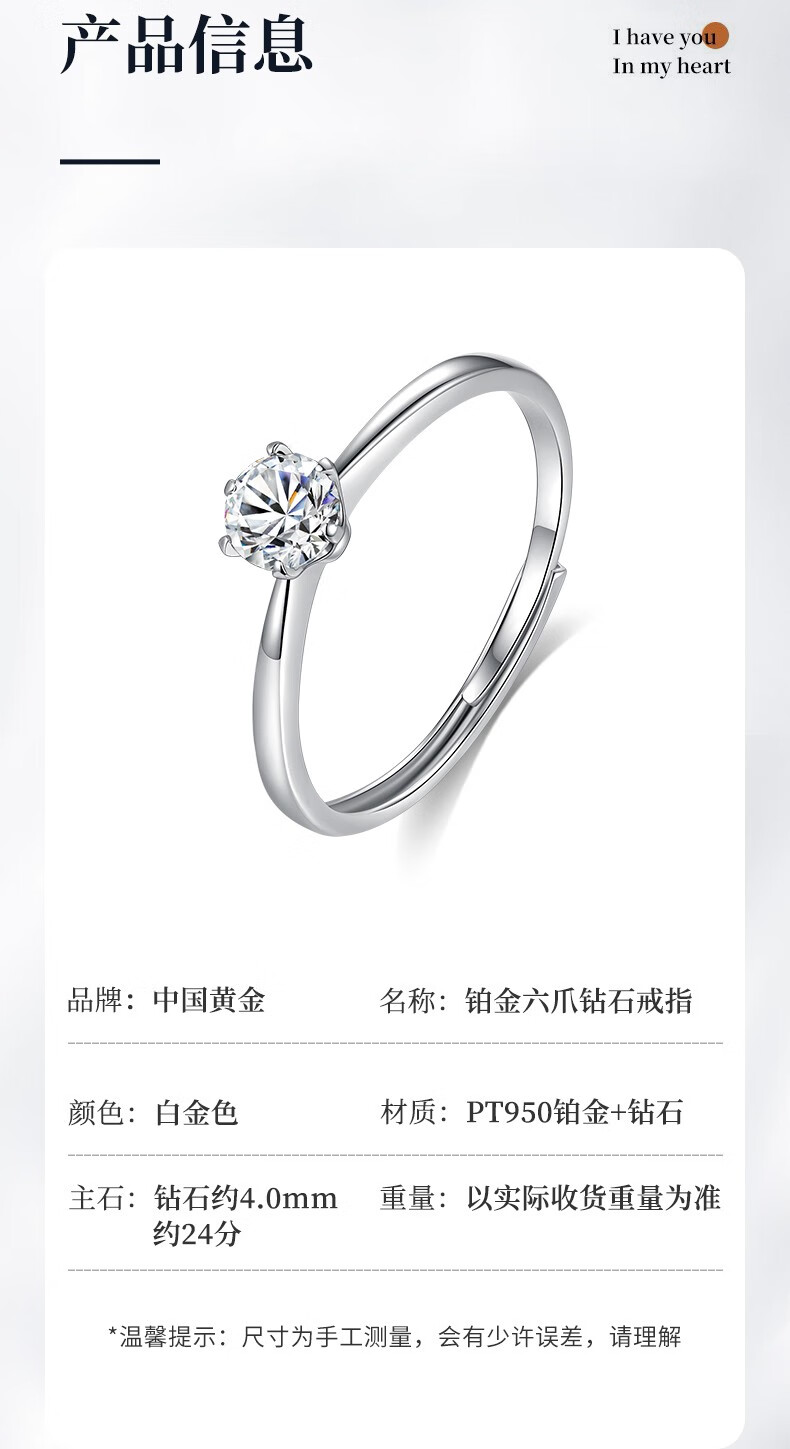 China Gold (CHINA GOLD) Platinum Diamond Ring Women's Platinum Engagement Wedding Diamond Ring Birthday Gift for Girlfriend and Wife Practical Wedding Anniversary Platinum Diamond Ring - About 24 Points Real Diamond