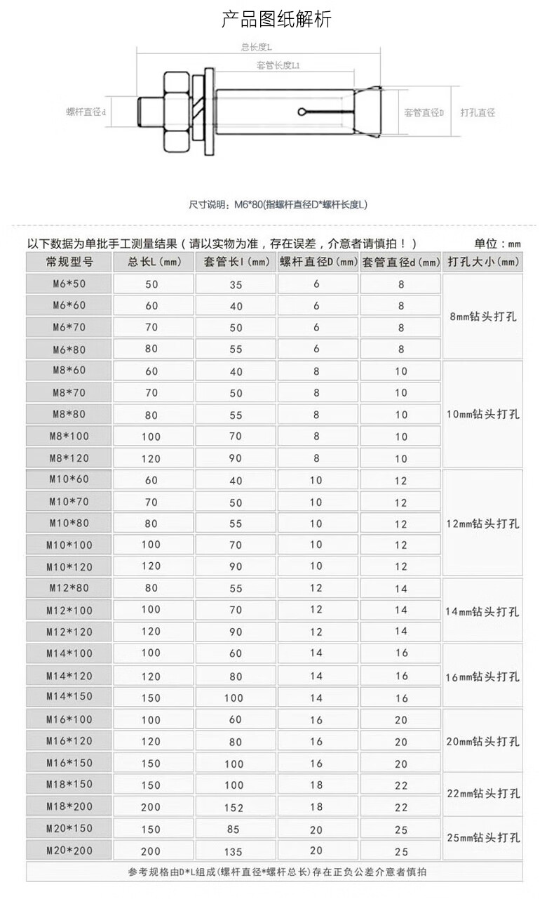 GUWANJI 304 stainless steel external expansion screws, extended galvanized explosion screws, expansion bolt fasteners, M20x250 (1 piece - 304 material)