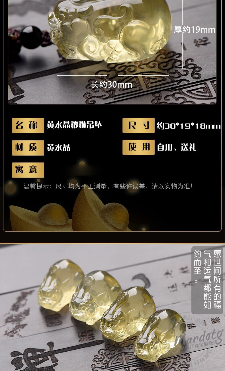 MARDOTG citrine Pixiu pendant for men and women necklace Overlord Pixiu birth year amulet pendant gift
