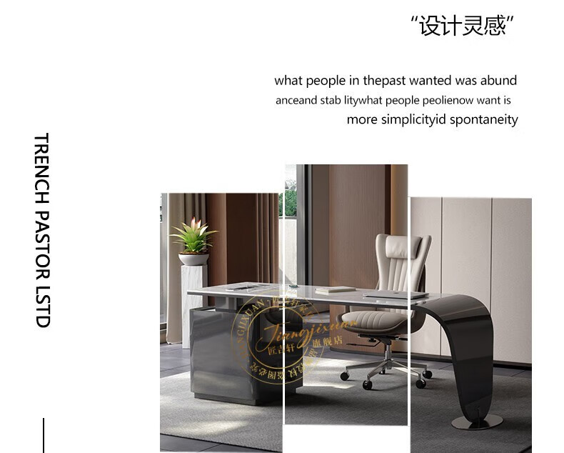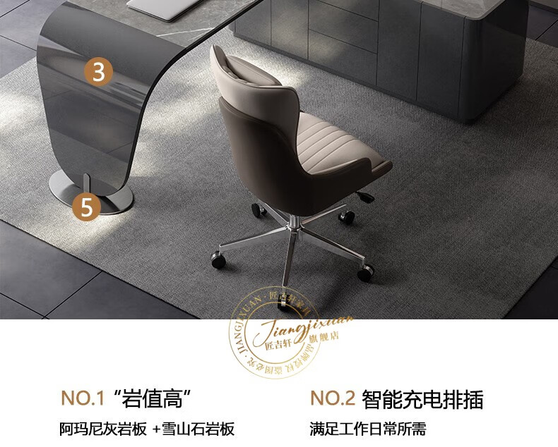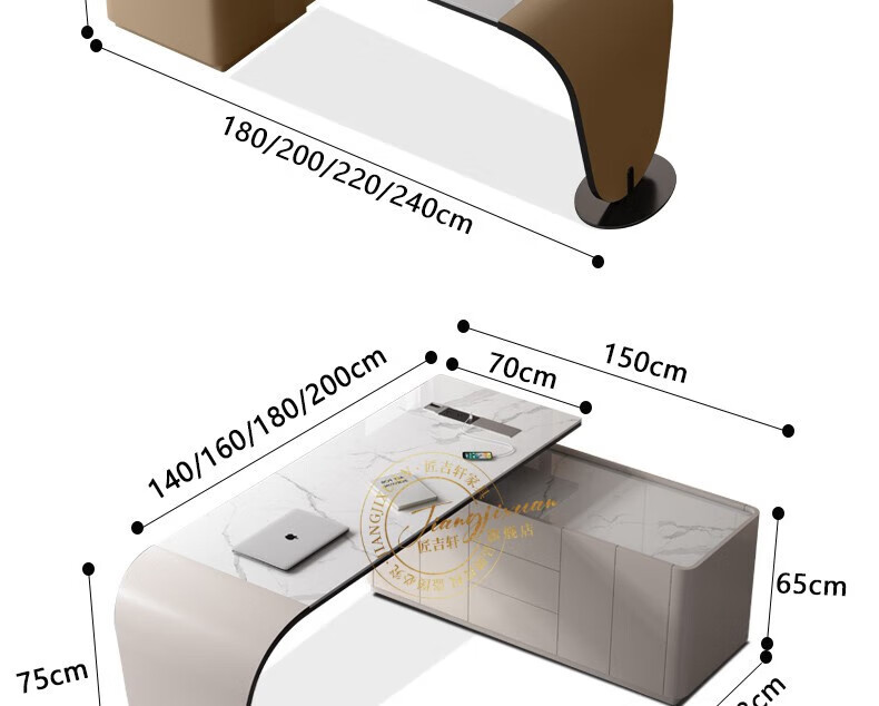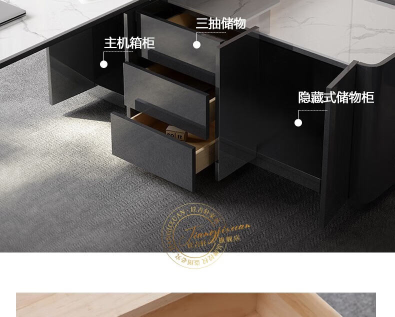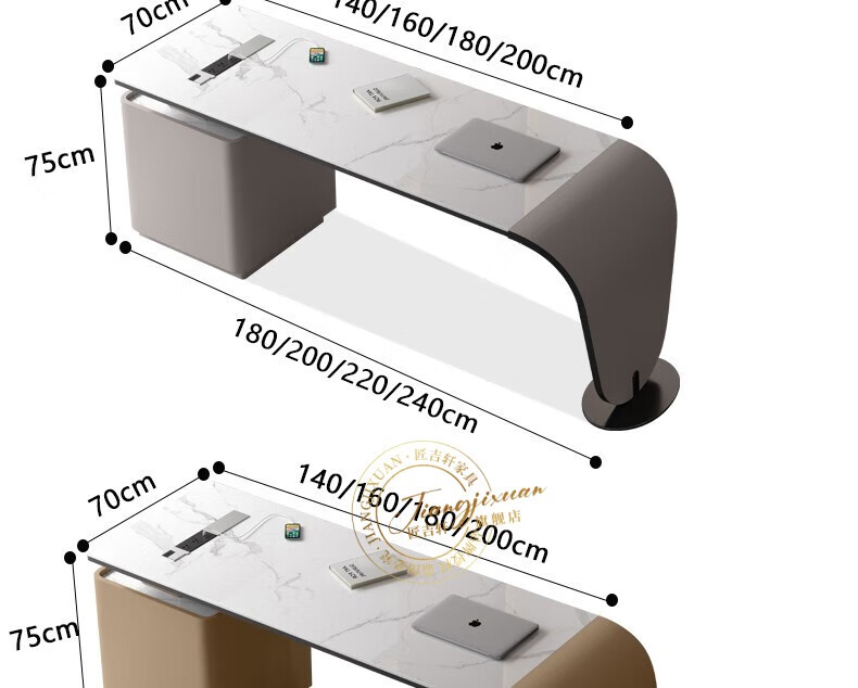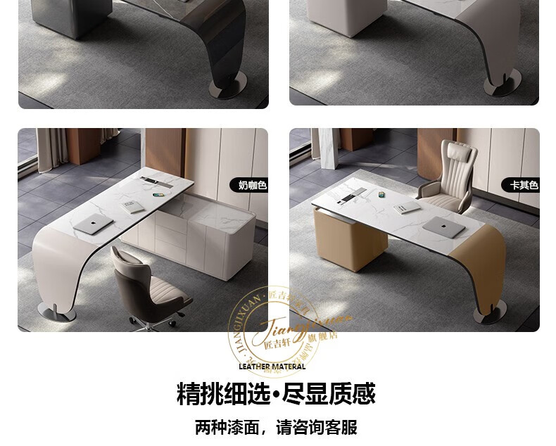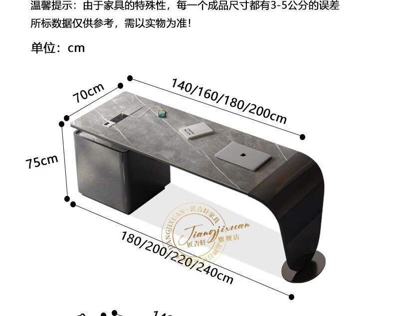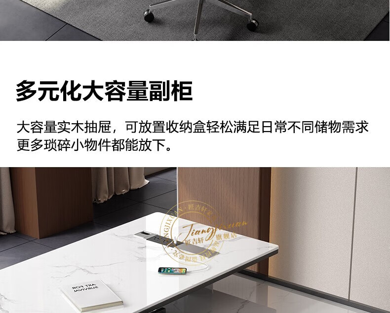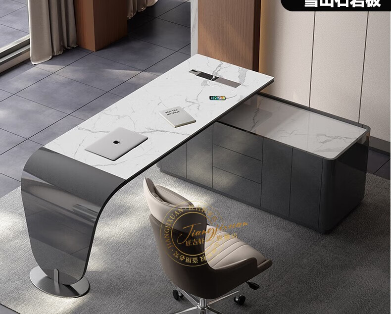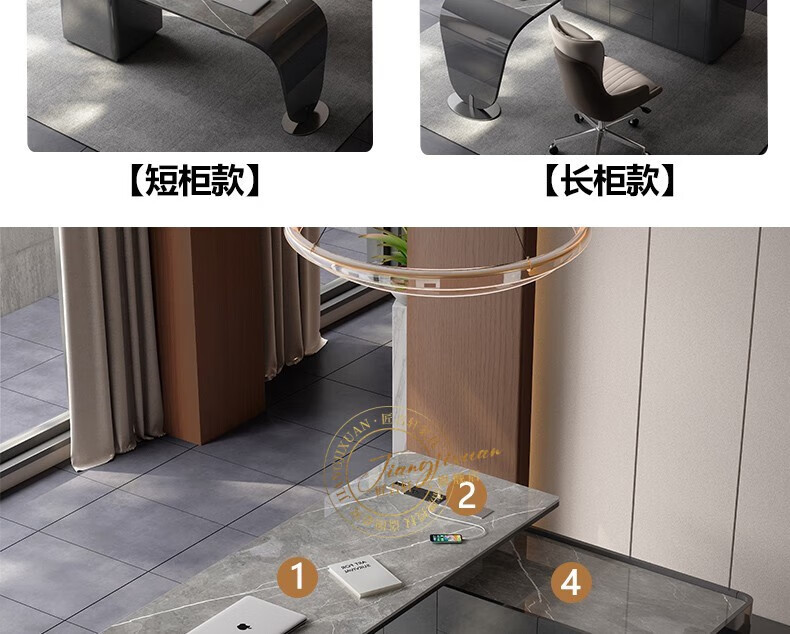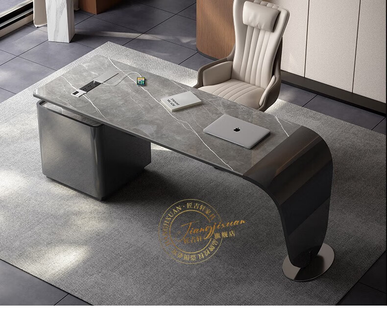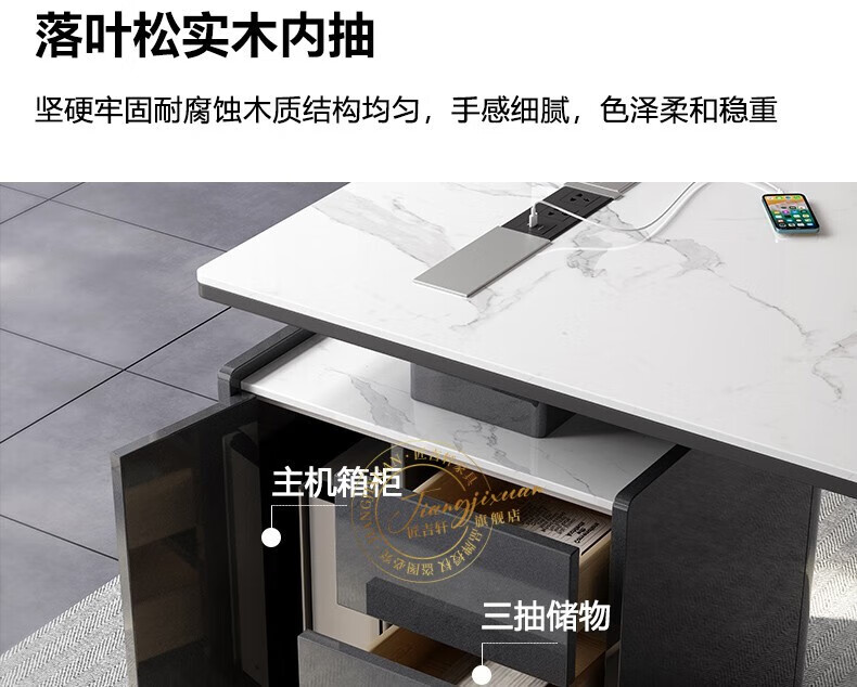 JIANGJIXUAN Italian light luxury corner slate desk modern simple desk high-end home study computer desk writing desk short cabinet 1.4 meters desk total length 1.8 meters
