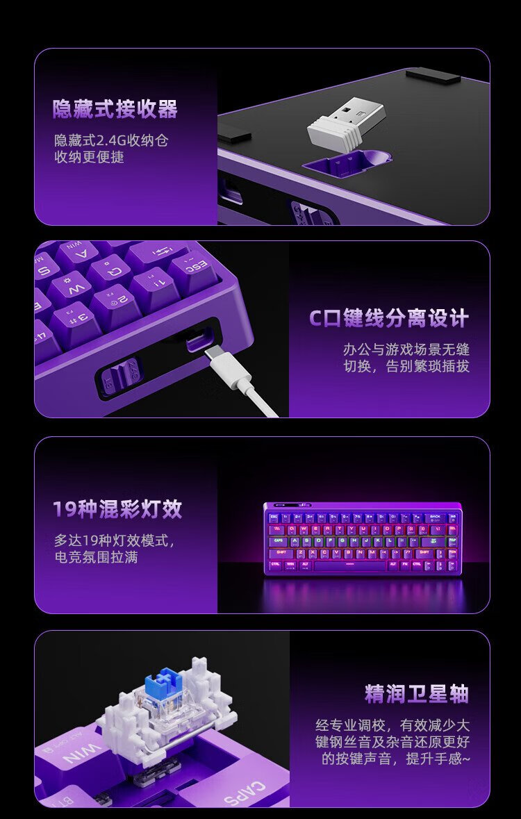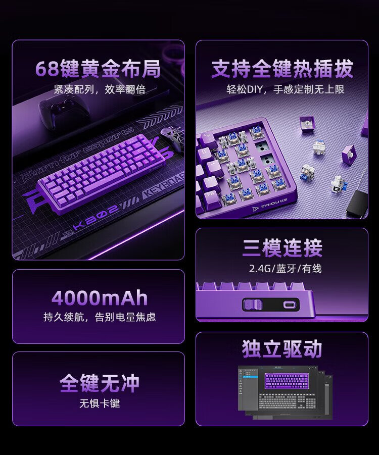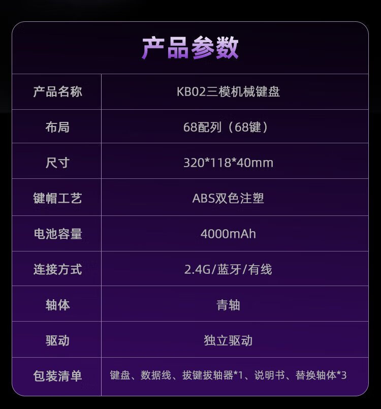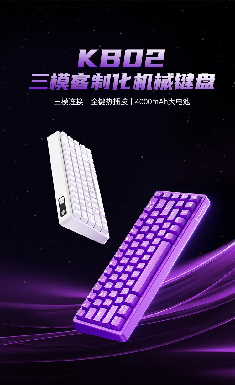 Titanium KB02 mechanical keyboard, wireless mechanical gaming keyboard, three-mode 2.4G wired Bluetooth, full-key hot-swappable, with driver, black set (keycap gray), green axis