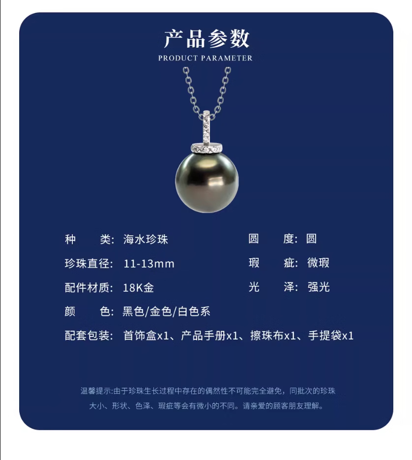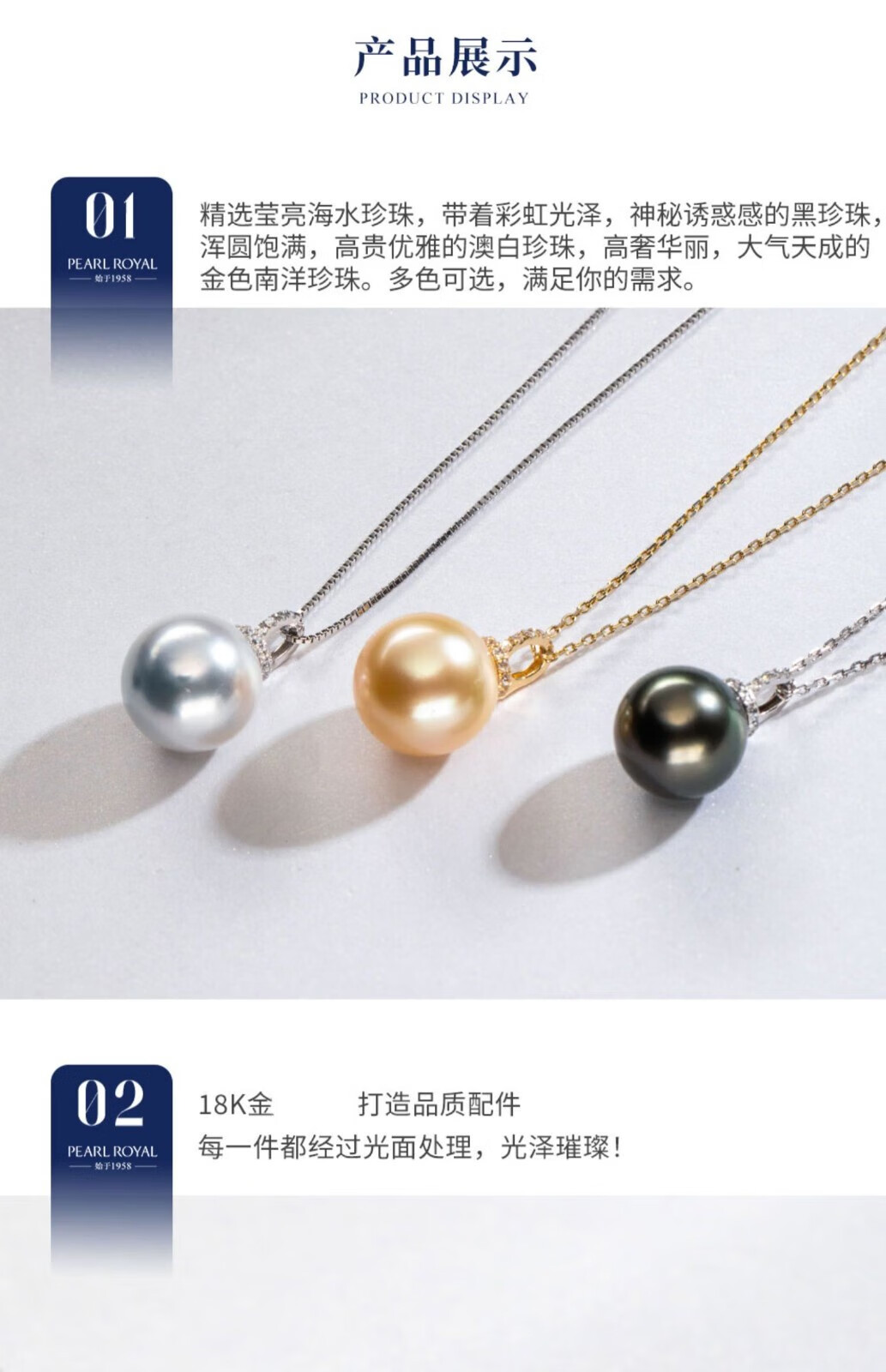 Nanzhu Palace 18K Gold Seawater Pearl Pendant Universal Buckle Matching Necklace Tahitian Australian White South Sea Gold Tahitian Black Pearl 11.0-12.0mm