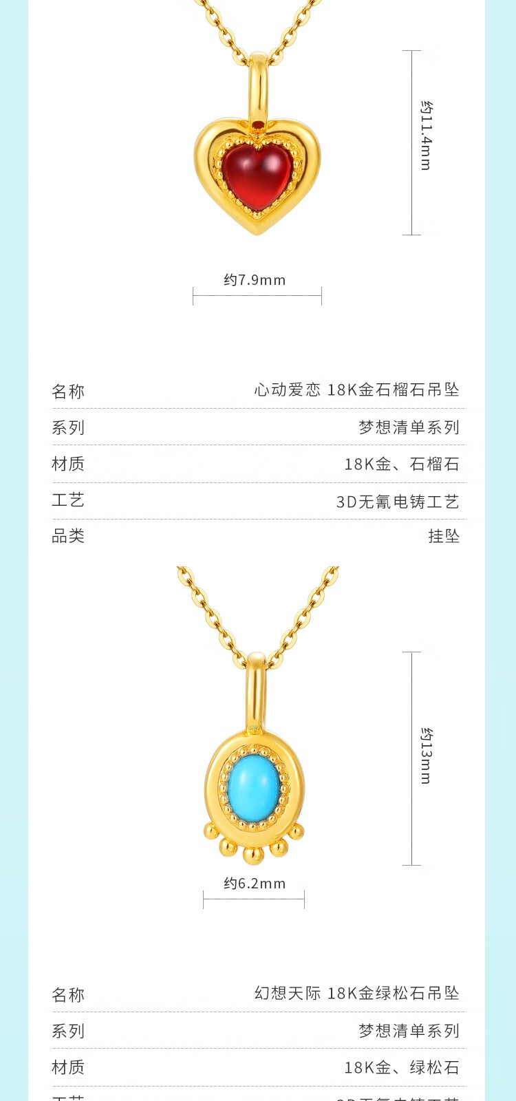 Chiba Jewelry 18K Gold Freshwater Pearl Pendant Love Garnet Necklace Cute Neck Jewelry for Girlfriend’s Birthday 18K Gold Turquoise Pendant