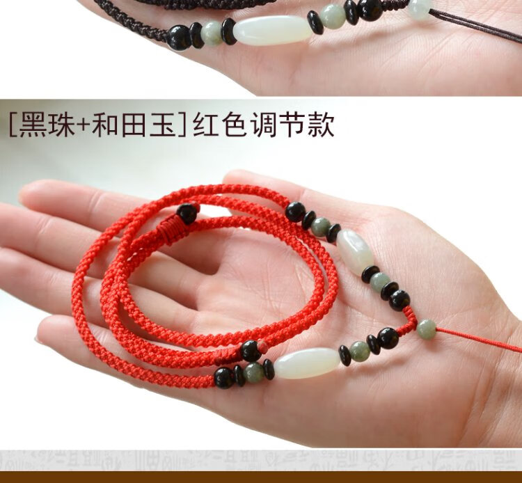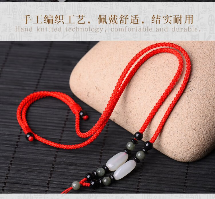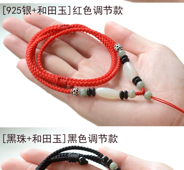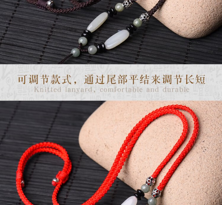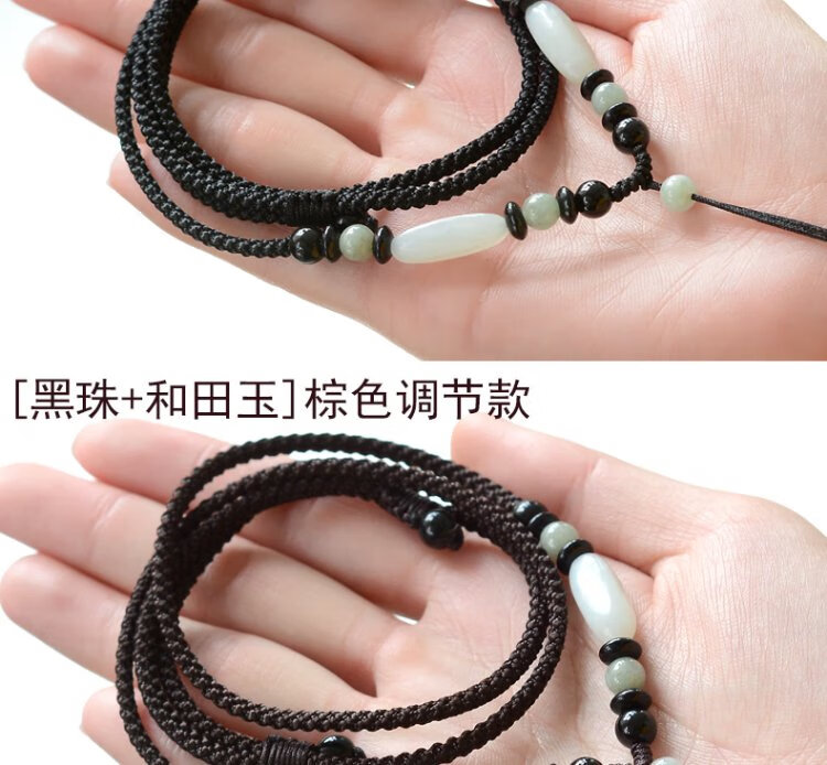 Tang Huisse hand-woven jade pendant necklace rope Hetian jade pendant pendant lanyard jade pendant for men and women 925 silver + Hetian jade brown model