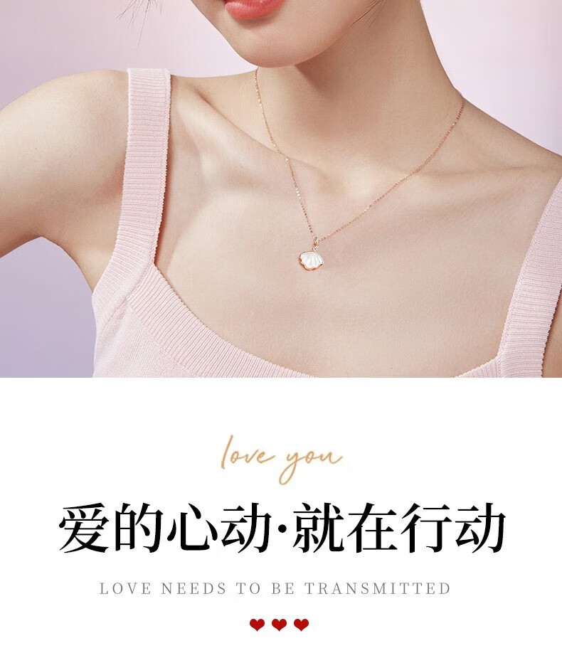 China Gold (CHINA GOLD) 18k color gold diamond necklace for women, rose gold Yibeizi pendant, practical birthday gift for girlfriend, same city delivery, lifelong love diamond necklace