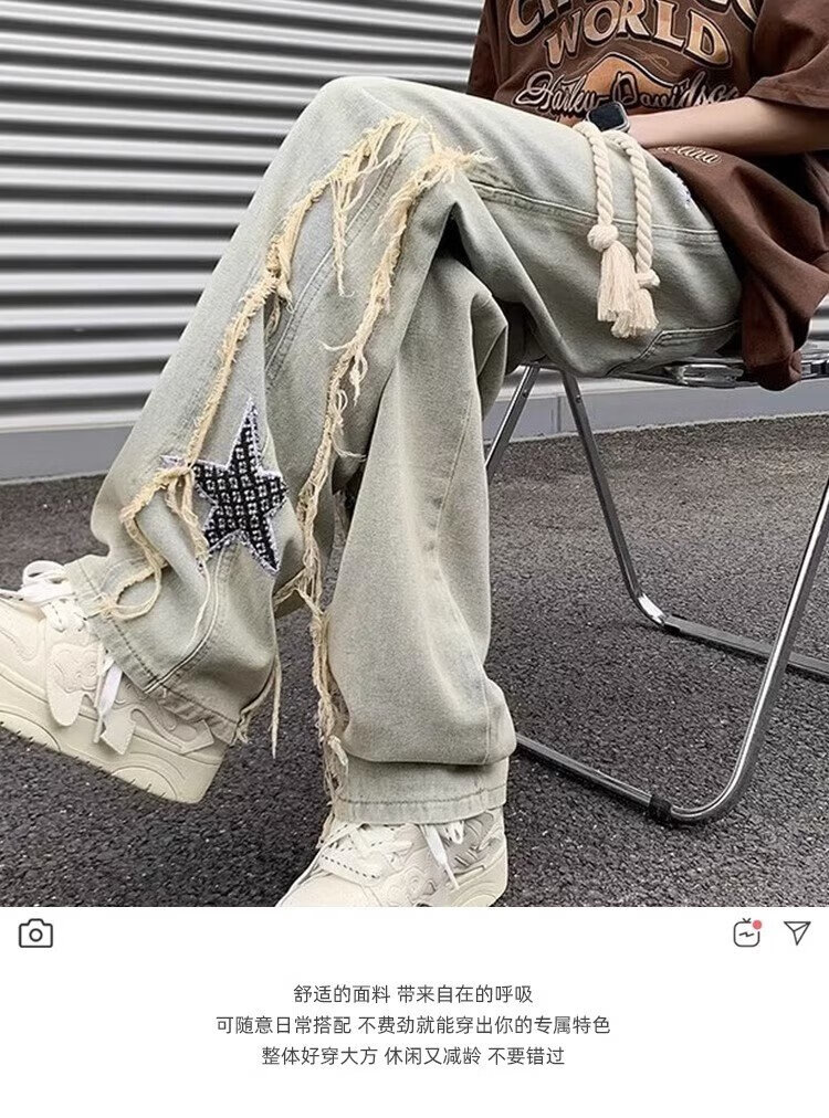 Yiran presents yellow mud-colored jeans for men, retro loose wide-legged straight-leg floor-length trendy brand casual versatile pants for men, autumn new style, yellow mud-colored L. Recommended 105-125 Jin Jin is equal to 0.5 kg