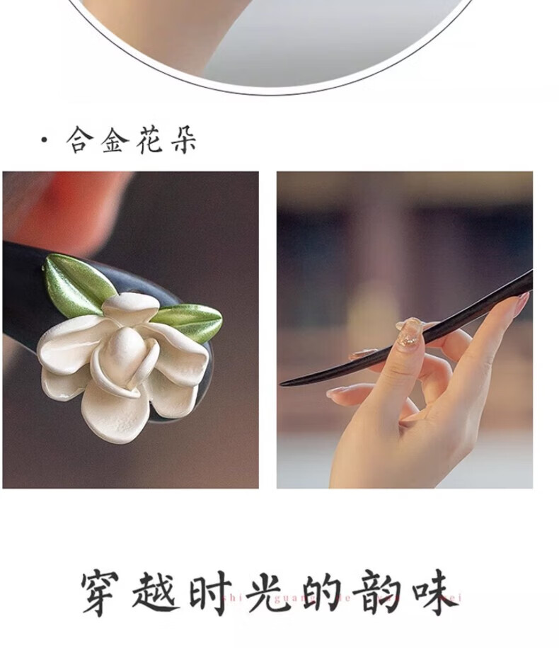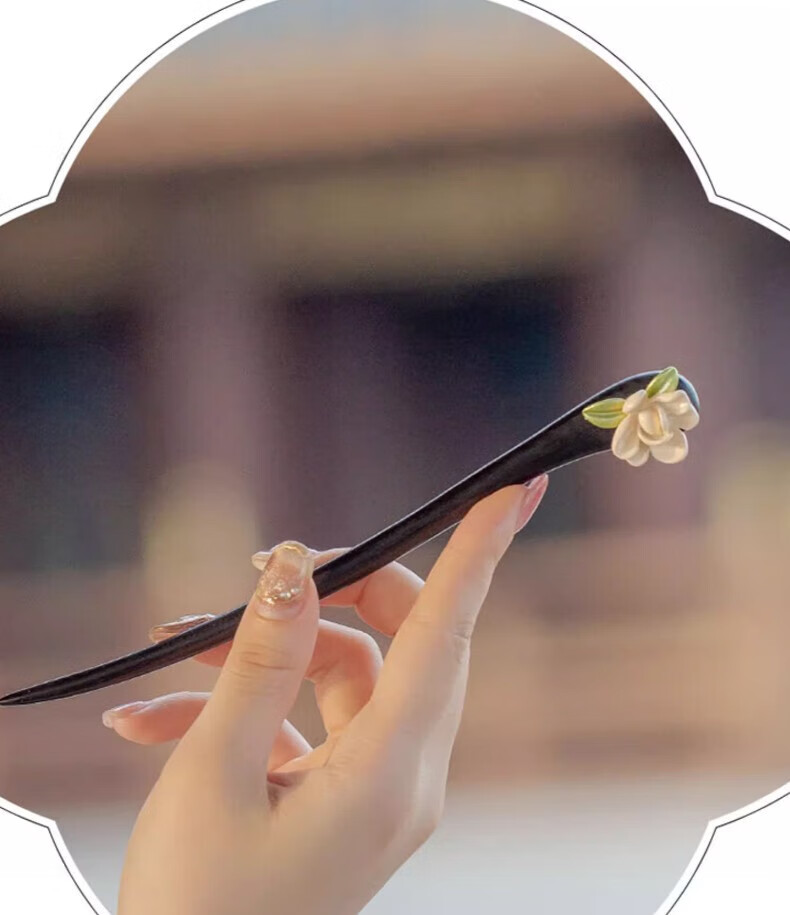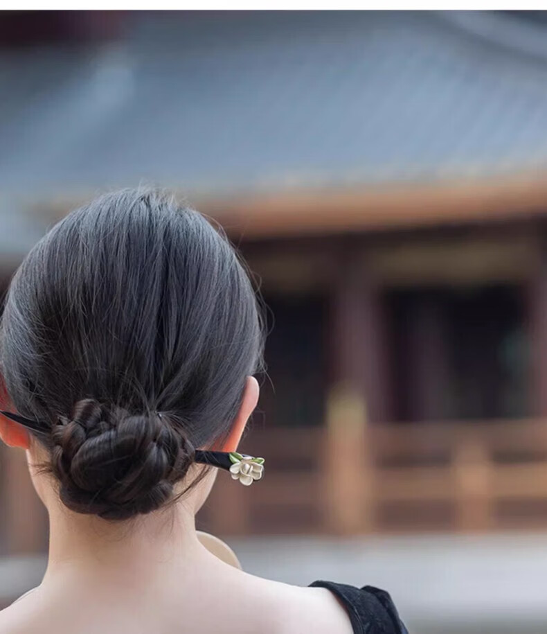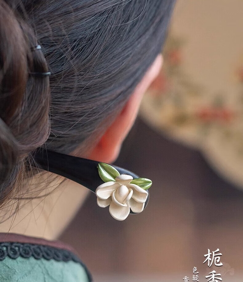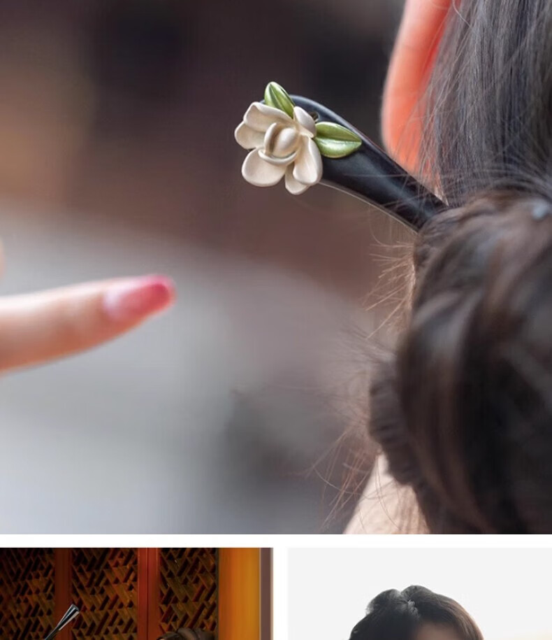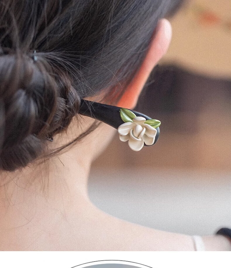 Two Worlds Happy Wooden Hairpin Women's High-end Gardenia Flower Temperament Hairpin Modern Simple New Chinese Style Hairpin Wooden Hairpin Hairpin