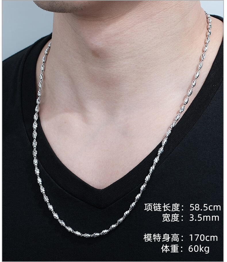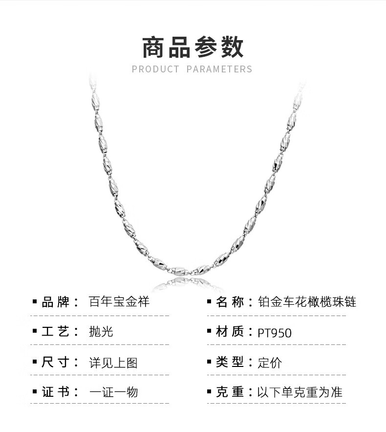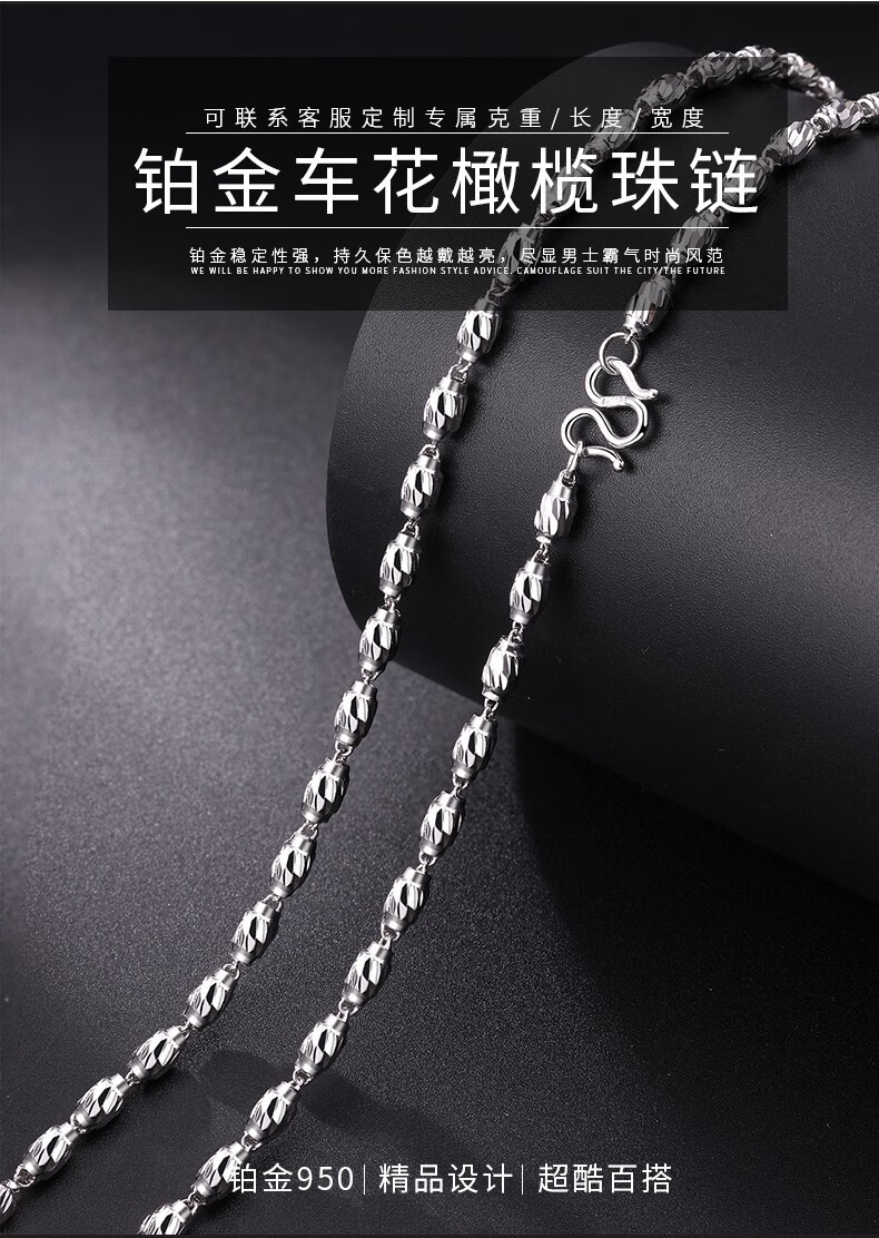 Centenary Baojinxiang platinum necklace men's pt950 platinum fashion necklace men's and women's platinum necklace olive bead necklace for husband 8.8-9 grams thick 2.4mm long 45 cm