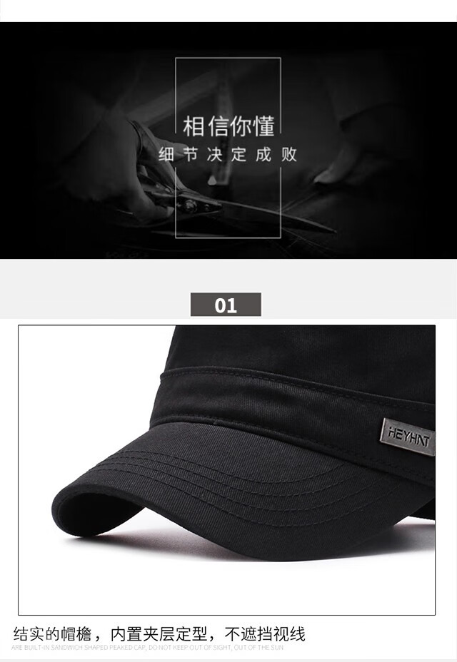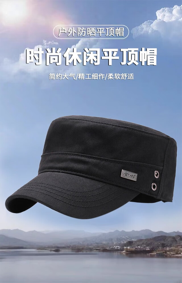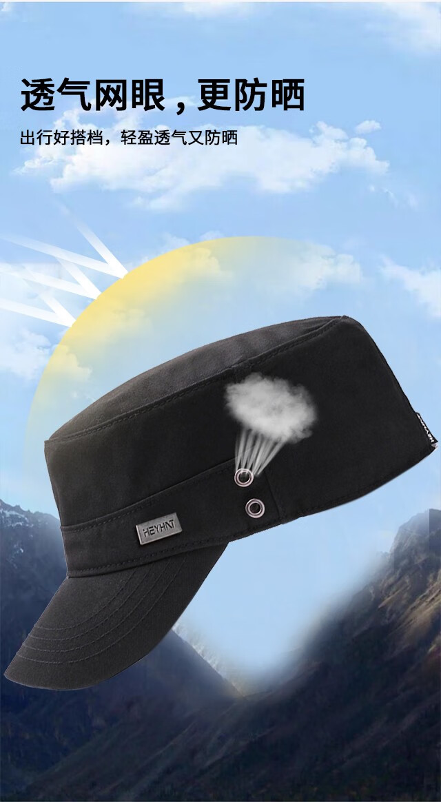 Woodpecker (TUCANO) Hat Men's Flat Top Peaked Hat Middle-aged and Elderly Breathable Versatile Sun Protection Hat Outdoor Fashion Fishing Leisure Sun Hat Navy Blue