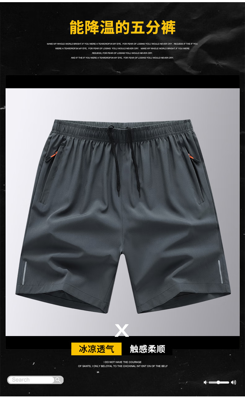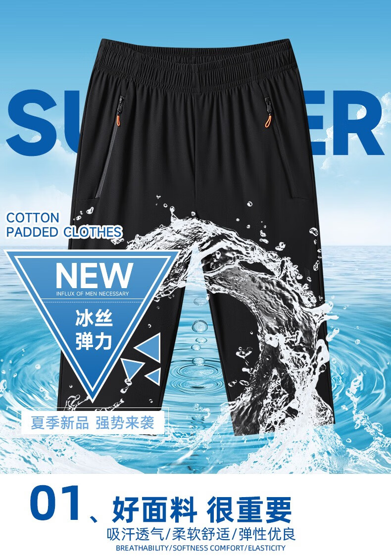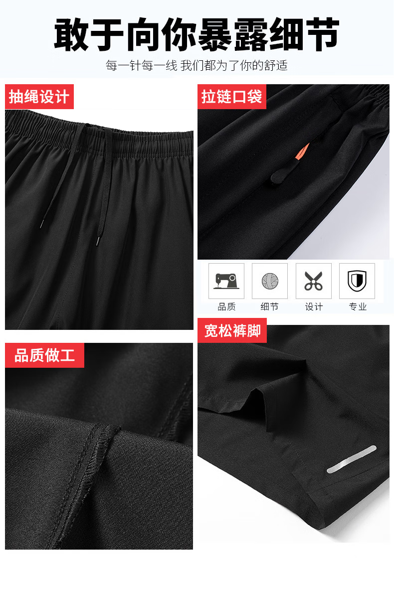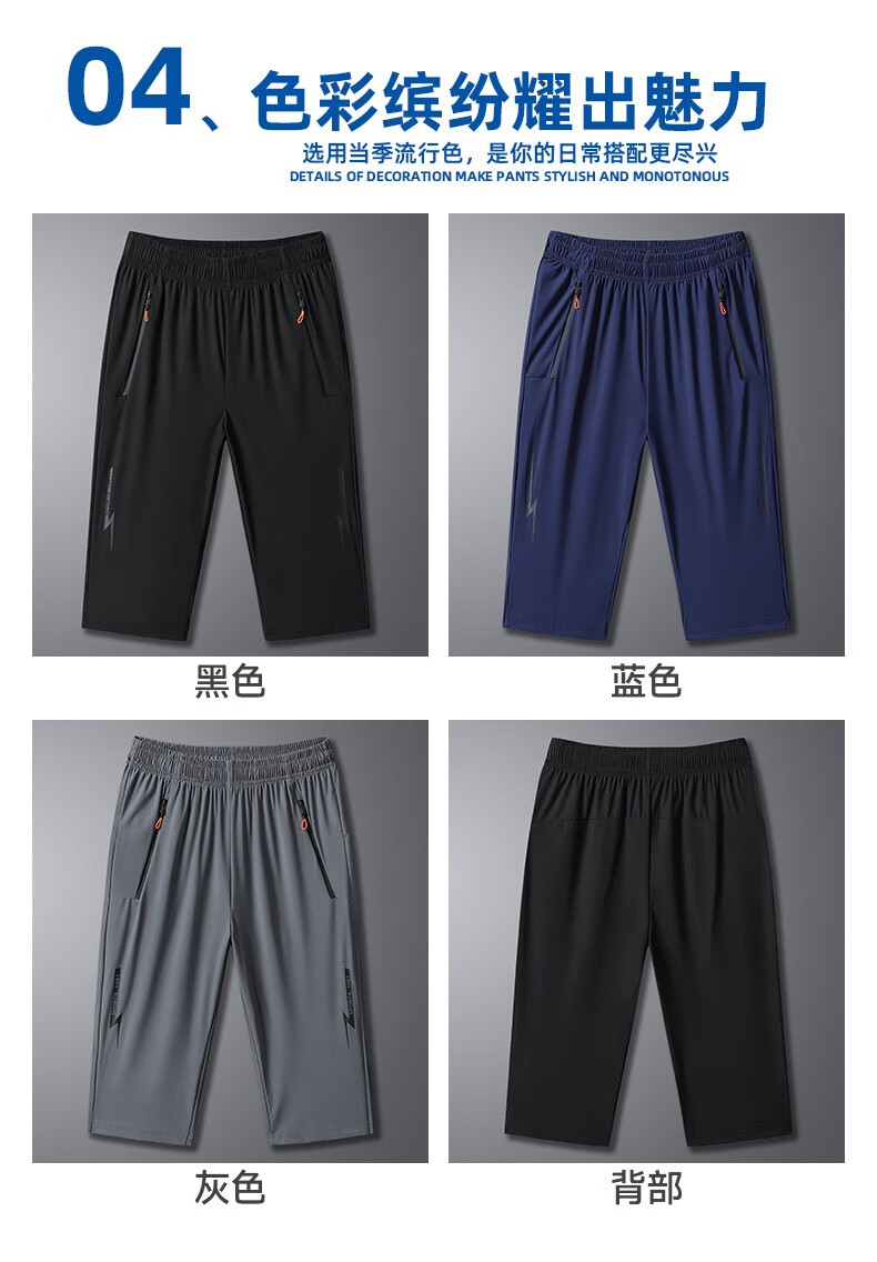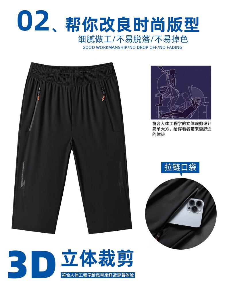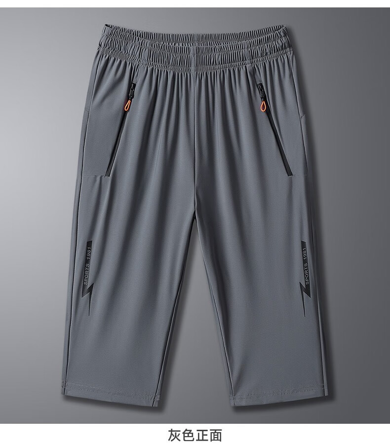 Woodpecker Two-piece Ice Silk Cropped Pants Men's Summer Thin Sports Casual Pants Quick-Drying Loose Large Size Shorts Men's Black + Gray 4XL (Recommended 160-175 Jin Jin equals 0.5 kg)
