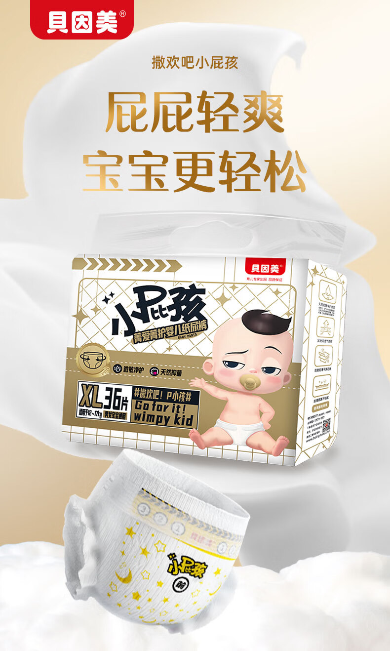 Beingmate baby diapers, pull-ups, diapers, growing pants, toddler pants, new and old packaging, randomly shipped, 12-17kg, XL size diapers/36 pieces