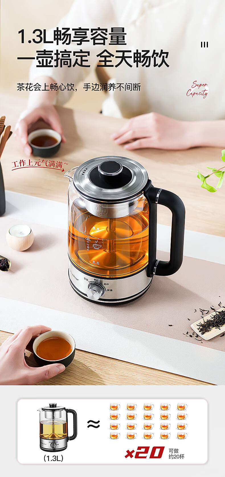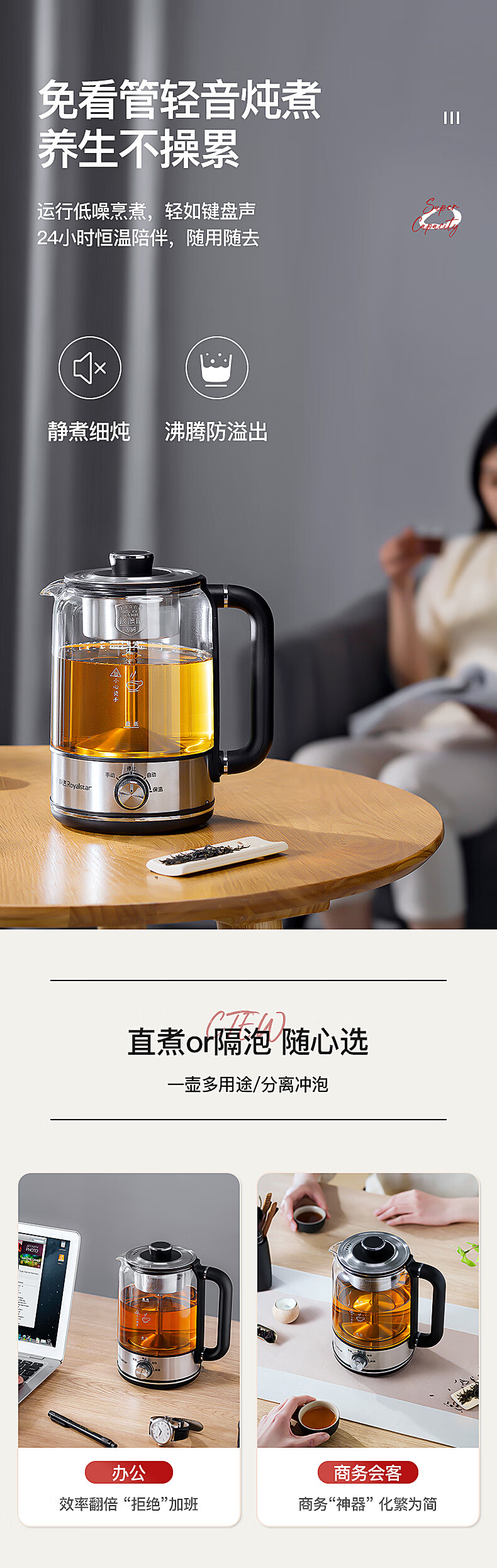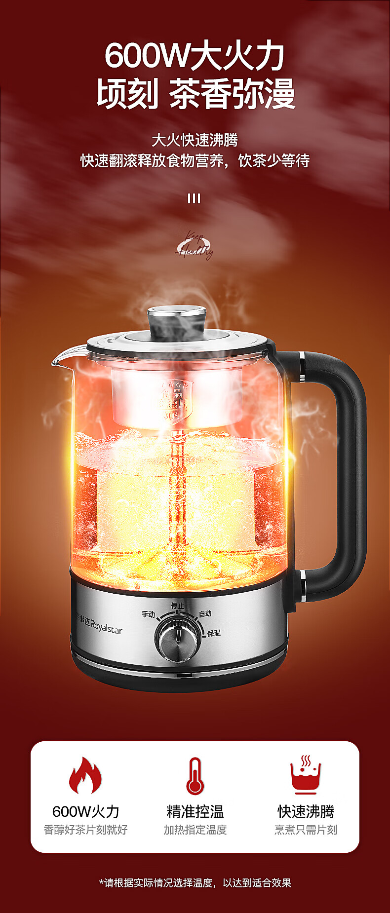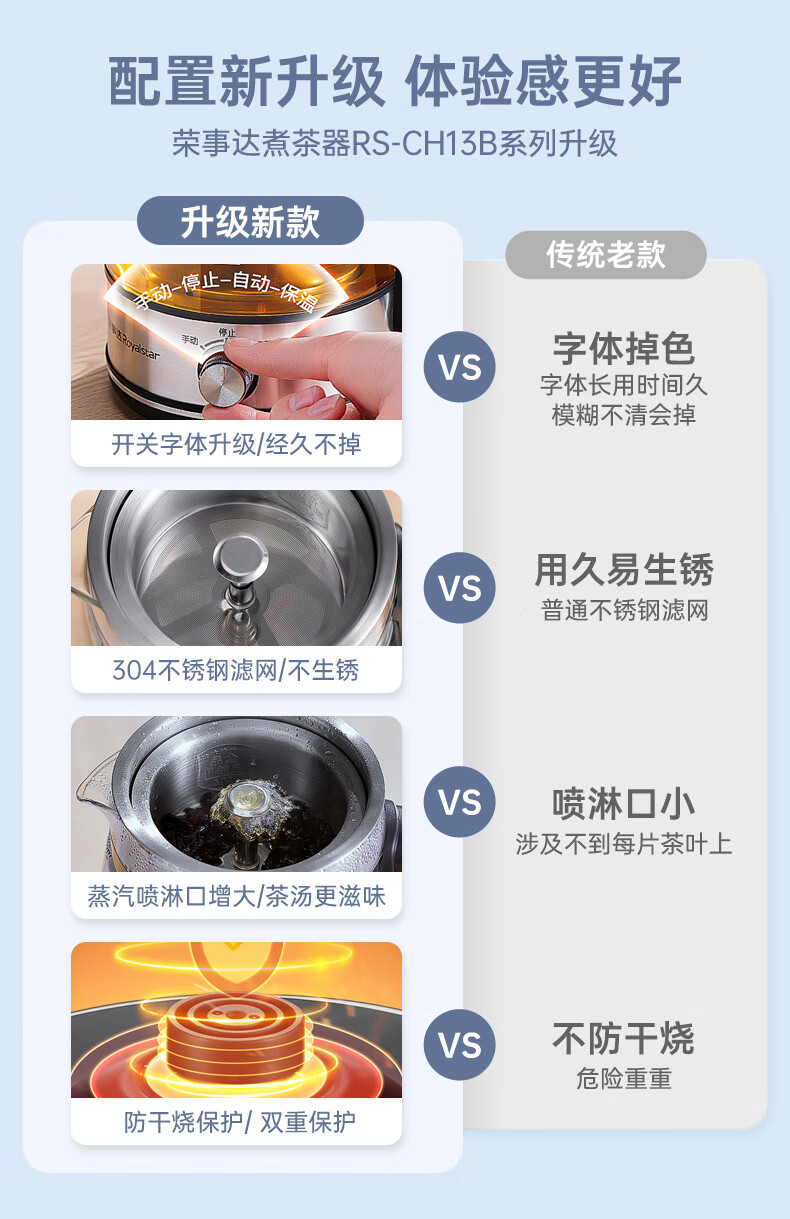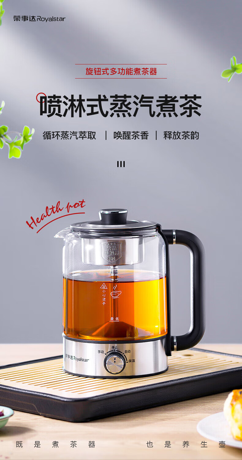 Royalstar tea kettle 1.3L large capacity health kettle spray type tea kettle kettle electric kettle steaming tea kettle tea steamer tea kettle making tea around the stove upgraded version 1.3L -B long-lasting heat preservation convenient rotary control