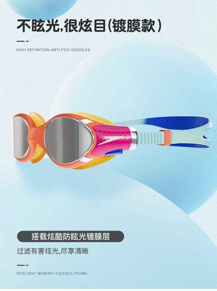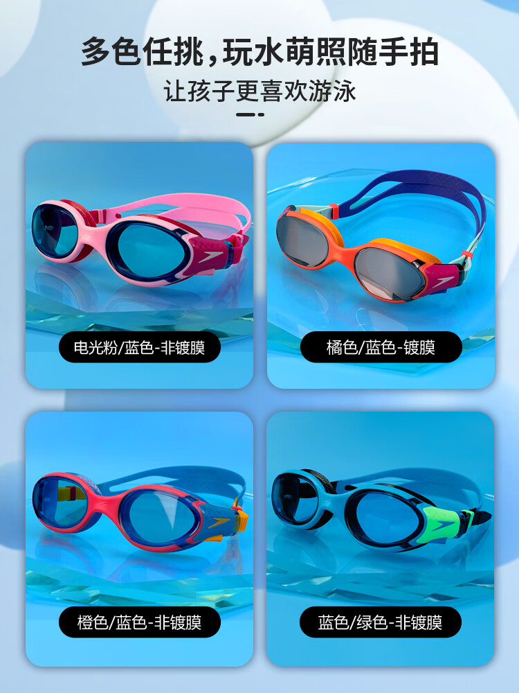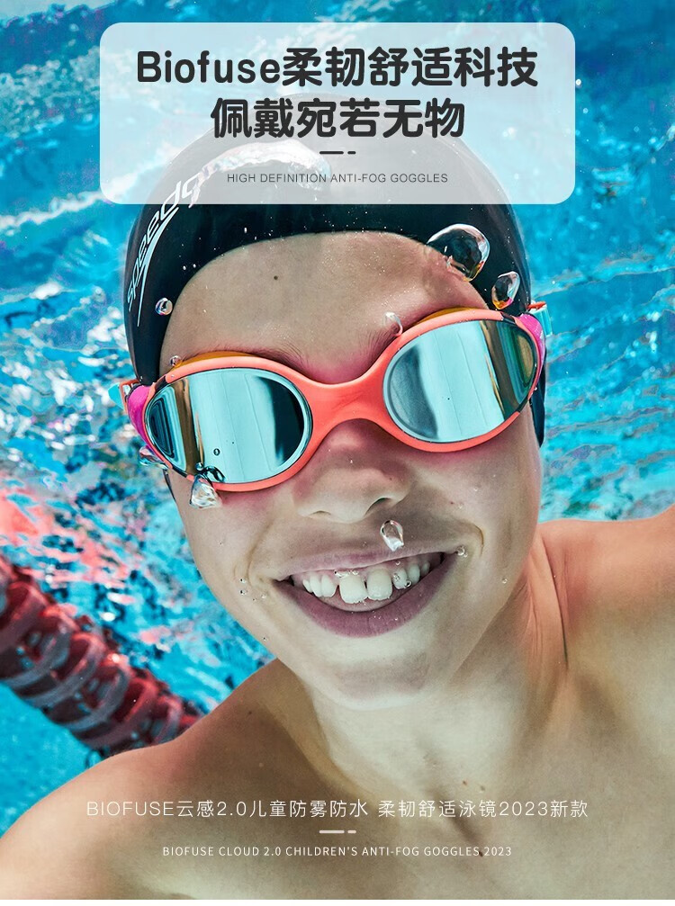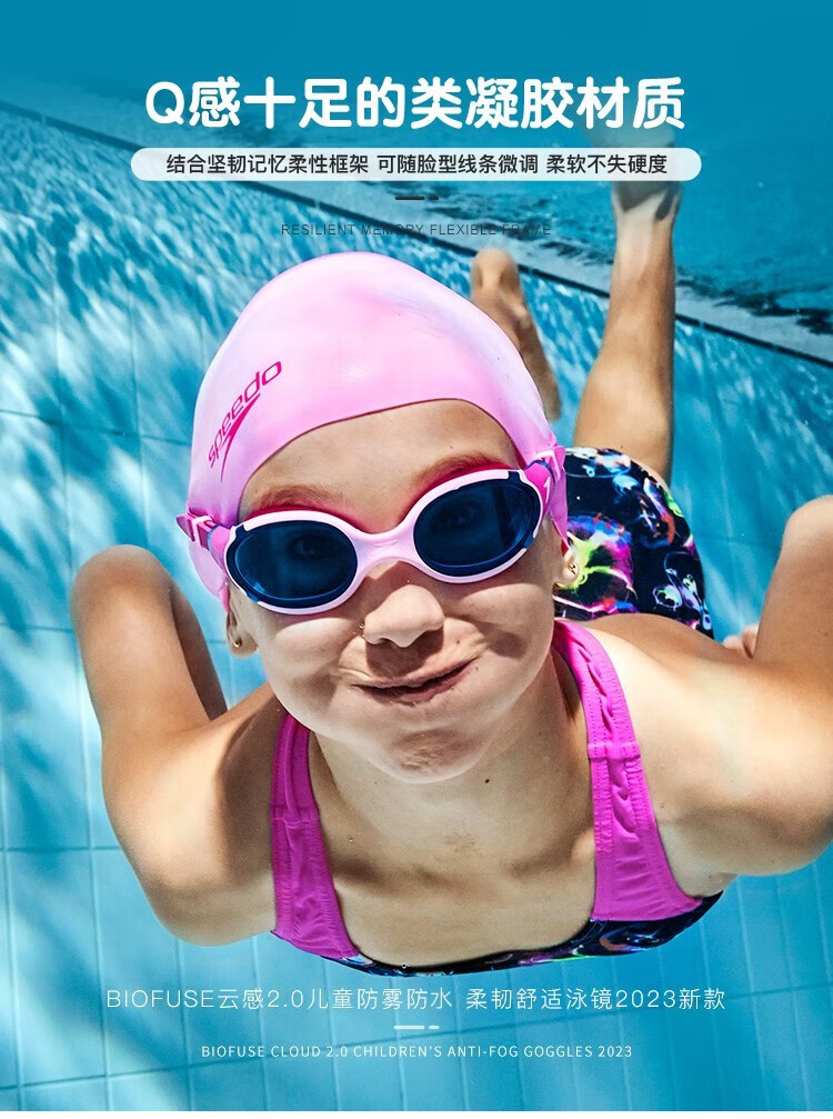 Speedo's 25th new children's swimming goggles Biofuse Cloud Sense 2.0 children's anti-fog, waterproof, flexible and comfortable coated swimming goggles, pink non-coated, comfortable to wear