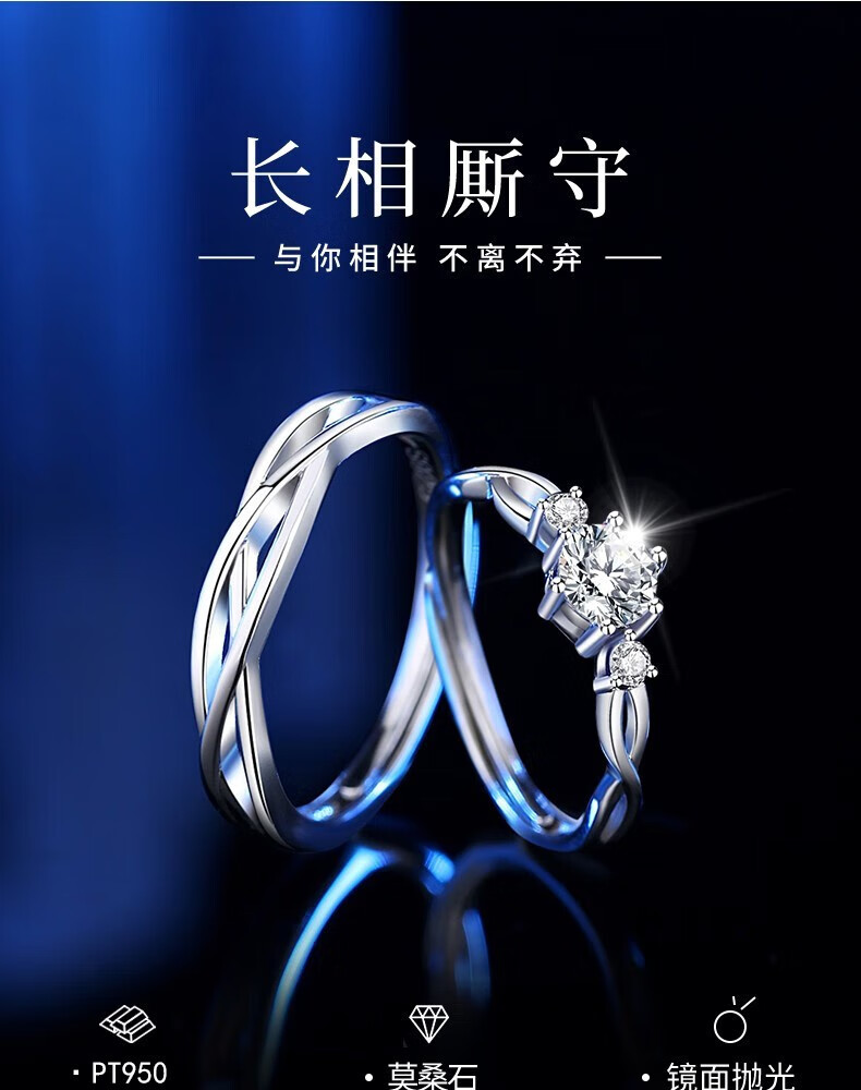 MZMZ platinum couple ring pt950 platinum fashionable new diamond ring knot engagement Valentine's Day birthday gift for girlfriend local warehouse/next day delivery/light luxury live mouth couple ring