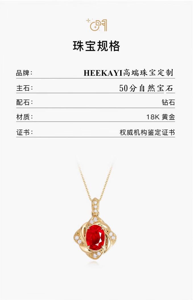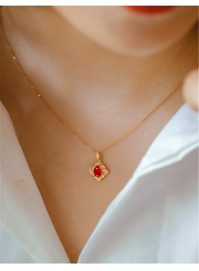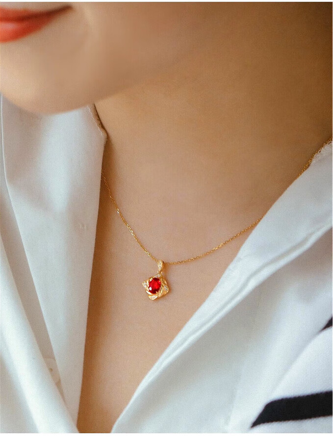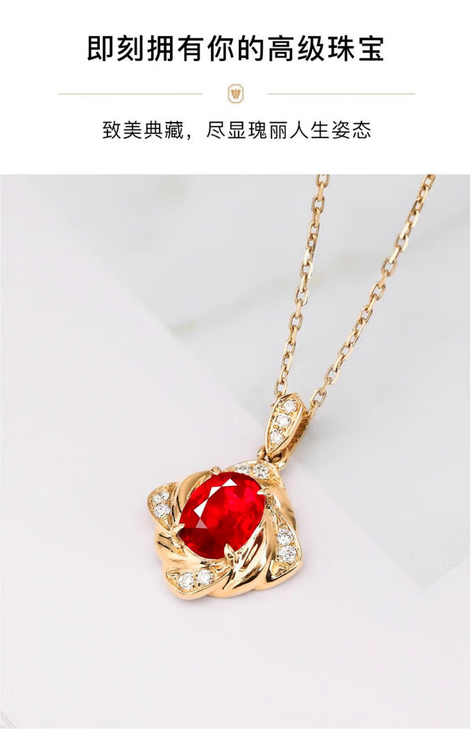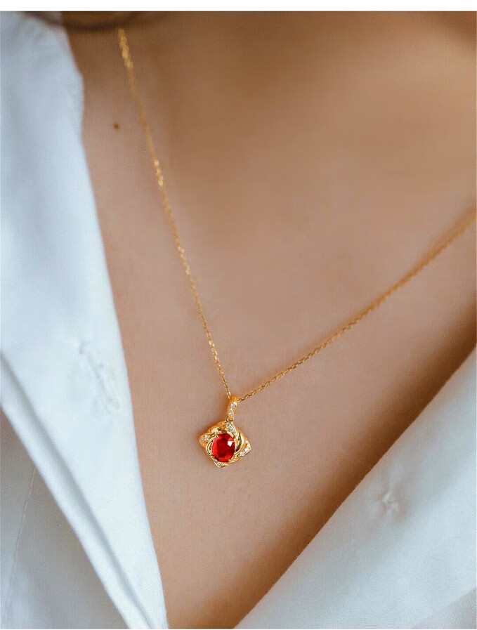 Haikai 18 gold k necklace women's diamond necklace high-end luxury red gemstone Valentine's Day birthday gift 50 points ruby necklace (including gemstones)