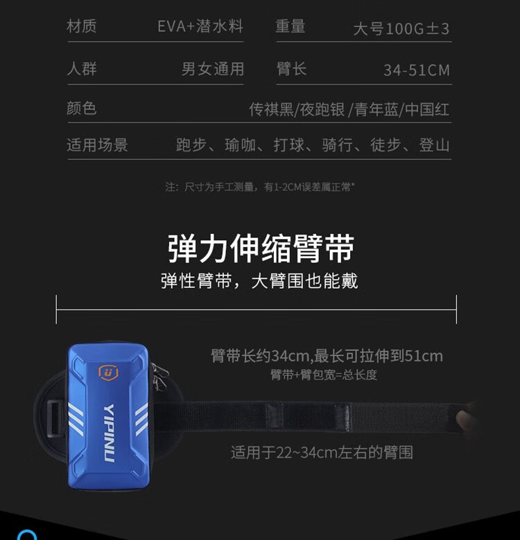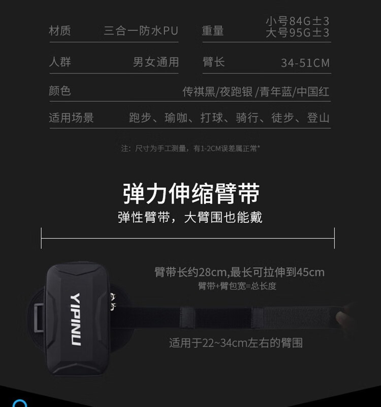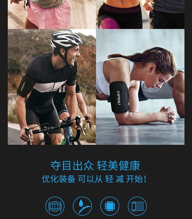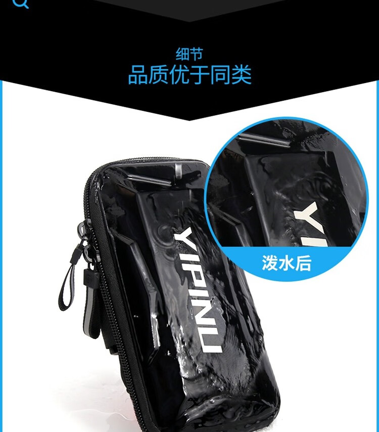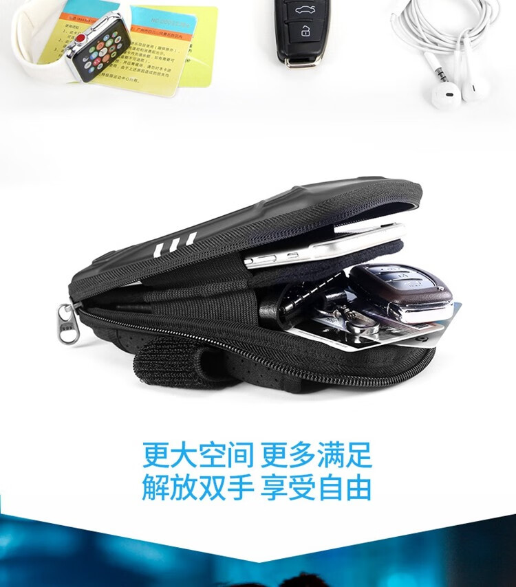 ROUHILDY running mobile phone arm bag outdoor sports equipment men's and women's wrist bag arm cover anti-fall outdoor mobile phone bag waterproof fitness black