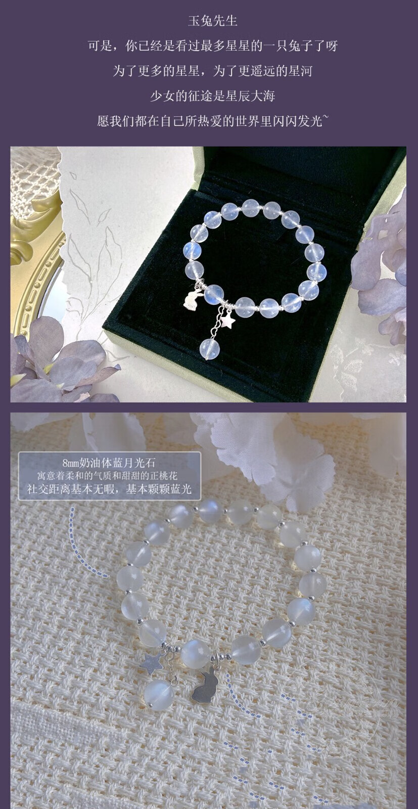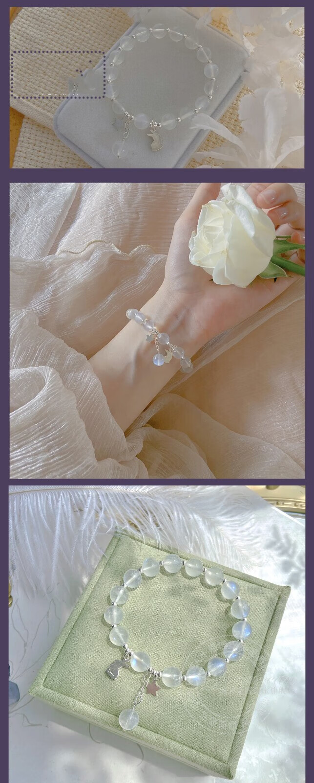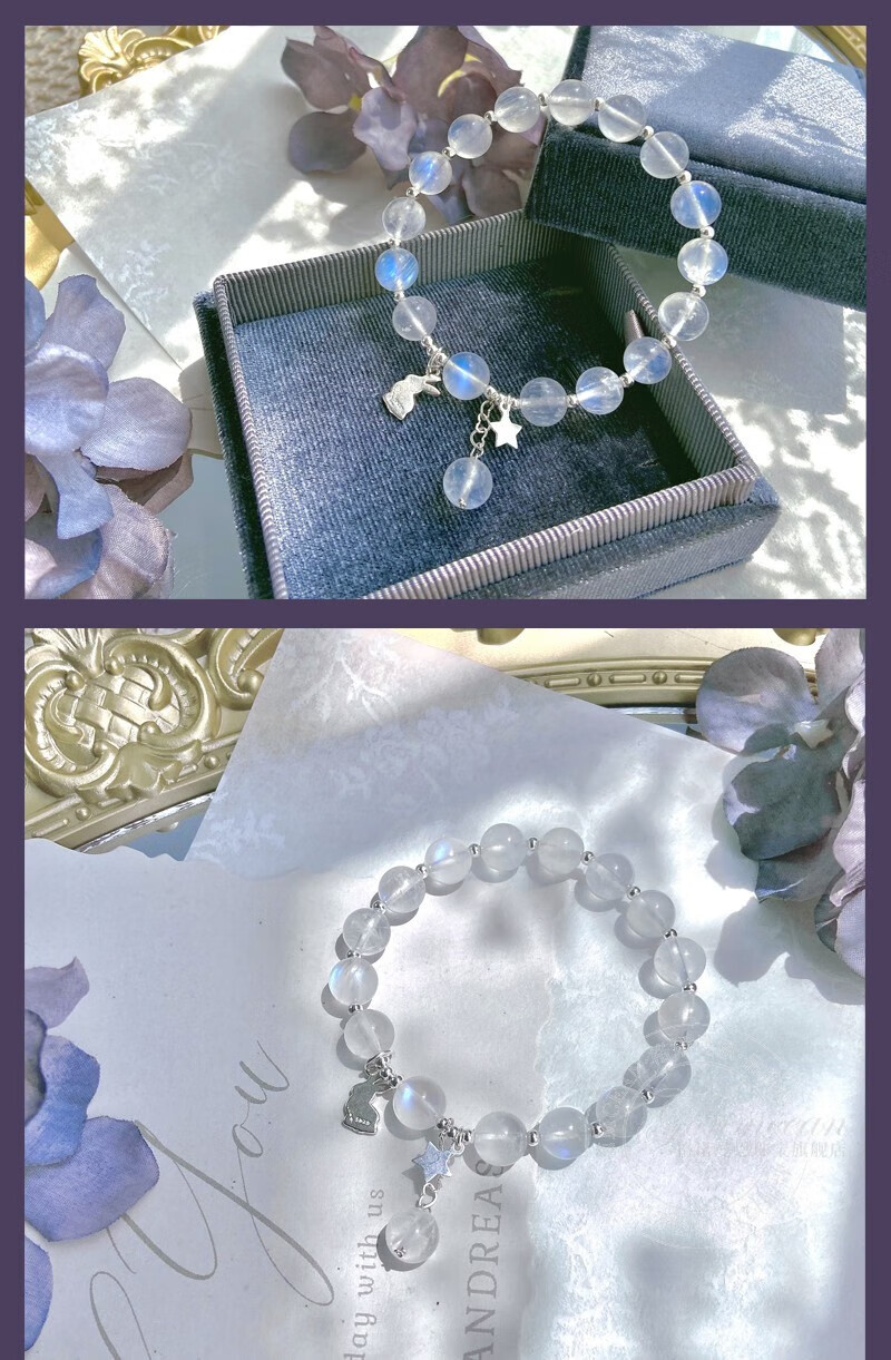 GONMCEAN Sri Lanka Cream Blue Moonstone Bracelet Women's Crystal Buddha Bead Bracelet Silver Jewelry Gift Beads 8mm