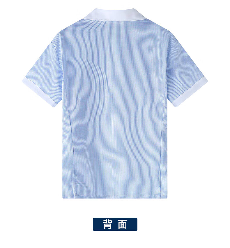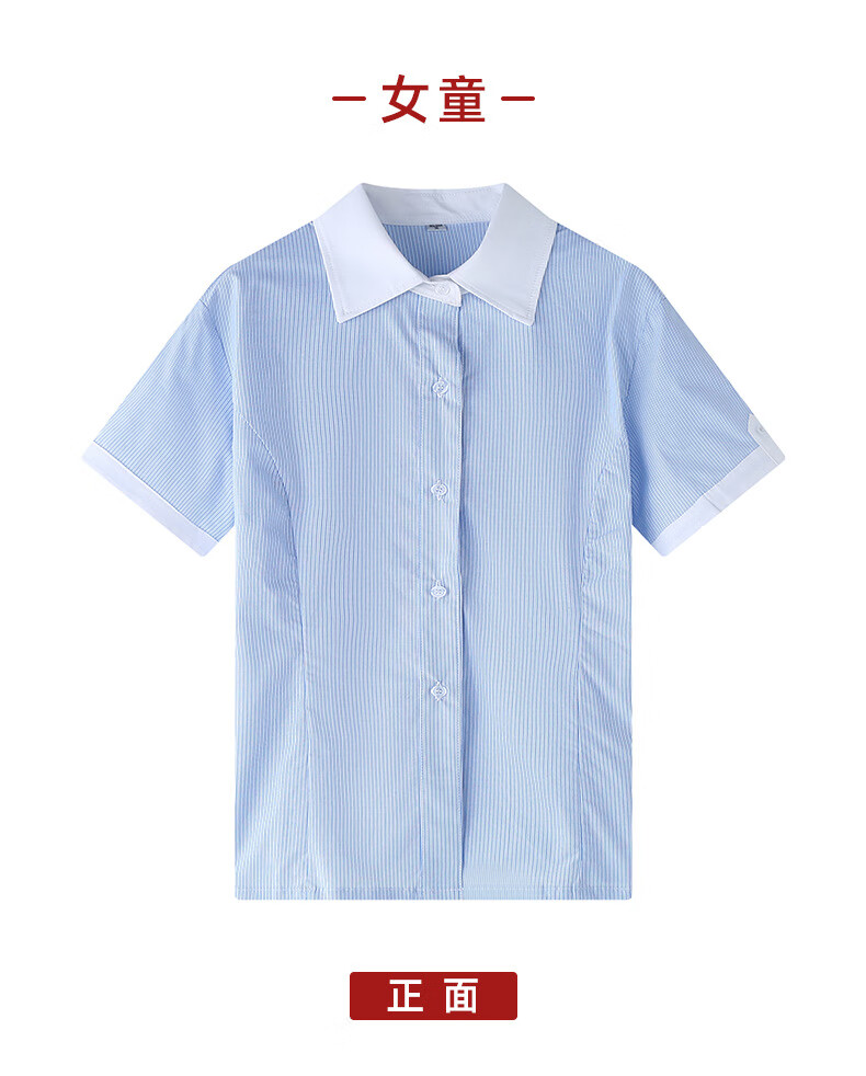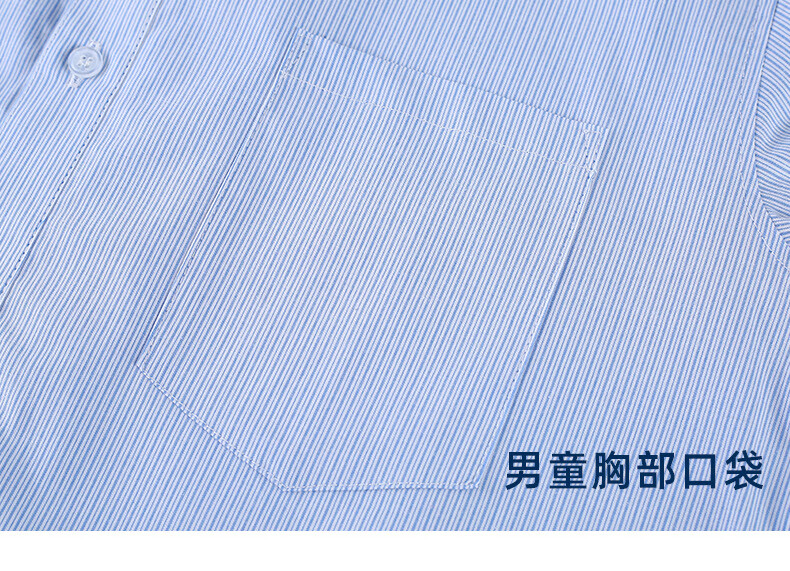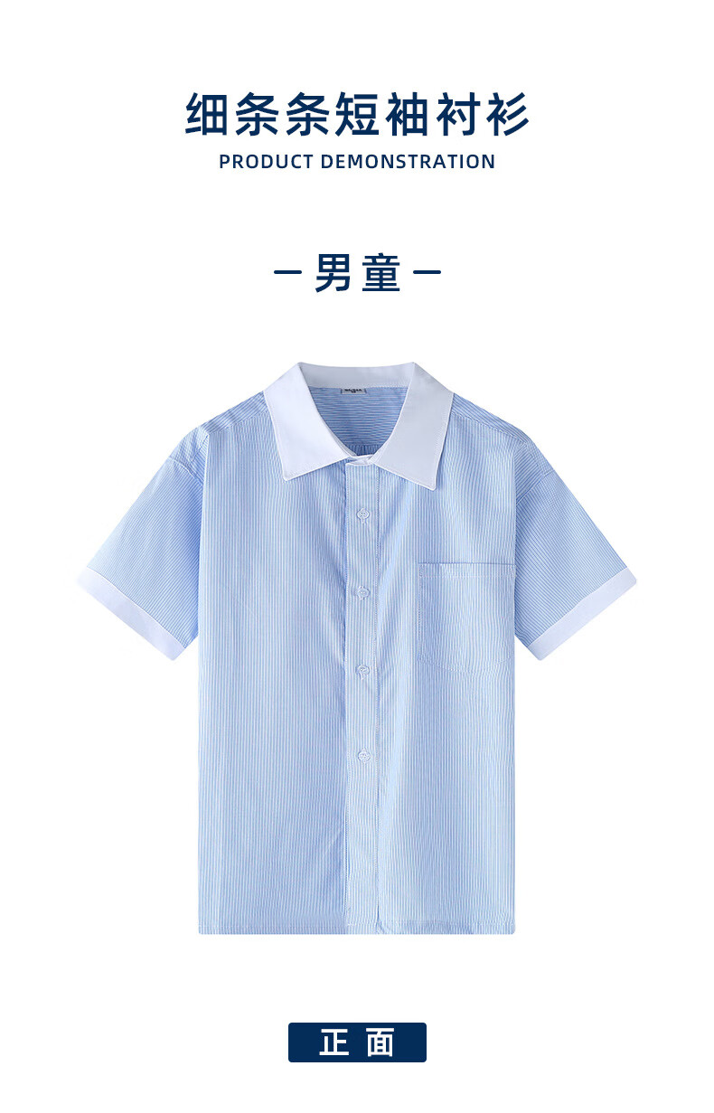 Xin Yueqing children's summer short-sleeved shirt for boys and girls, primary and secondary school uniform shirt, white collar, blue pinstripe half-sleeved top, thin striped boys' short-sleeved shirt 160 cm