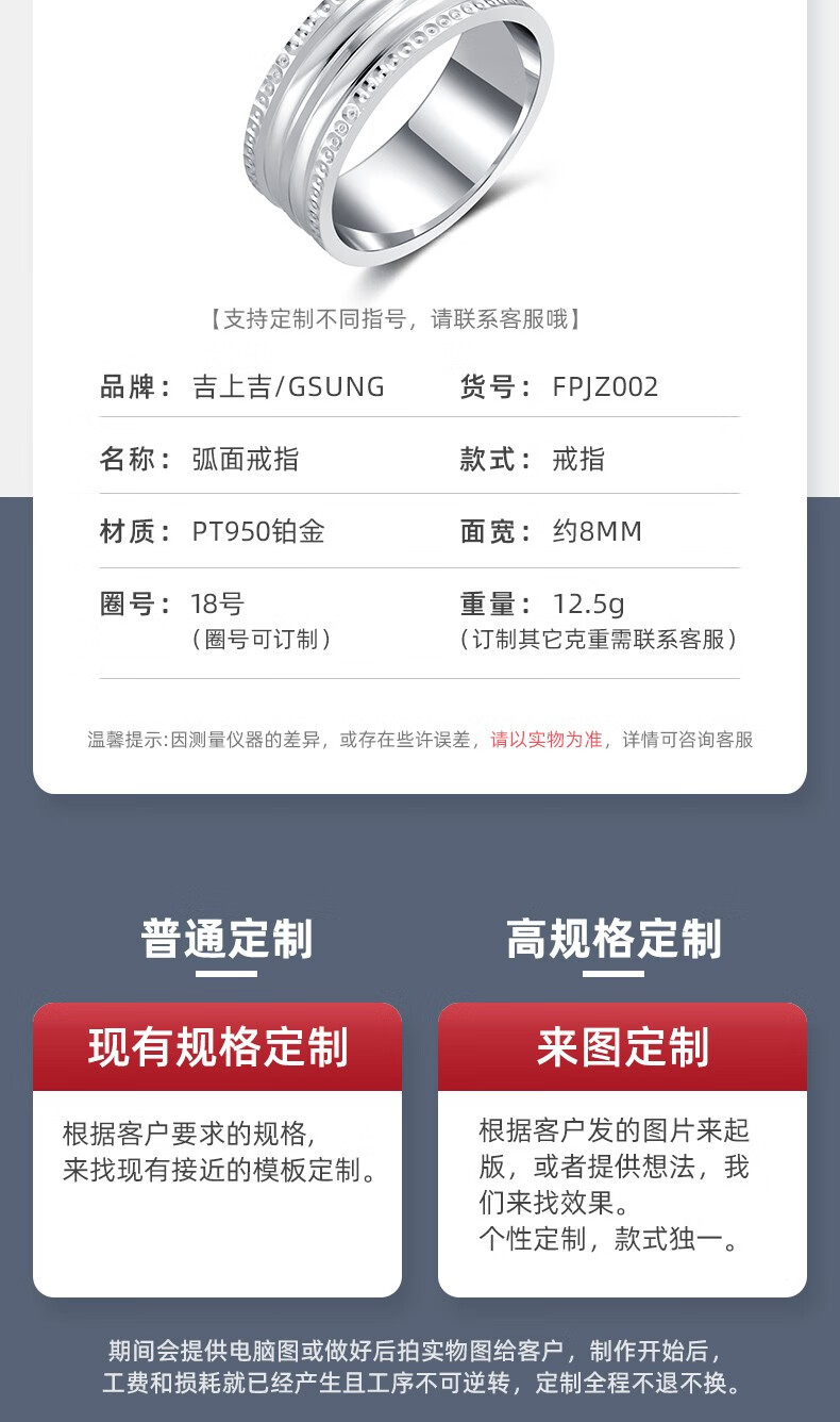 GsunG platinum ring men's PT950 couple ring platinum women's ring new curved platinum ring fashionable and shiny size 19-22 about 11-13 grams wide about 8mm customized