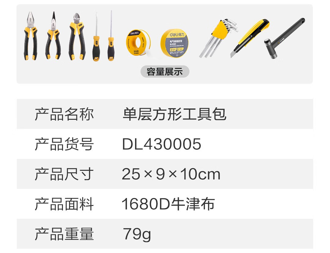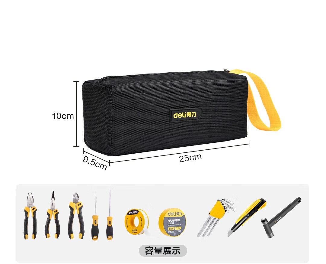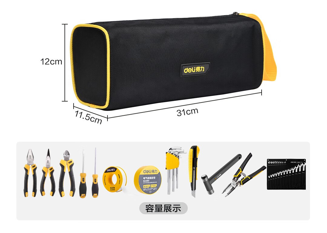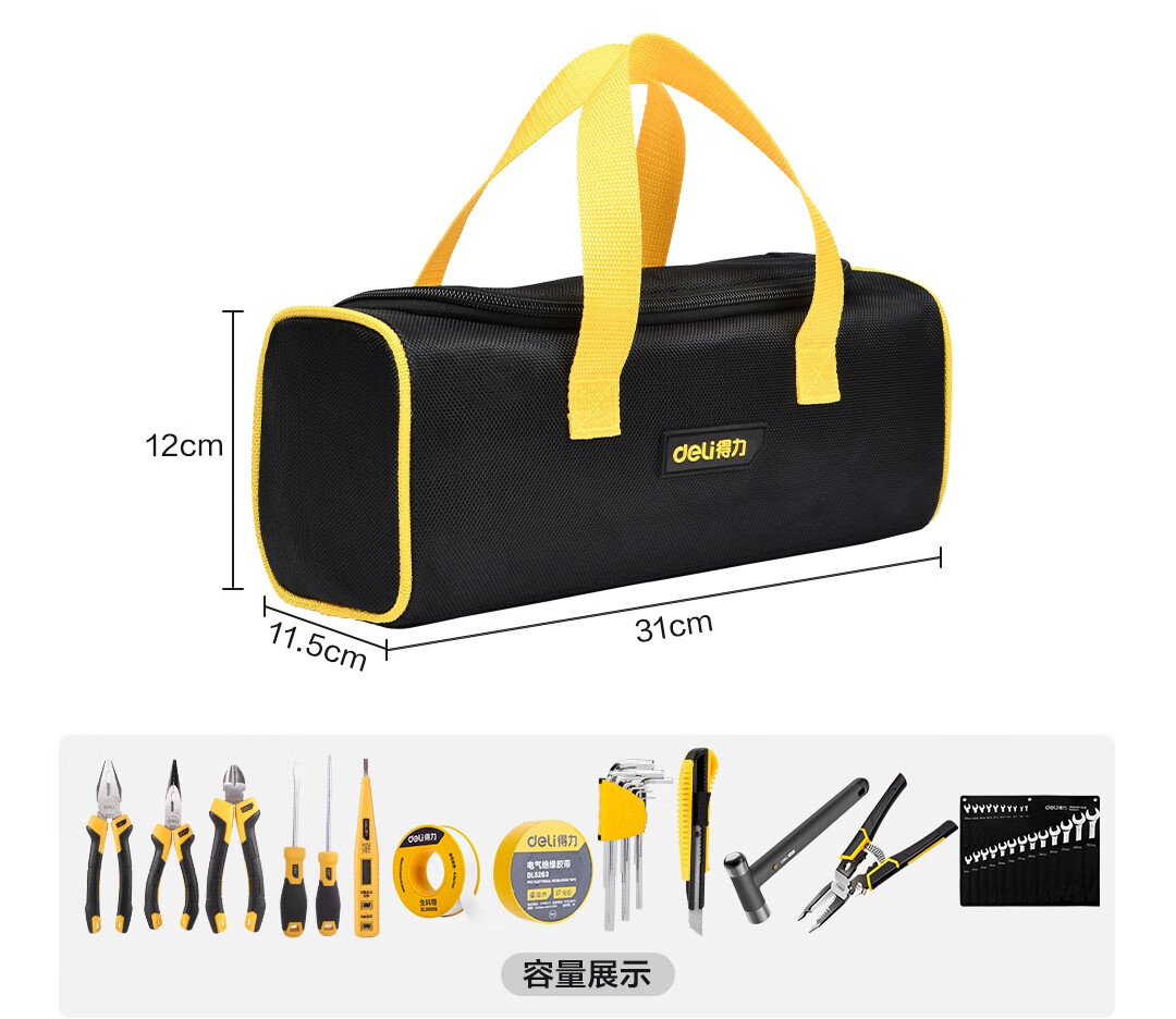 Deli Hardware Tool Bag Electrician's Special Portable Repair Storage Bag Portable Small Accessories Canvas Single-layer Small Waterproof and Wear-Resistant Storage Bag