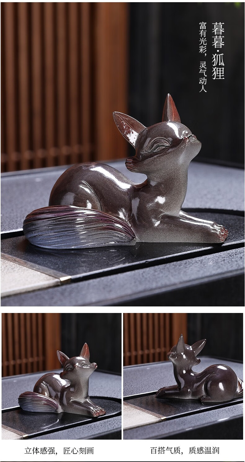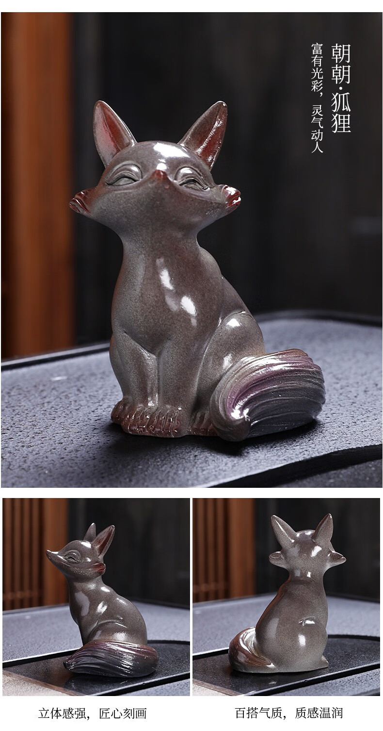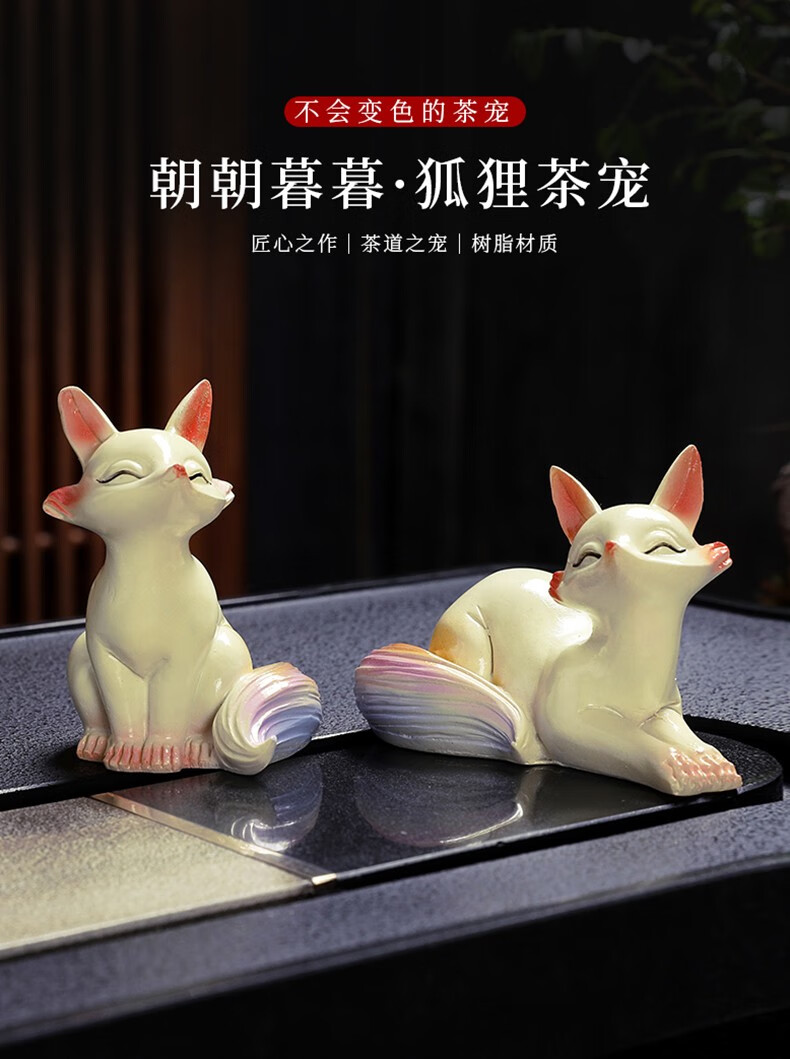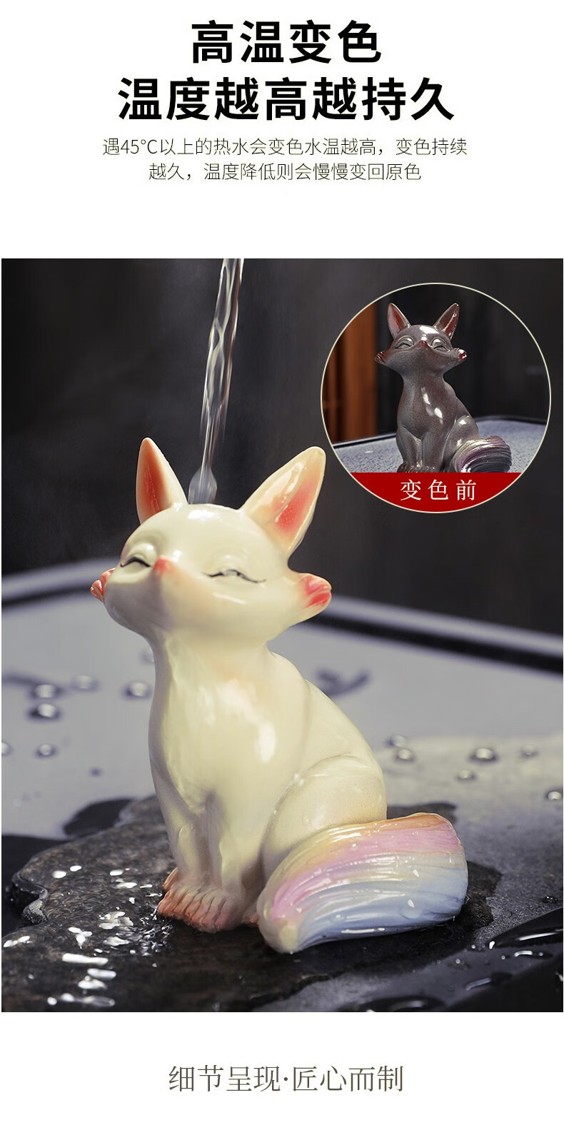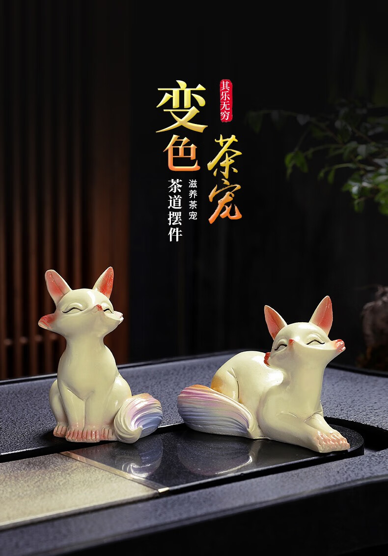 Pu Jun fox tea pet ornaments nine-tailed fox succulent plant long-haired nine-tailed fox special flower pot white fox discoloration fox resin 1-Chaochao non-color changing little fox