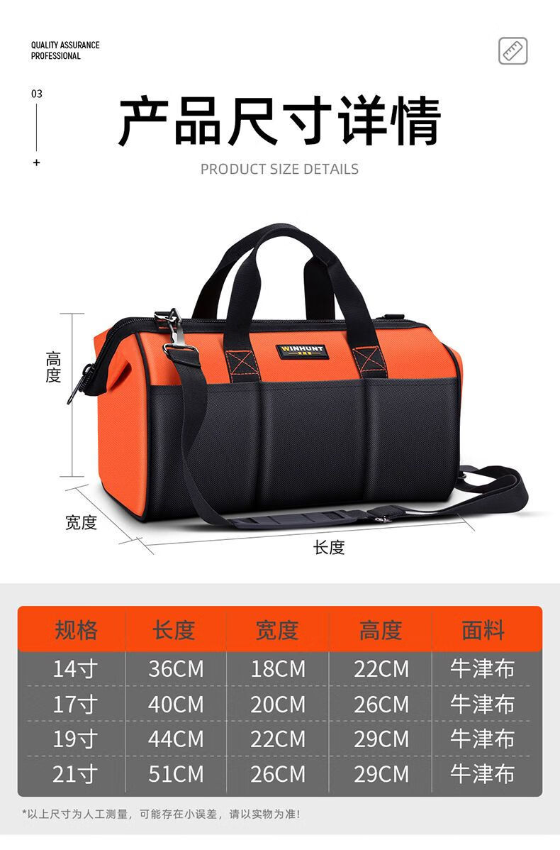 Runhuanian Tool Box Tool Bag Canvas Tool Bag Multifunctional Woodworking Hardware Durable Grinding Electrician Waterproof Portable Electrician Plastic Upgraded Thickening 17-inch Tool Bag