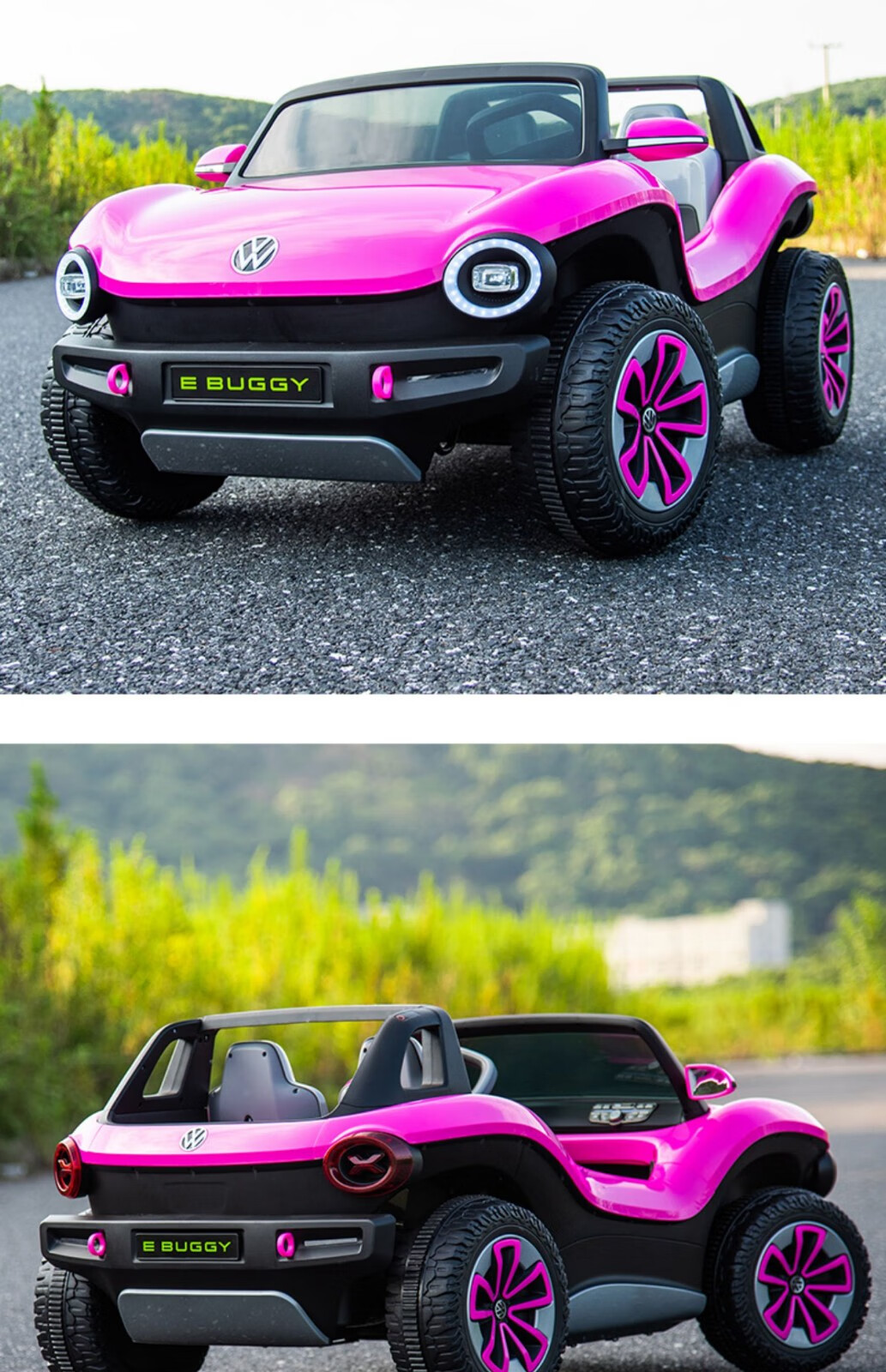 Join hands with Volkswagen Beetle electric children's car, four-wheeled baby with remote control, double toy car for children, can take adults with lithium battery, Supreme Red + soft wheels + large lithium battery, 6 hours of battery life