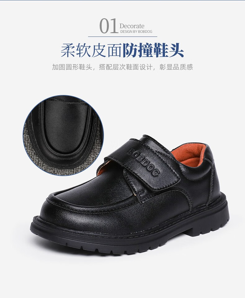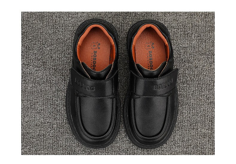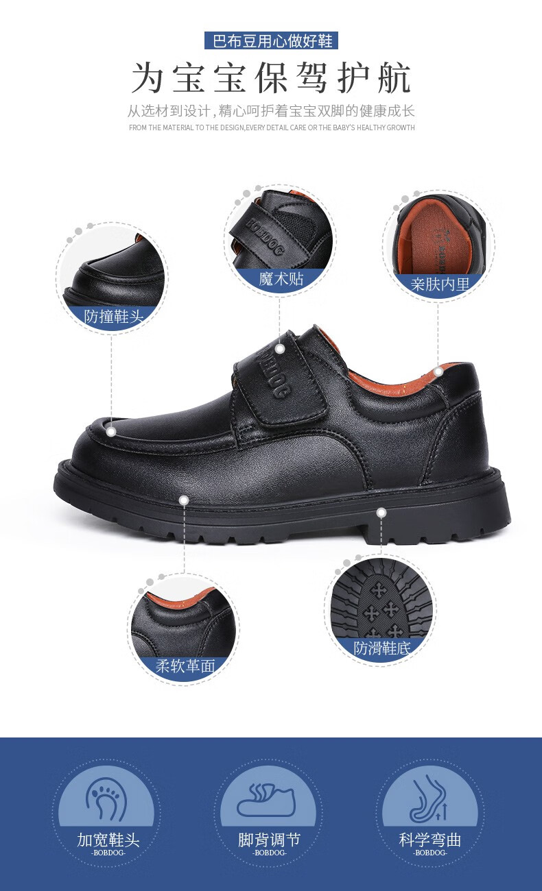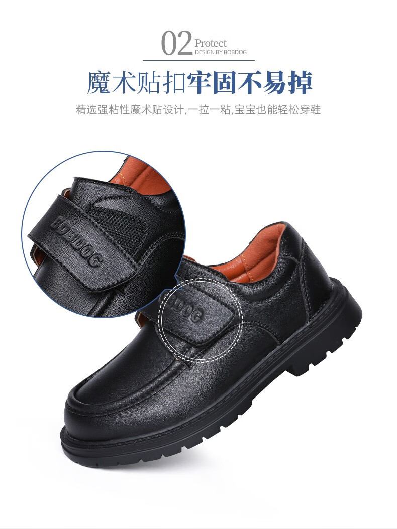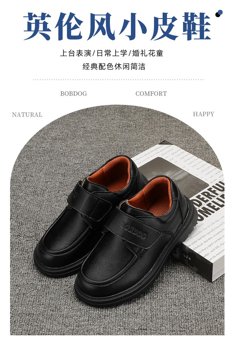 BOBDOG children's shoes, boys' soft-soled black leather shoes, autumn new versatile breathable children's shoes, black 26, suitable for feet 16.2cm long