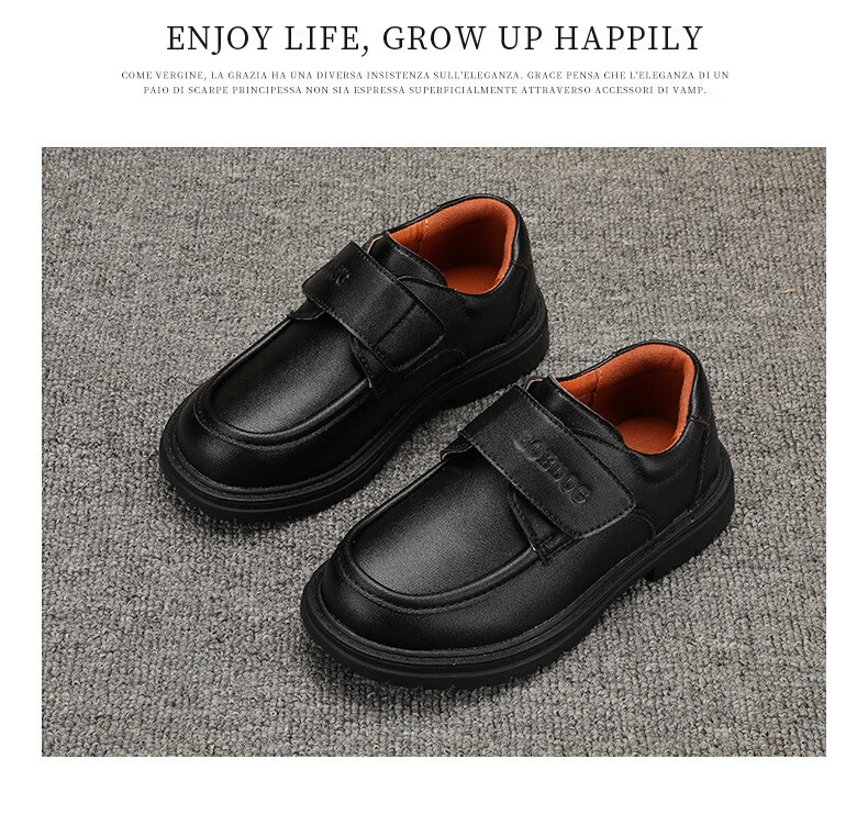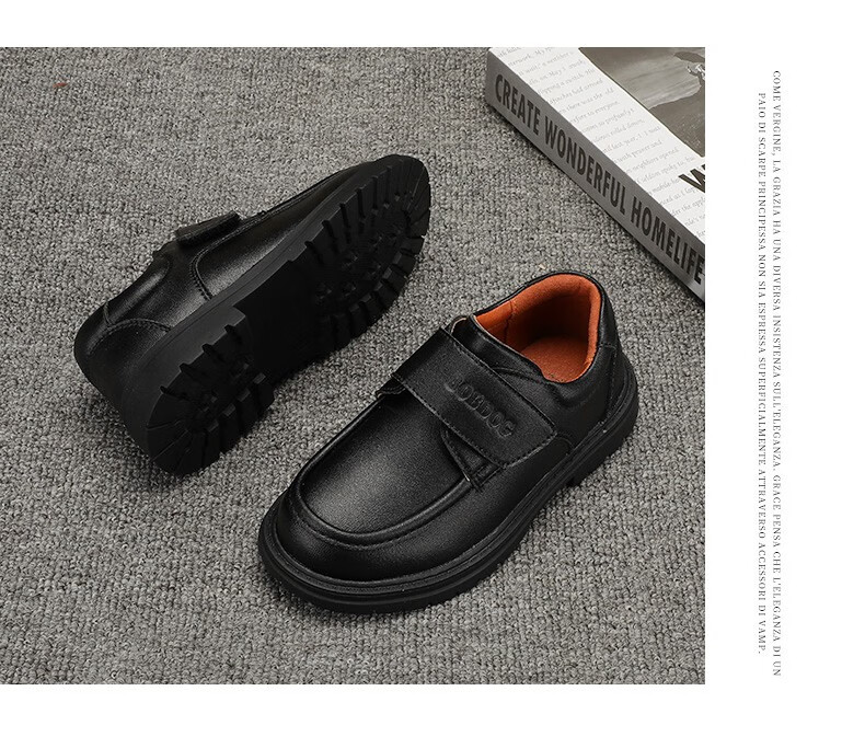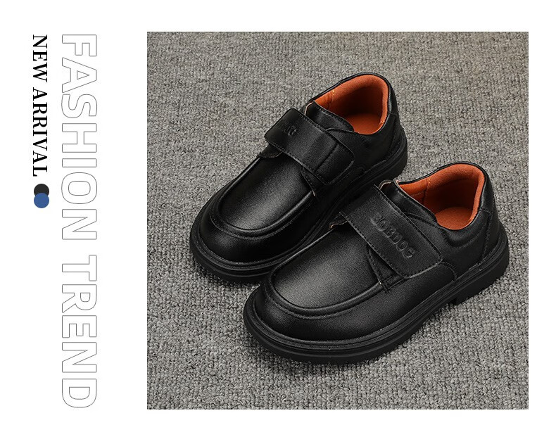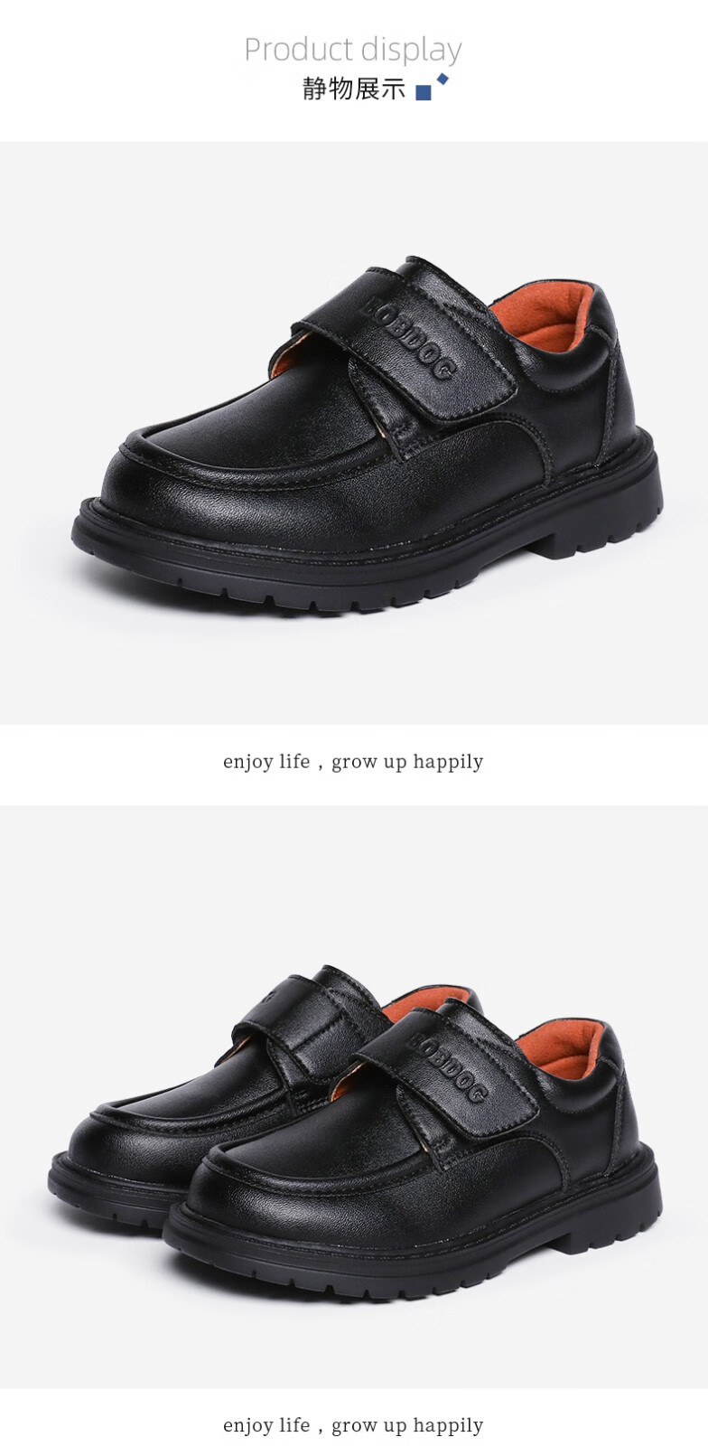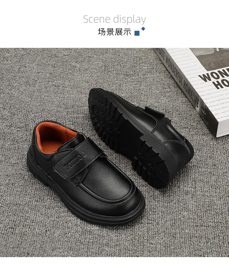 BOBDOG children's shoes, boys' soft-soled black leather shoes, autumn new versatile breathable children's shoes, black 26, suitable for feet 16.2cm long