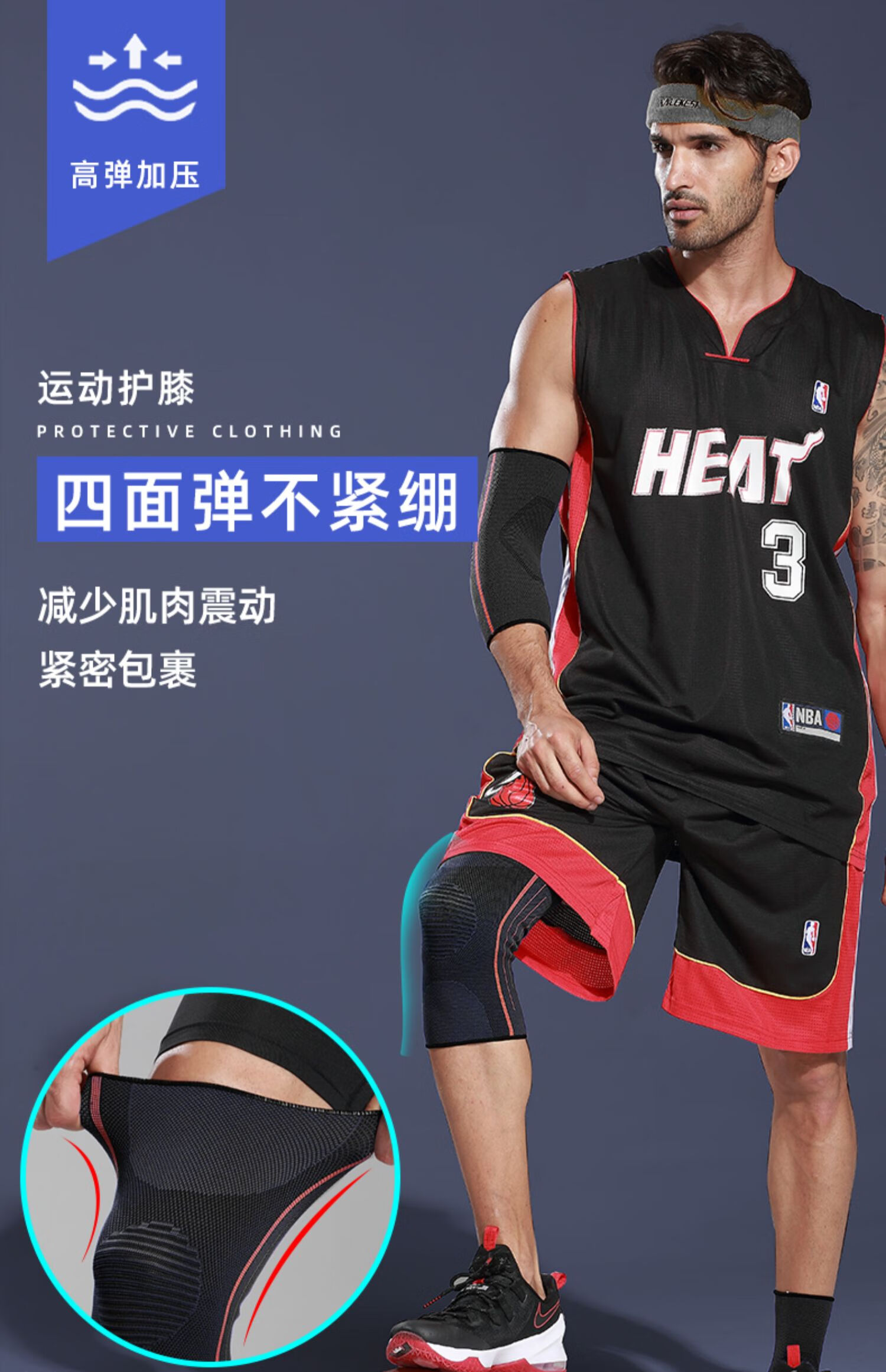 Nike knee pads, elbow pads, wrist pads, and ankle pads, tactical suit, basketball, football game, running sports protective gear, student equipment, professional silicone non-slip, breathable and fall-resistant, comprehensive 5-piece set, one pair each in M size (suitable for weight 100-150 Jin Jin equals 0.5 kg)