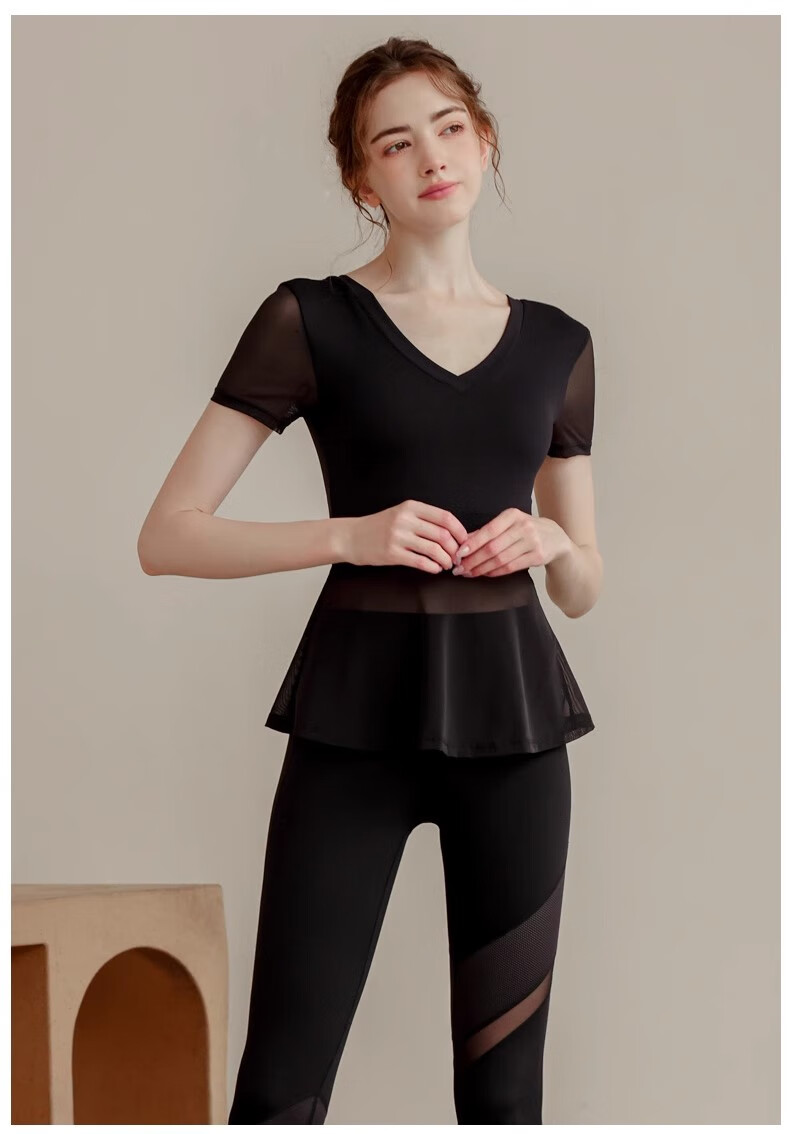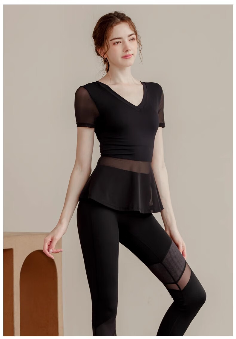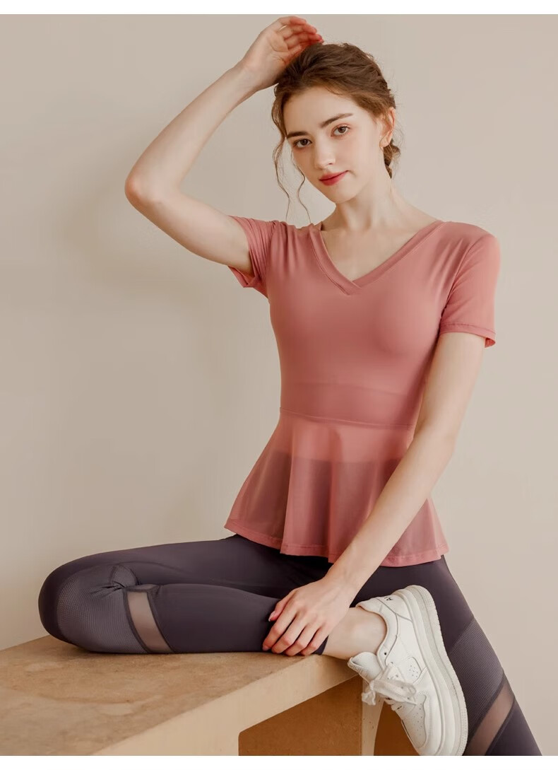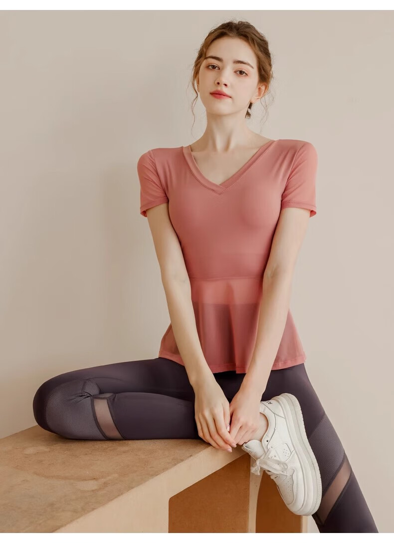 Sporn yoga clothing women's suit summer new short-sleeved thin fitness clothing loose large size professional Pilates sports suit pink top (with chest pad) + leg shaping trousers XXL (140-160Jin Jin equals 0.5 kg)