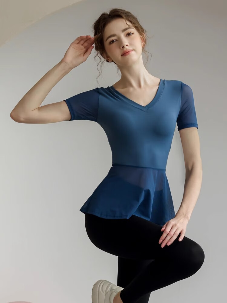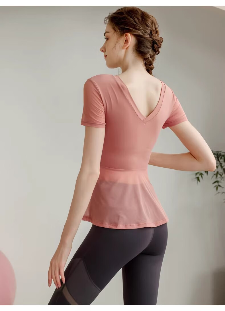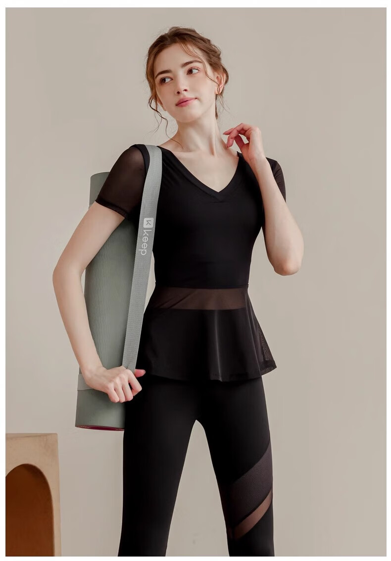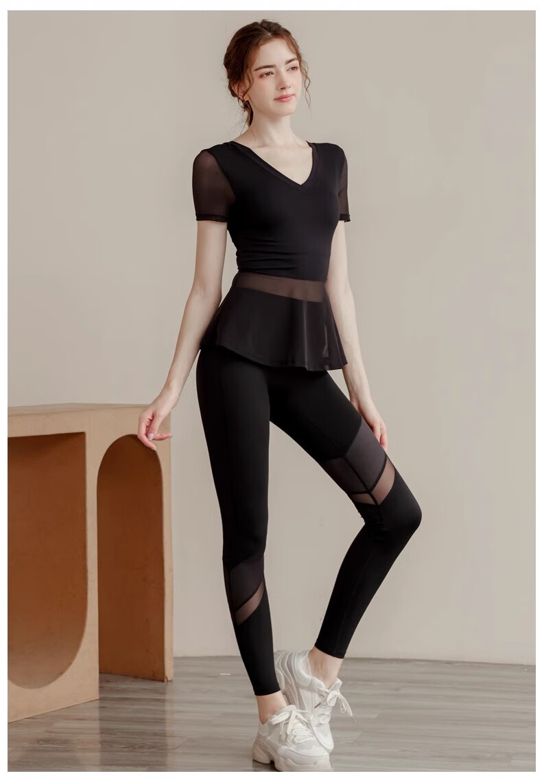 Sporn yoga clothing women's suit summer new short-sleeved thin fitness clothing loose large size professional Pilates sports suit pink top (with chest pad) + leg shaping trousers XXL (140-160Jin Jin equals 0.5 kg)