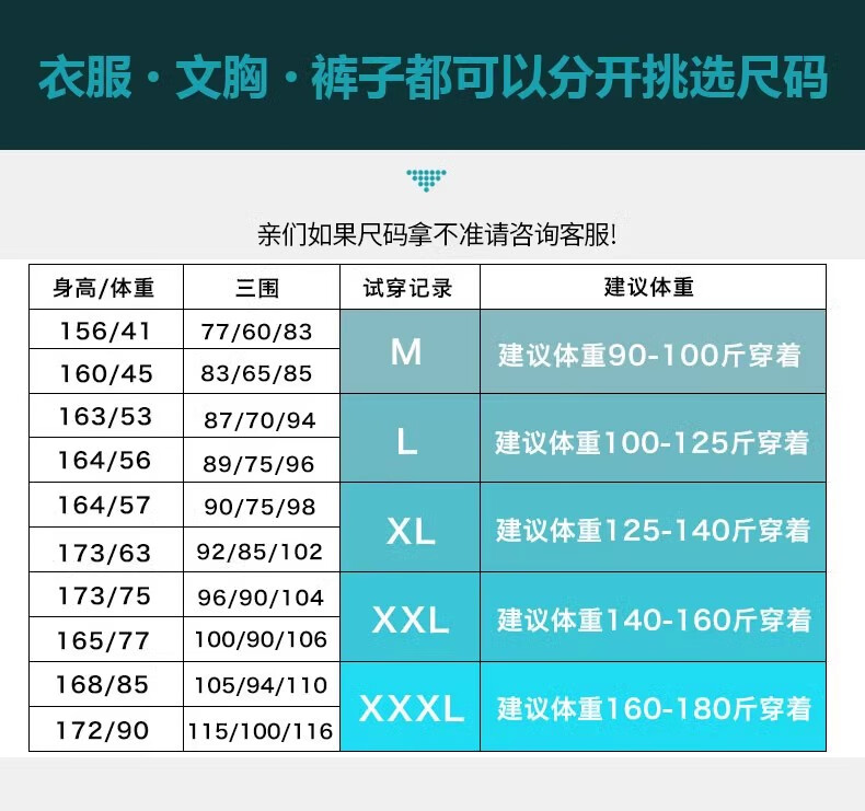 China (cm) 160-165/84-86 165-170 / 88-90 167-172 / 92-96 168-173 / 98-102 170-176 / 106-110