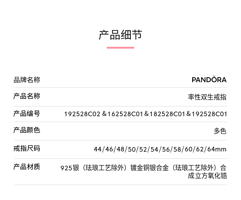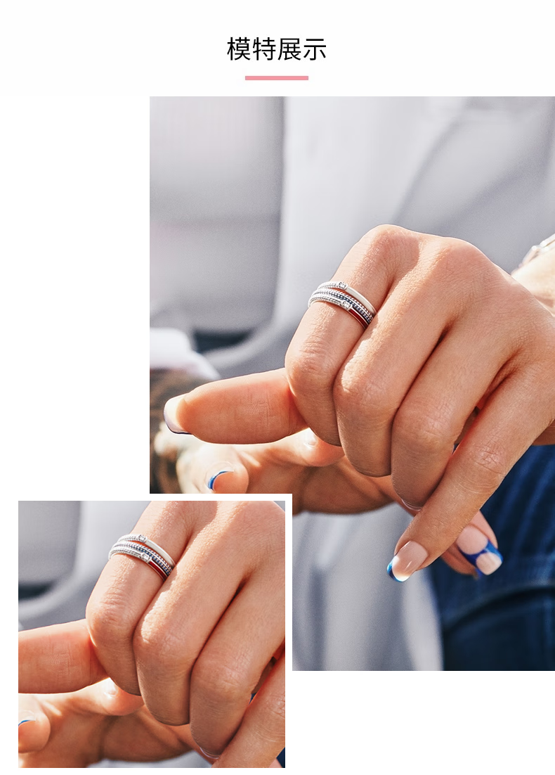 PANDORA (PANDORA) ME series of straightforward twin rings stacked simple couple rings birthday gift for girlfriend ME red double ring pavé ring 52mm