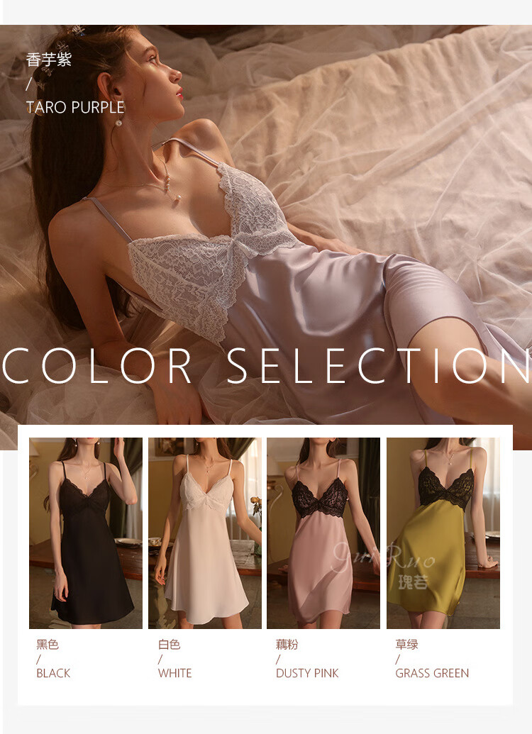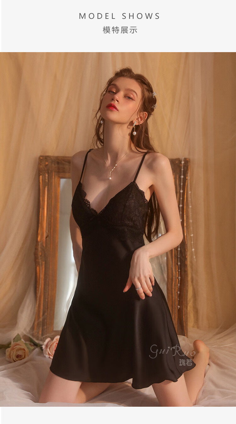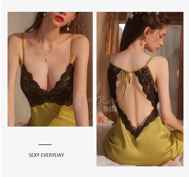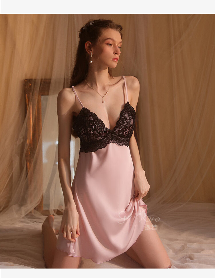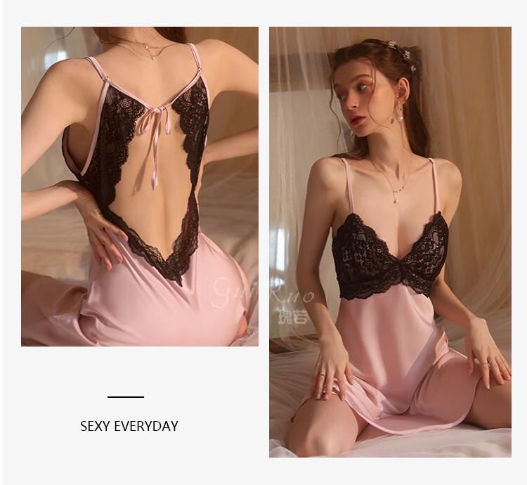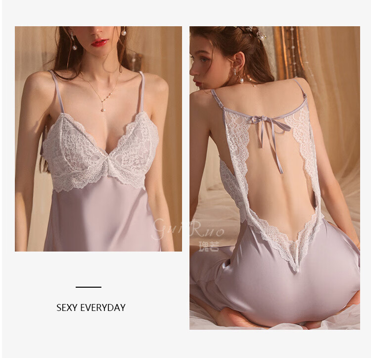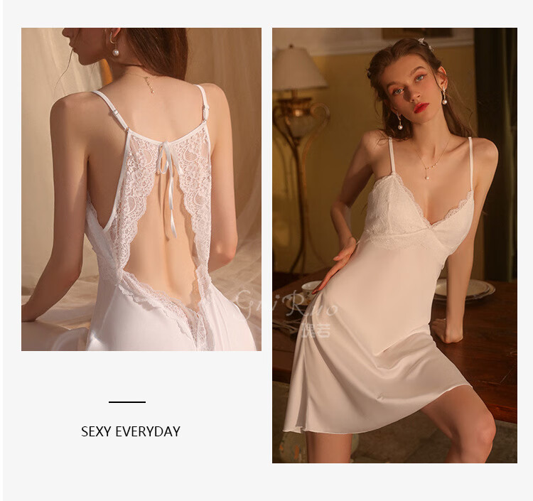 Adore Autumn and Summer Women's Sexy Pajamas Deep V Private Lace Hollow Backless Breast Pad Suspender Nightgown Home Clothes Set 2 White M