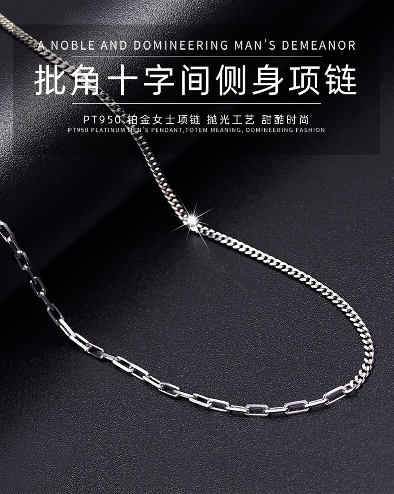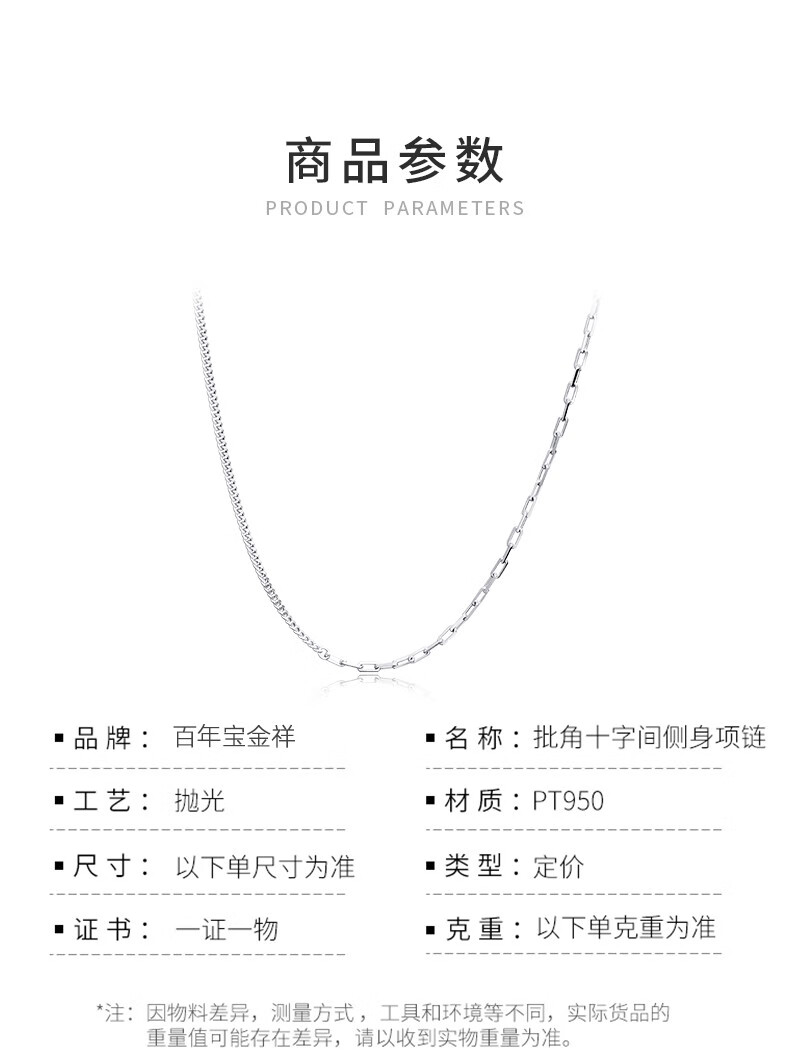 Centenary Baojinxiang Pt950 platinum necklace women's long cross platinum chain side chain men's fashionable clavicle chain stackable m buckle) 41 cm, about 2.4-2.6 grams