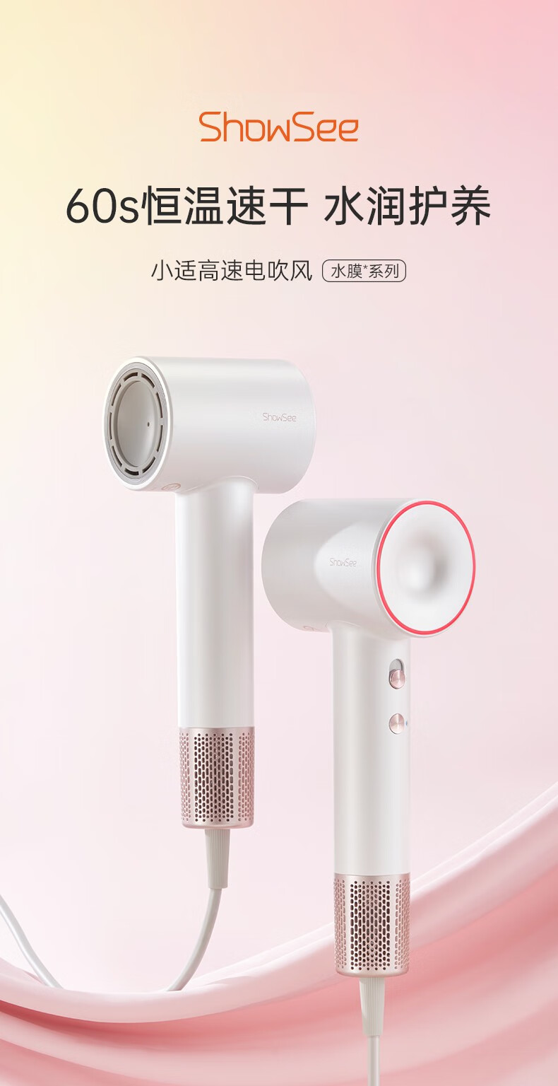 Showsee 110,000-rpm high-speed motor hair dryer household hair dryer high-power high-concentration negative ion hair care strong wind speed drying noise reduction leafless hair dryer gift for wife and girlfriend Yunwu White A18-W